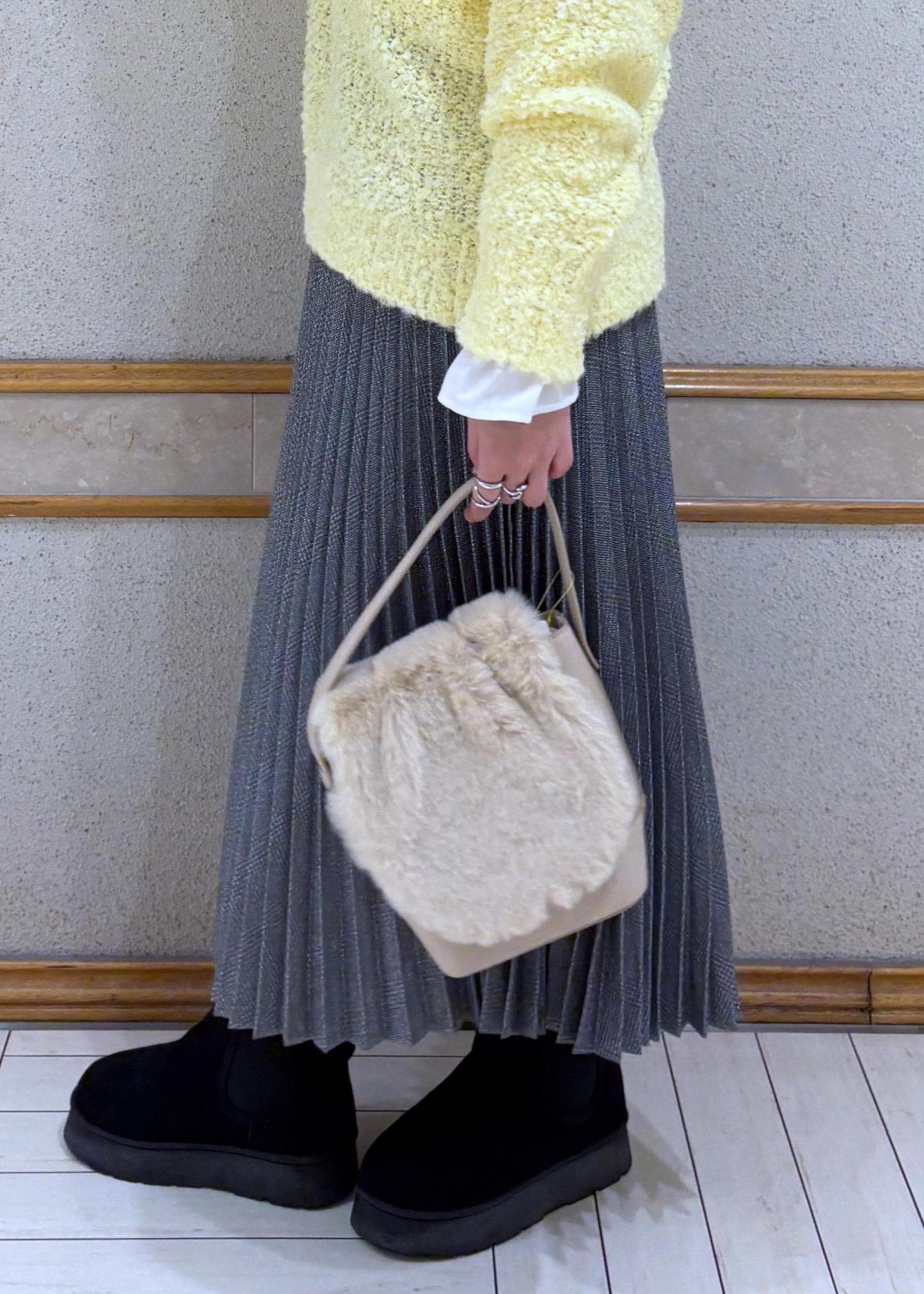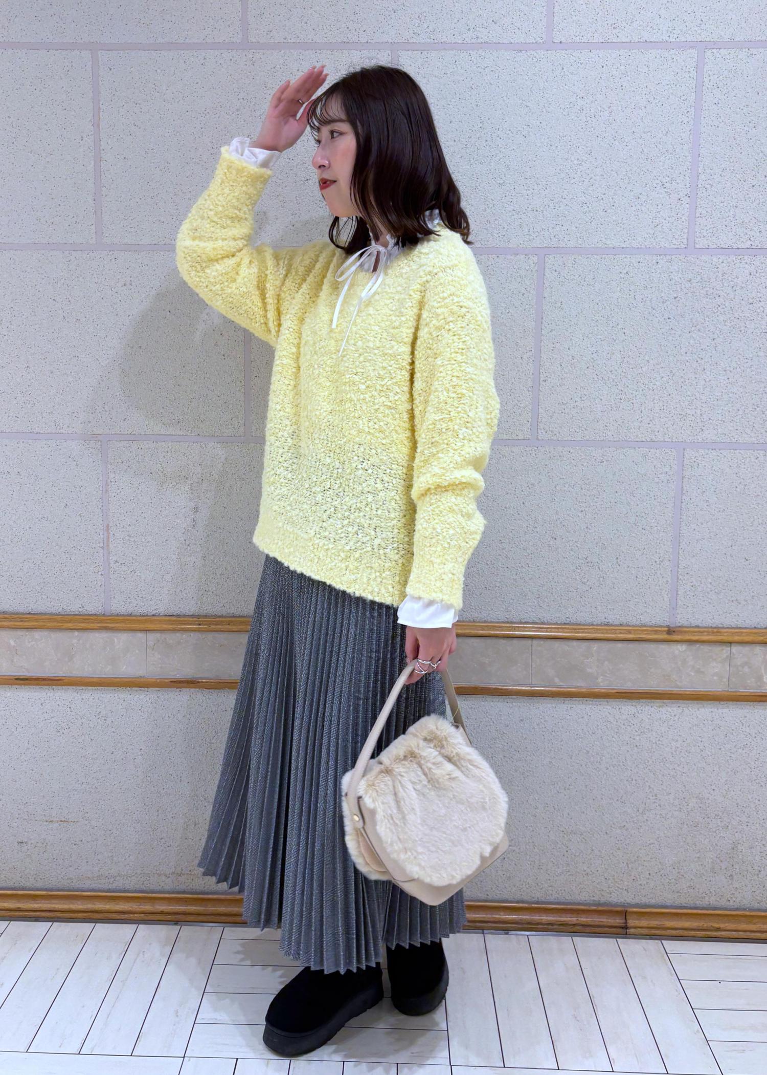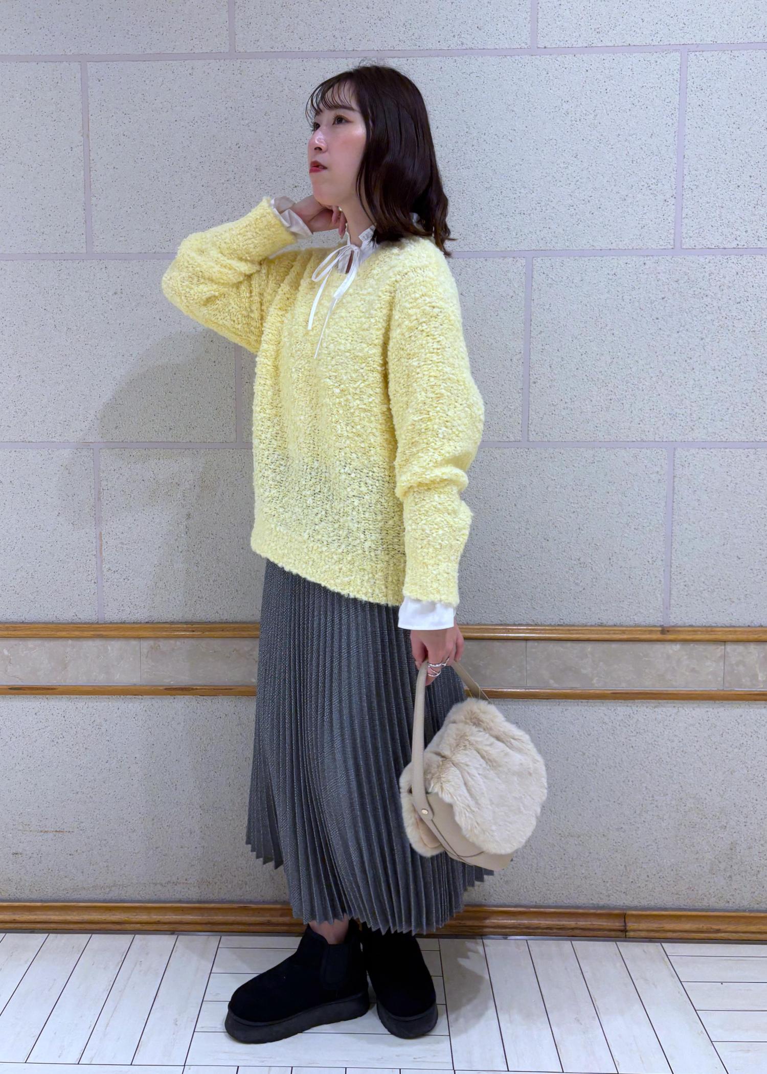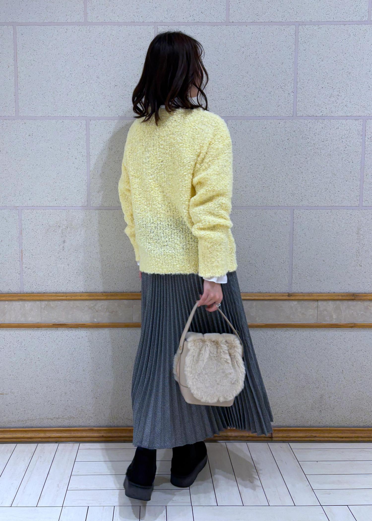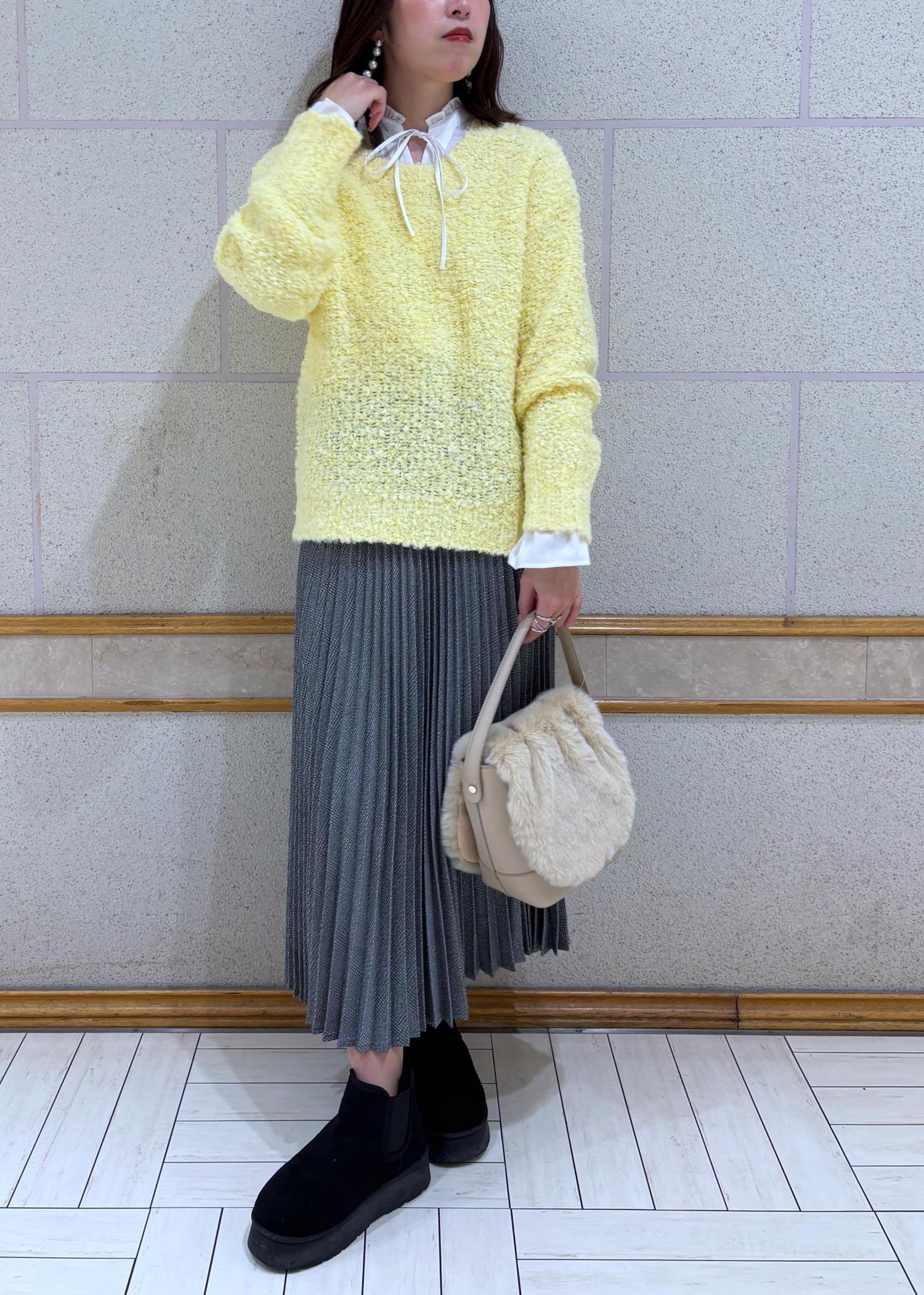 モコモコしたニットをプリーツスカートに合わせてみました。