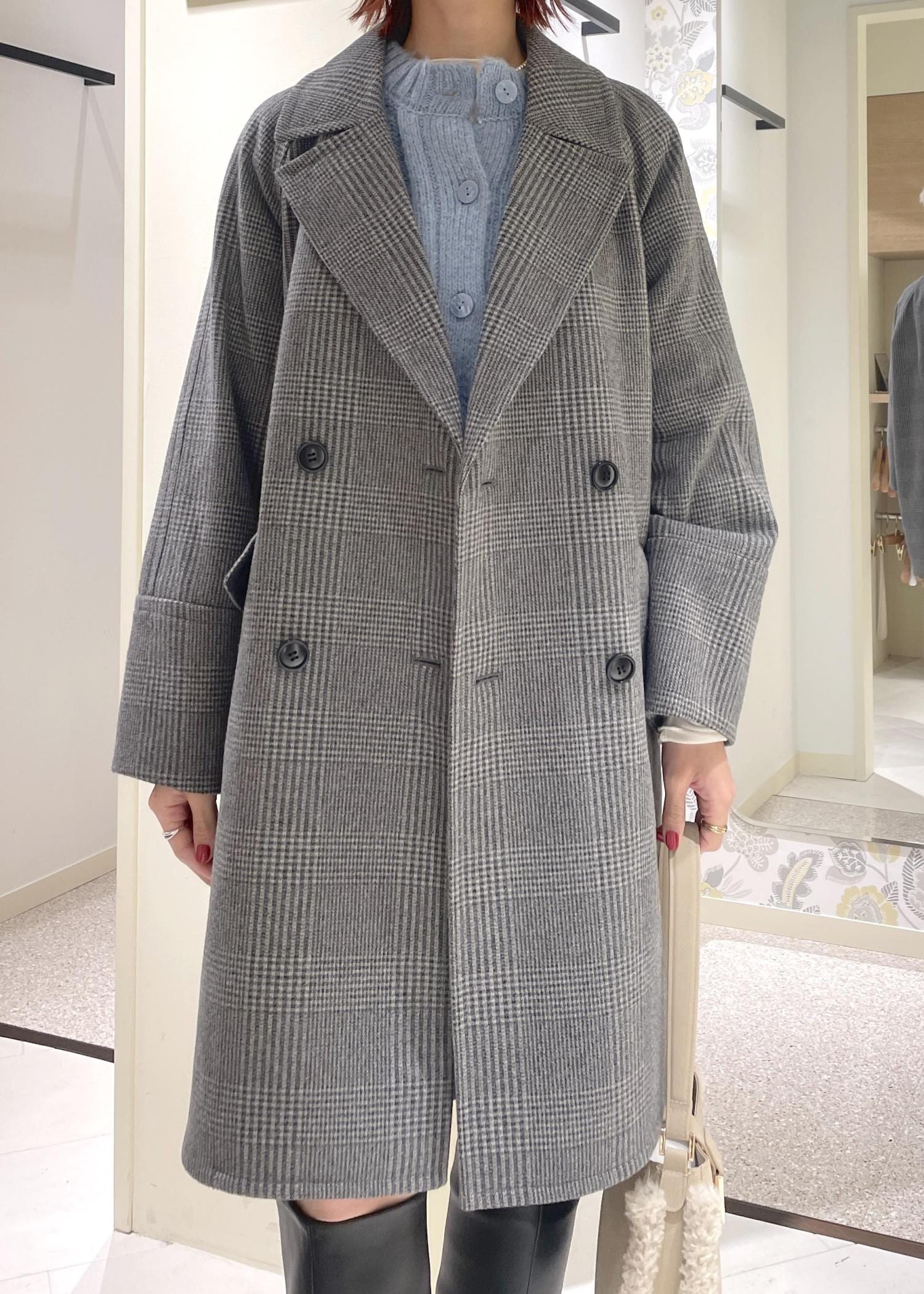 大人気のチェック柄Pコートは、ゆったりとしたオーバーサイズながら、程良くすっきり感のある着丈と見た目以上に軽量で着心地も抜群です!
