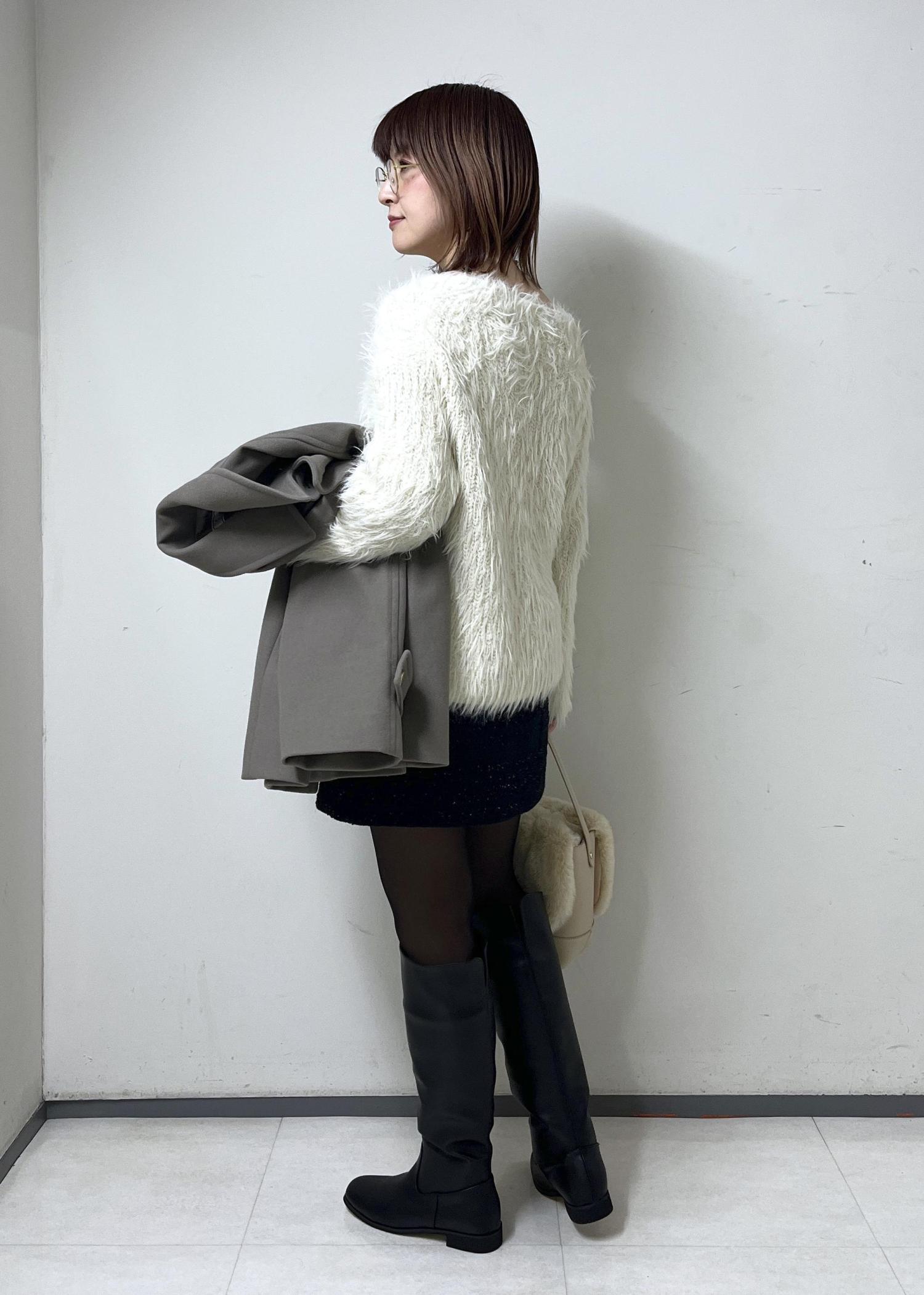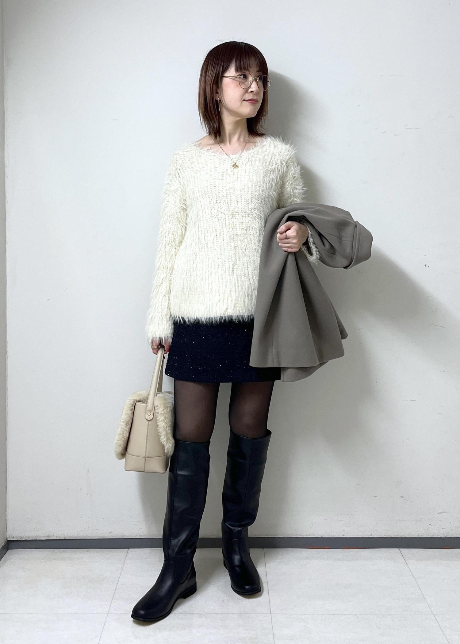 ミニスカートも、タイツとロングブーツ合わせで大人の女性でも挑戦しやすいですよ☺︎