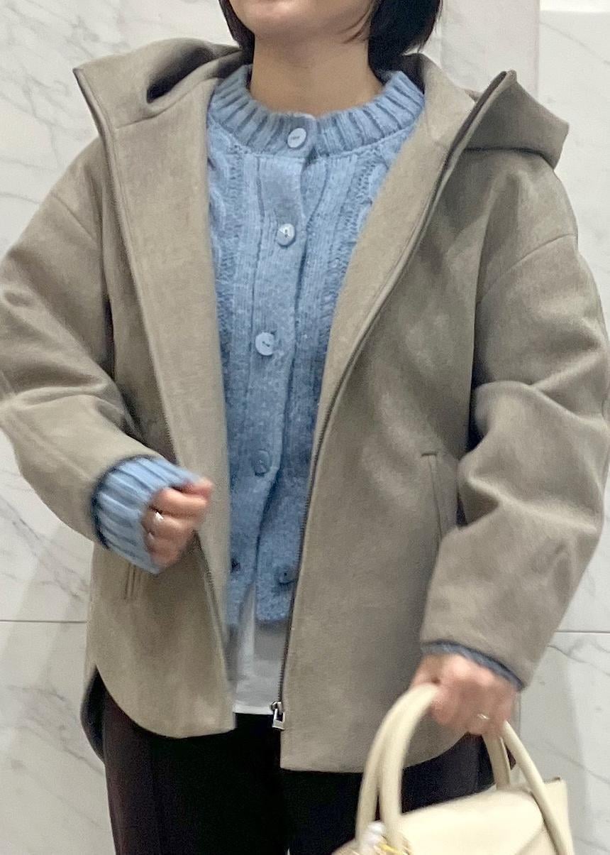 ROPÉ PICNICジャージーメルトンシリーズ ジップアップフーデッドコート/無地・チェック/リンクコーデダークブラウン / F¥9,900レビューゆったり羽織れます。