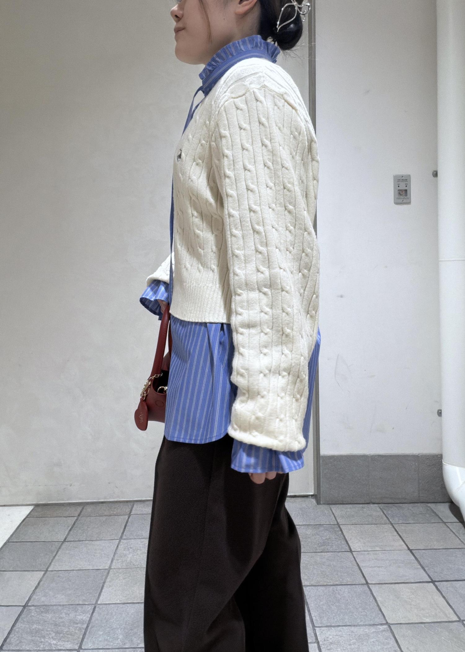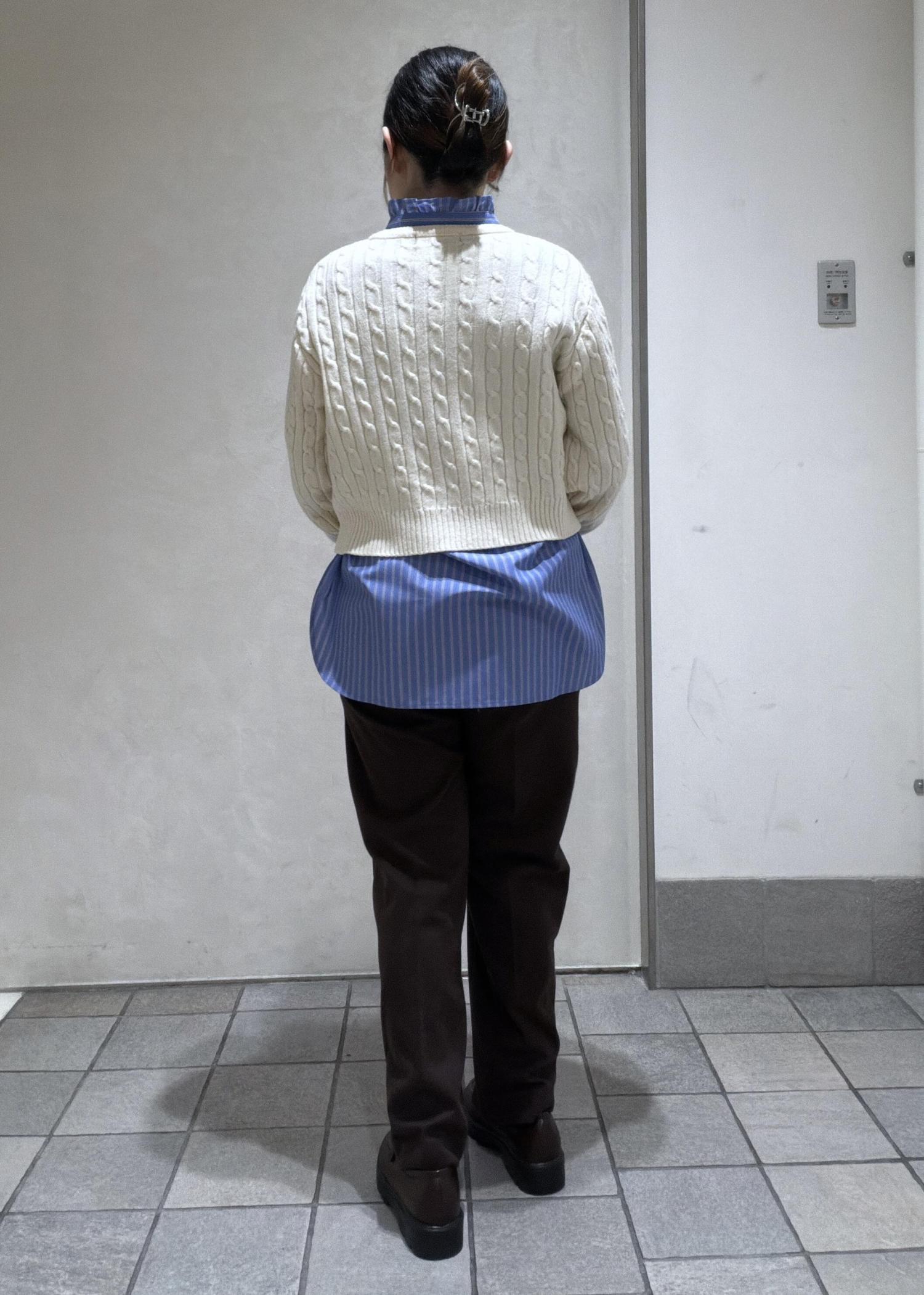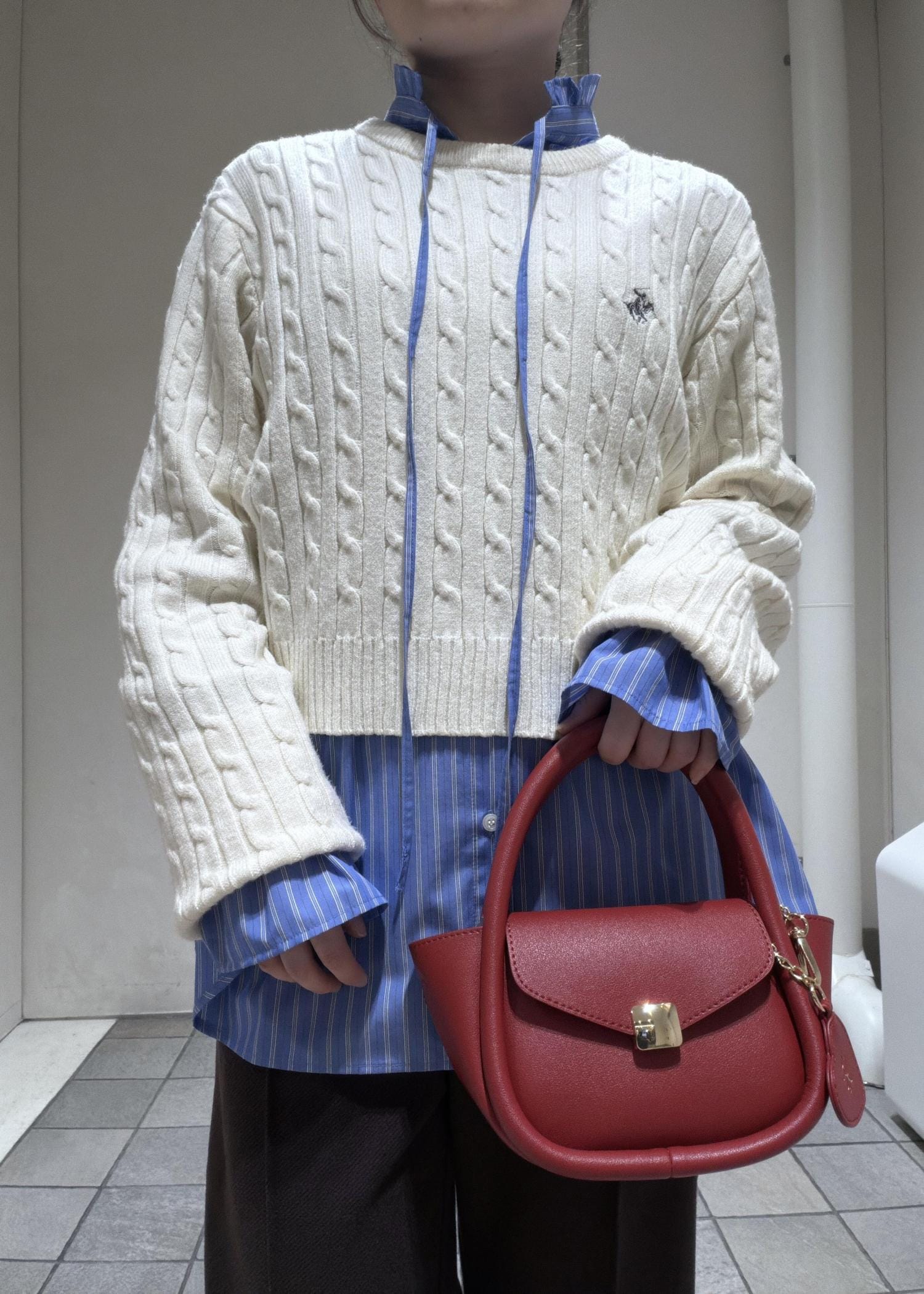 滑らかな着心地で、ケーブル編みのデザインがかわいさを引き立ててくれます!着丈が短く、重ね着はもちろん、スカートやハイウエストのパンツと相性抜群です◎ -