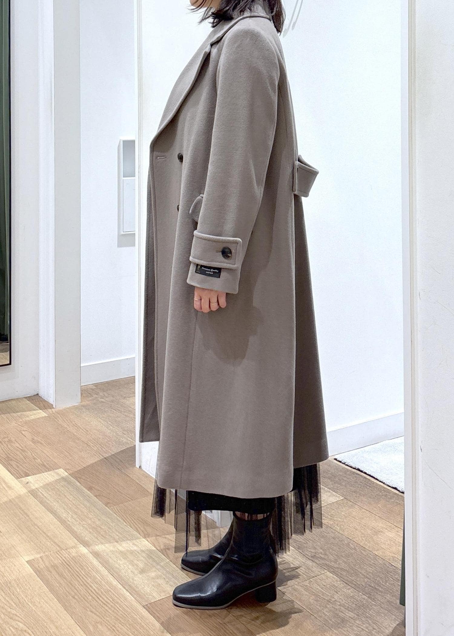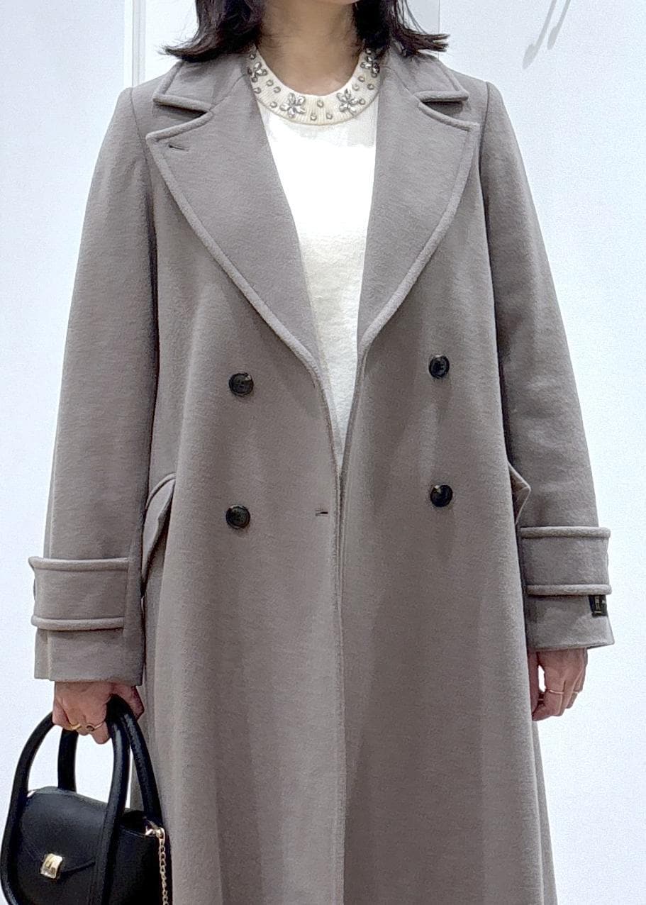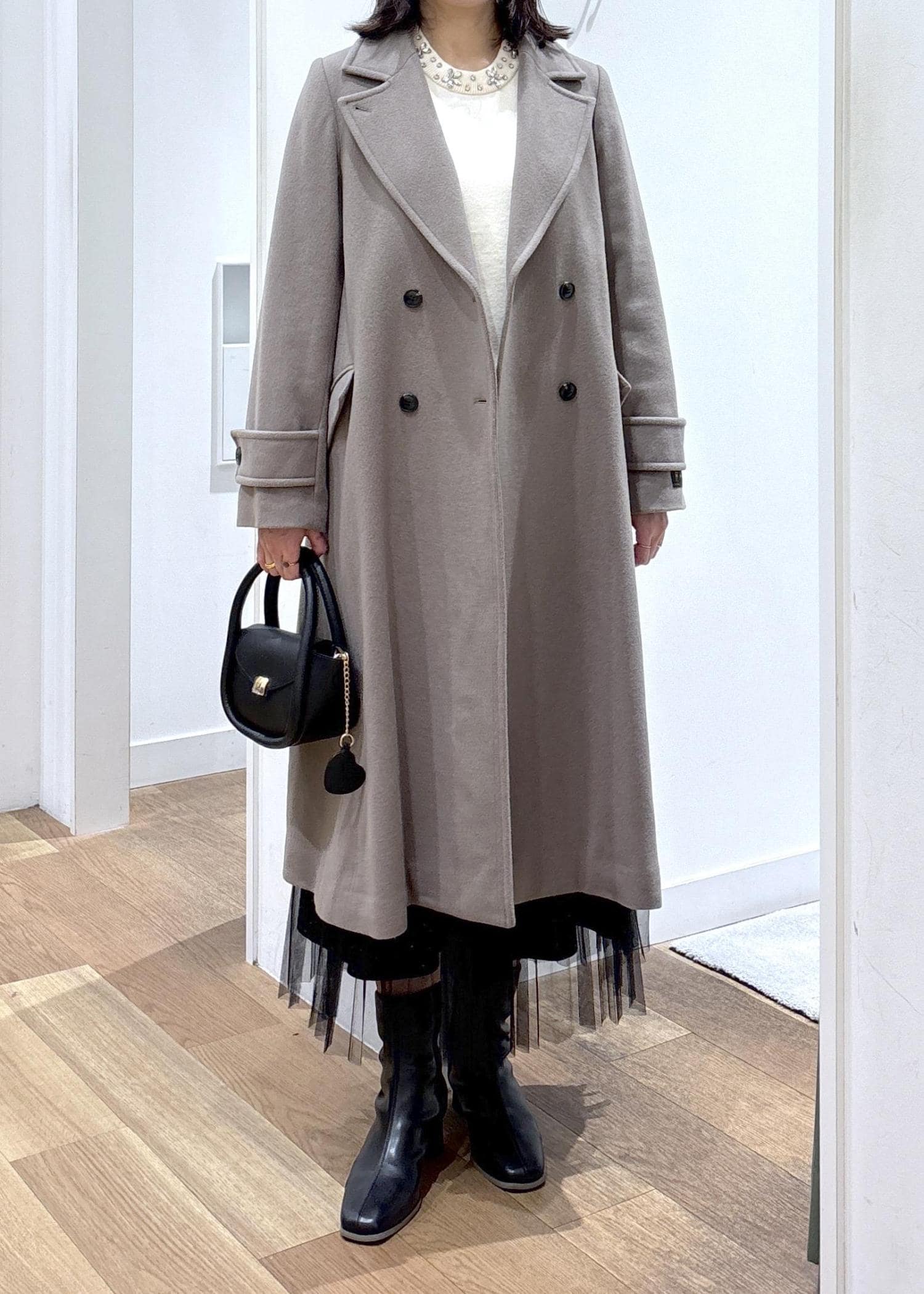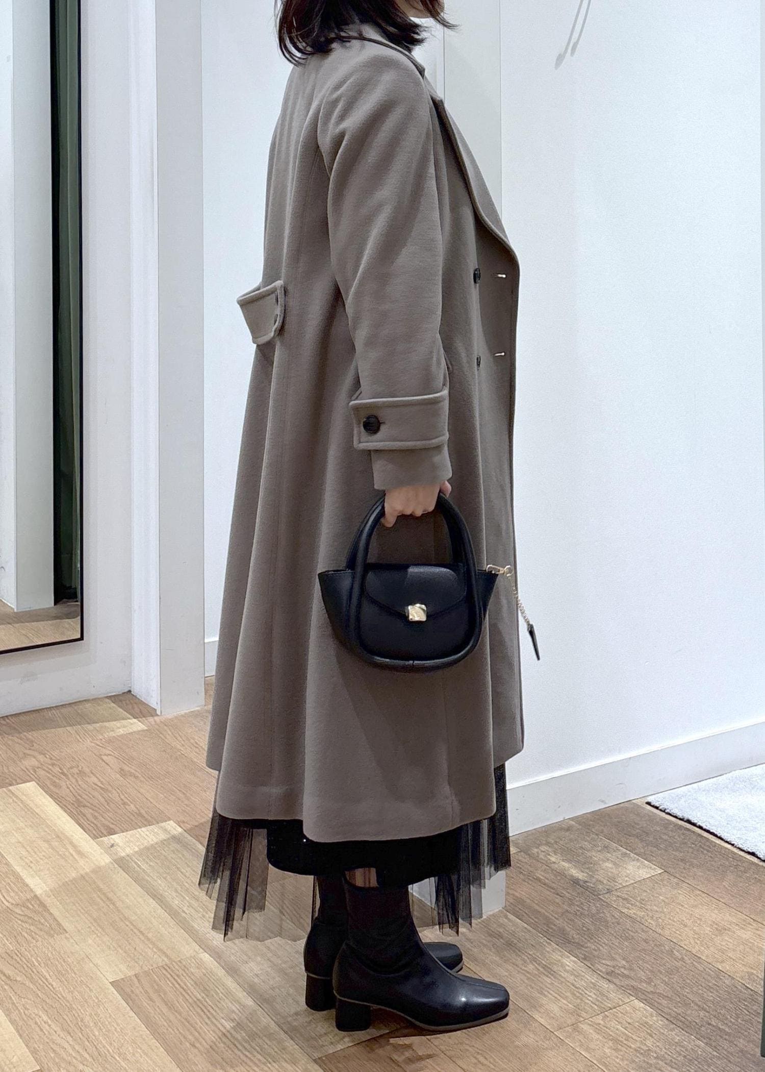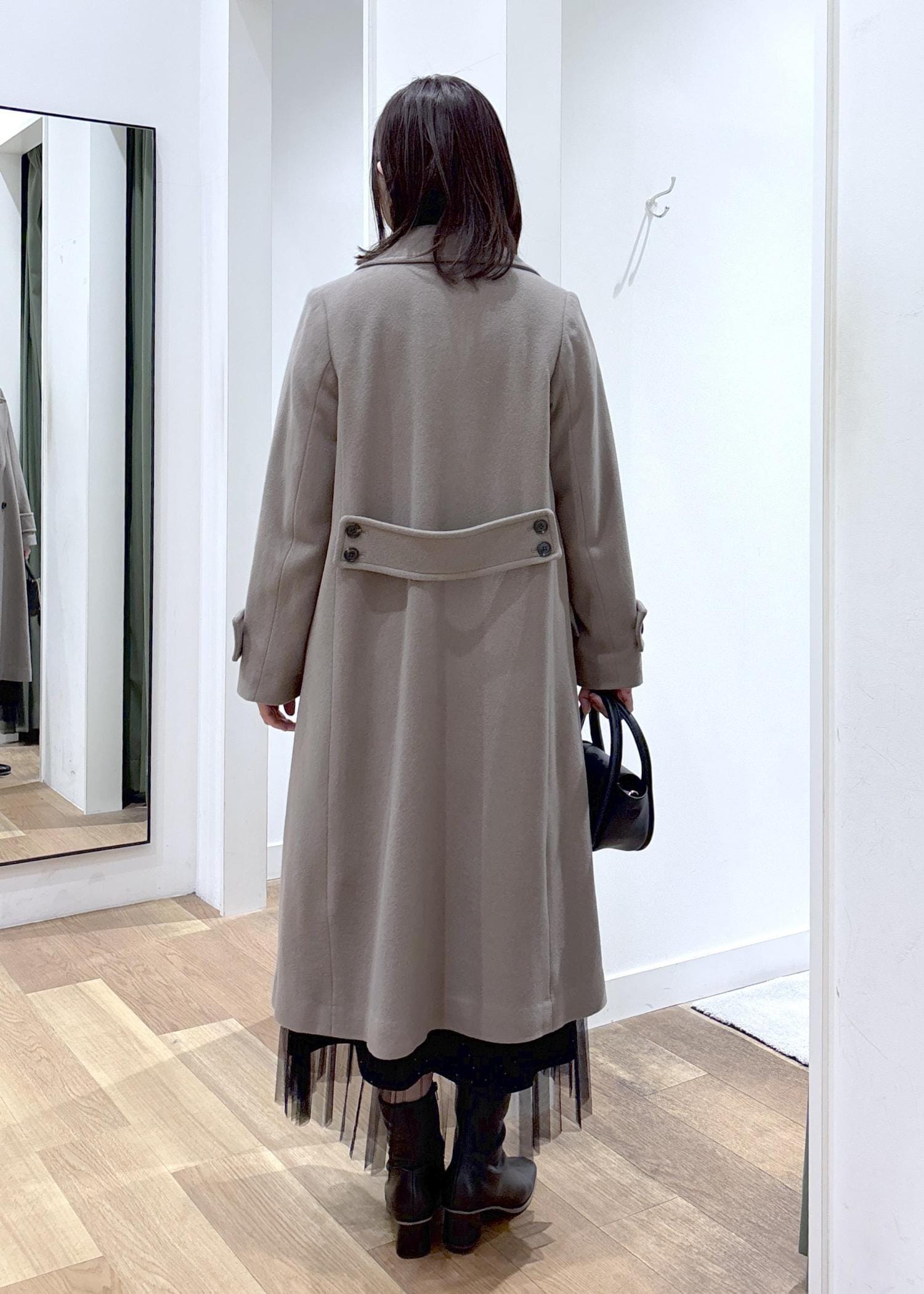動くと揺れるフレアシルエットがとてもきれいで、女性らしい印象のコートです。 -