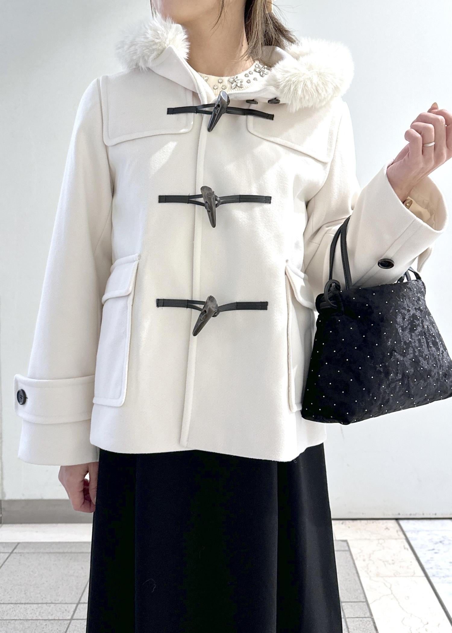 ROPÉ PICNICジャージーメルトンシリーズ ファー付きショートダッフルコート/リンクコーデキナリ / M¥11,880レビューショート丈で腰まわりが隠れる位の長さです。