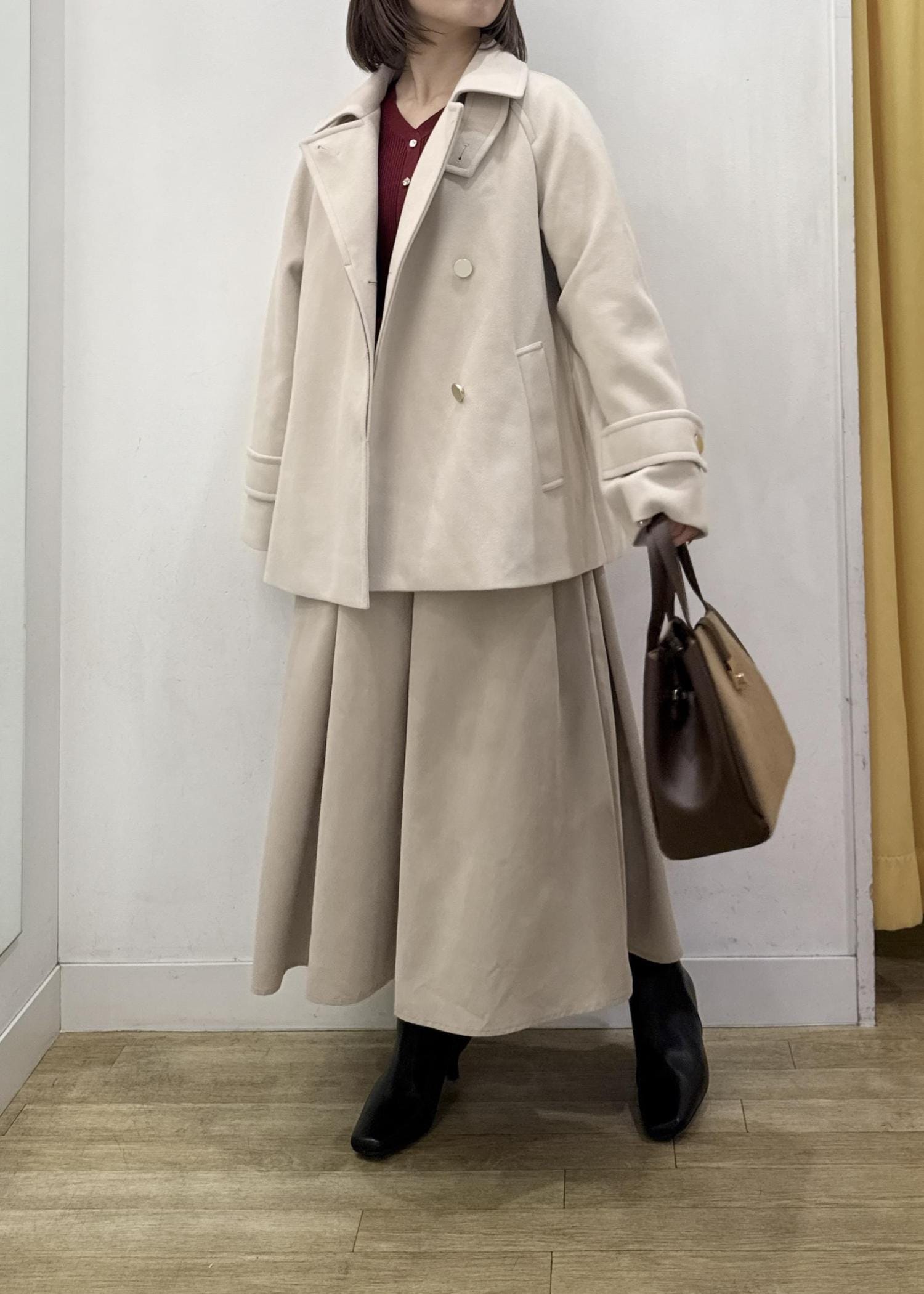 ROPÉ PICNICジャージーメルトンシリーズ 金ボタンミドル丈コート/リンクコーデベージュ / F¥7,692レビューゆったりとしたオーバーなサイズ感で着られました。