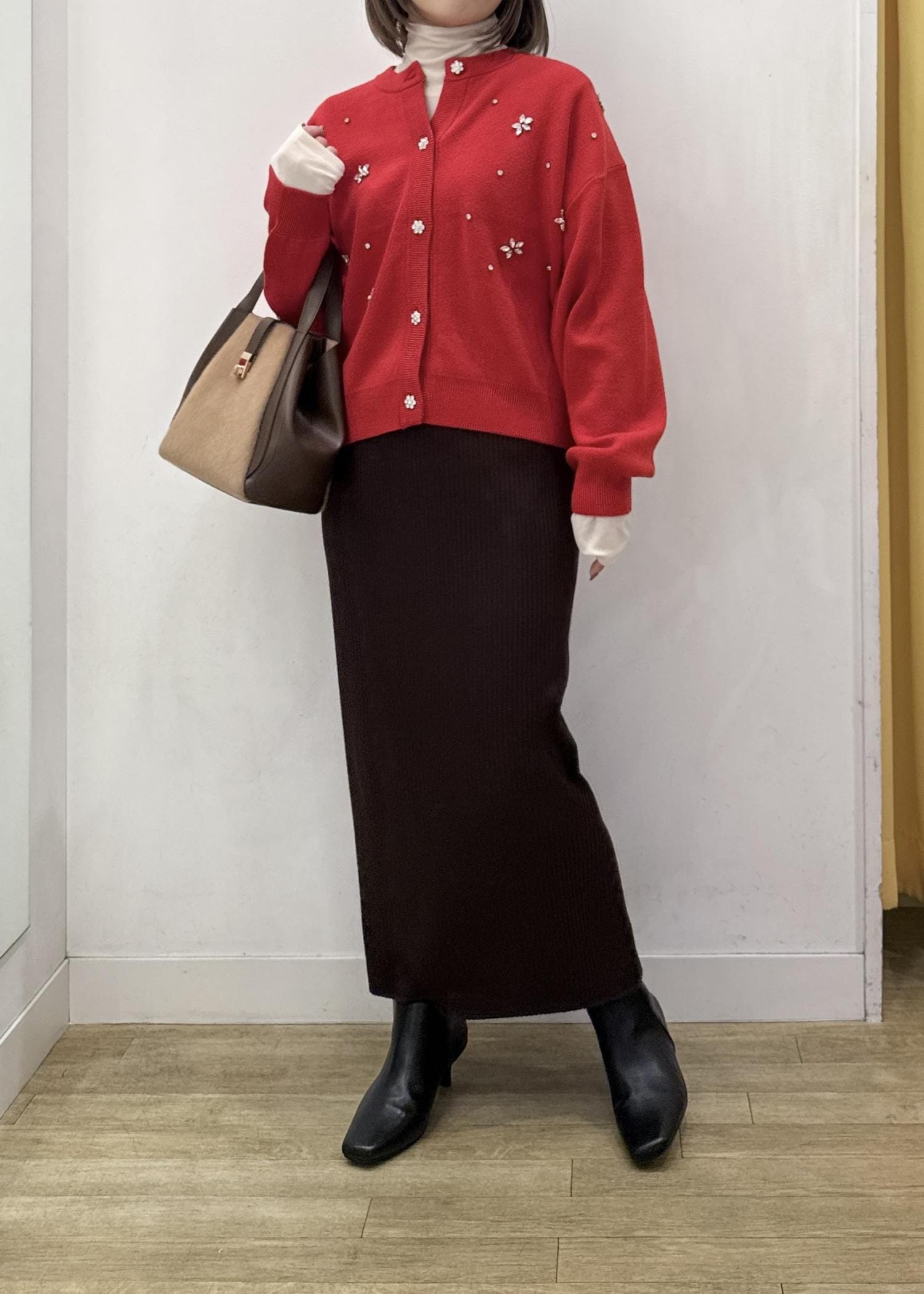 ROPÉ PICNICビジューニットカーディガンレッド / F¥5,995レビューインナー合わせもしやすい程よいゆとりがあり、身体のラインを気にせずに着られました。