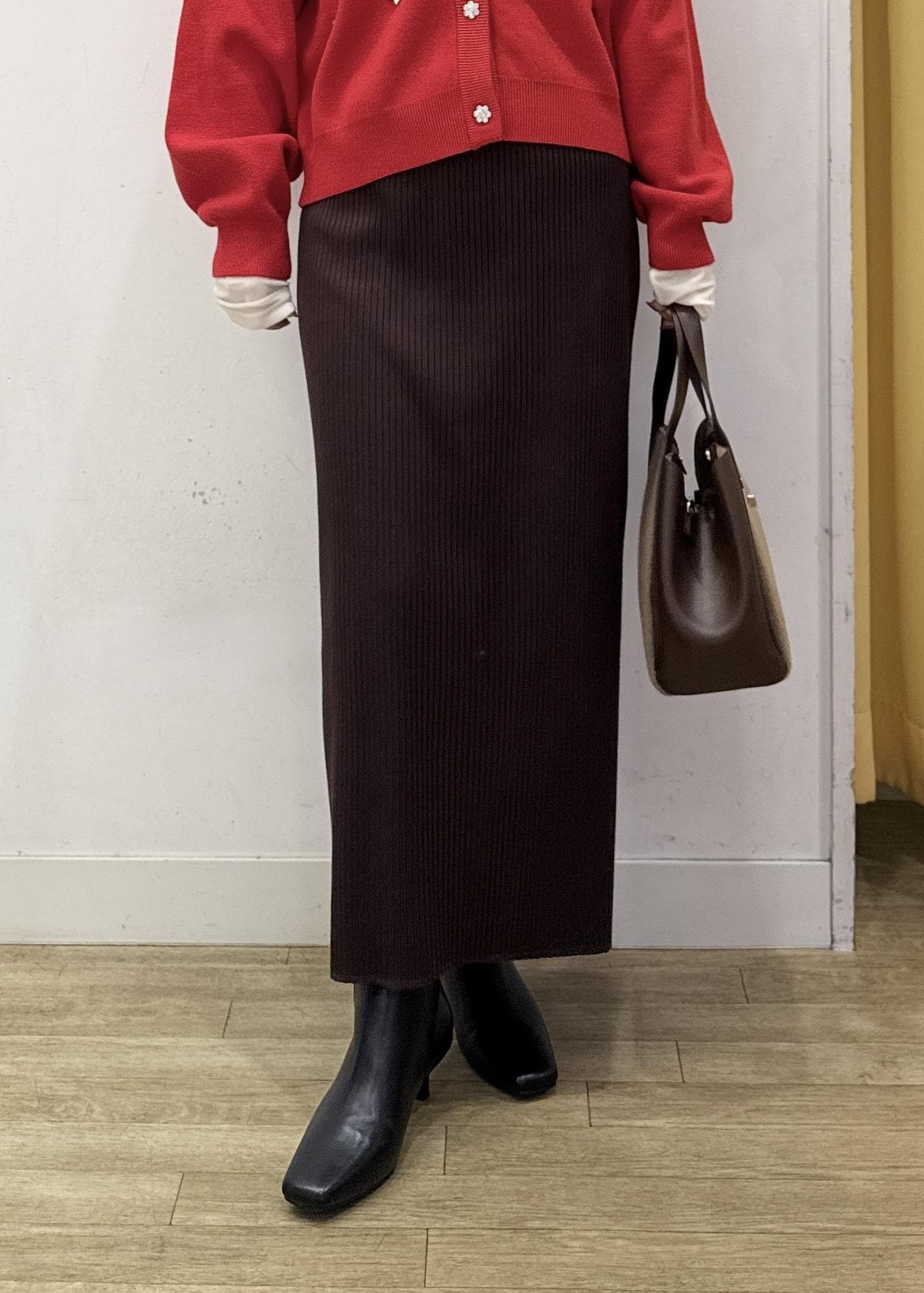 ROPÉ PICNICトタンテレコ Iラインリブニットスカートダークブラウン / 38¥4,499レビュー伸縮性のある素材感なのでアイラインシルエットでも穿きやすいスカート。
