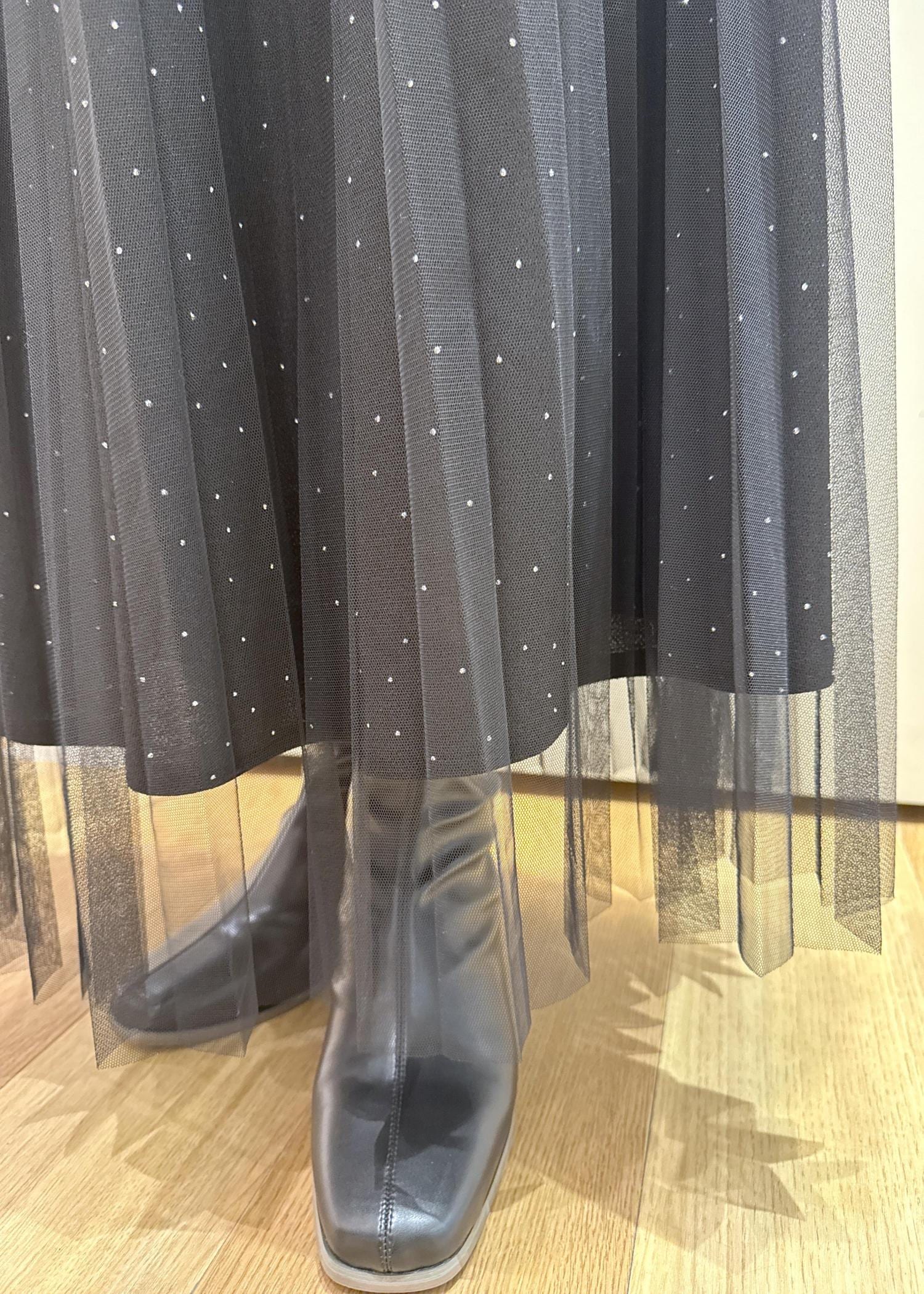 ROPÉ PICNICキラキラチュールプリーツスカート/着丈が選べるブラック / MT¥6,490レビューキラキラなビジューがアクセントのチュールスカート。