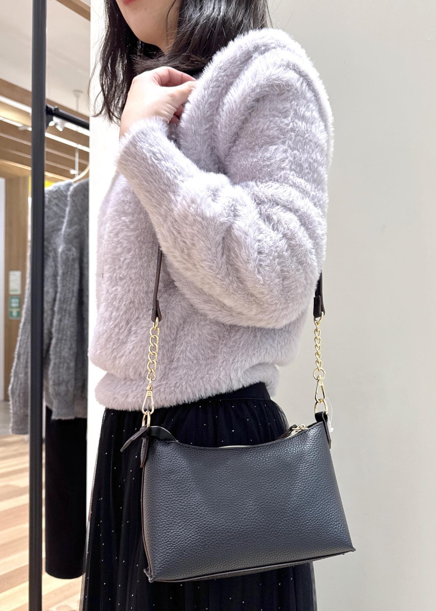 ショルダーバッグはA4サイズも入り、肩かけから斜め掛けまで使えます◎