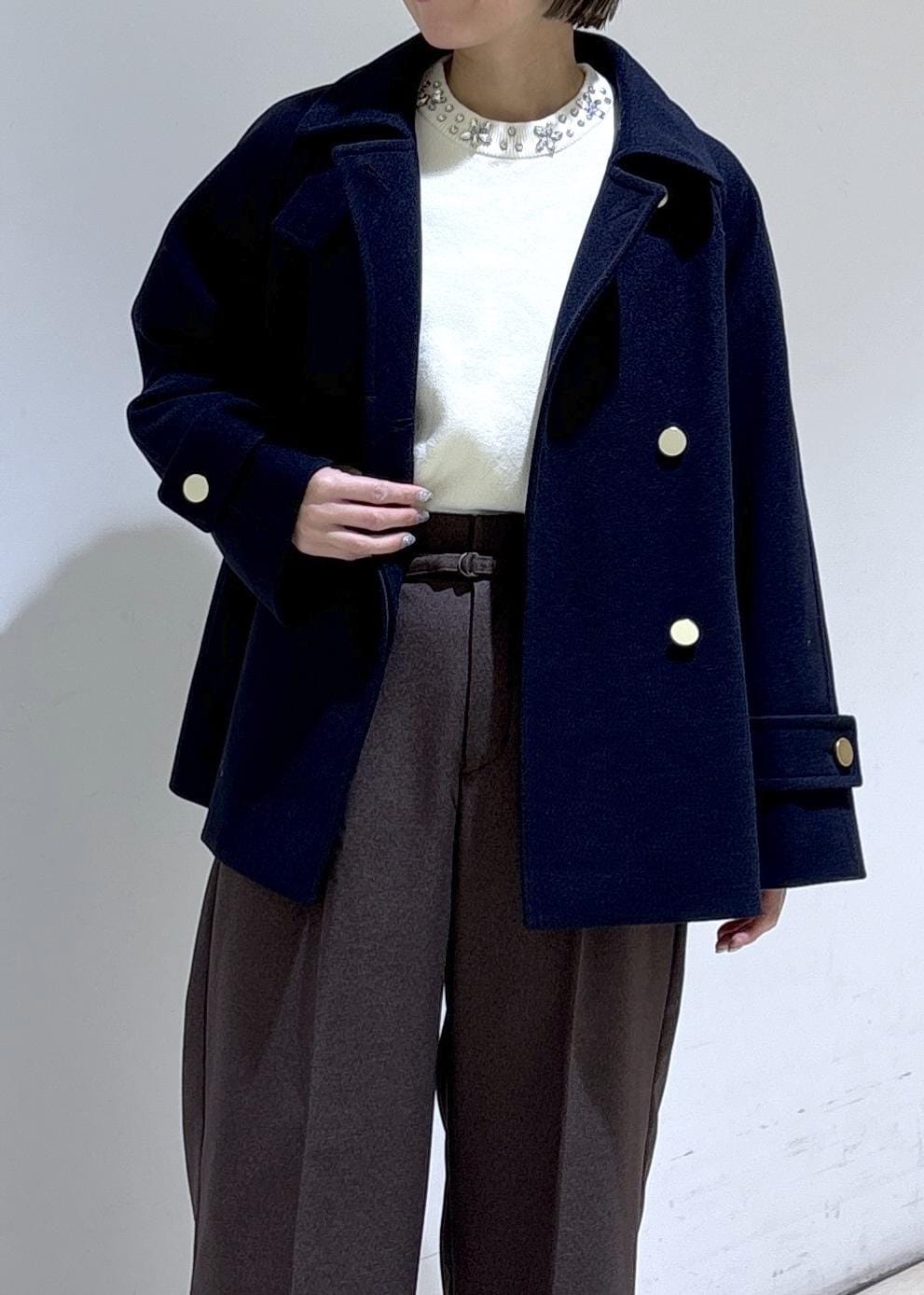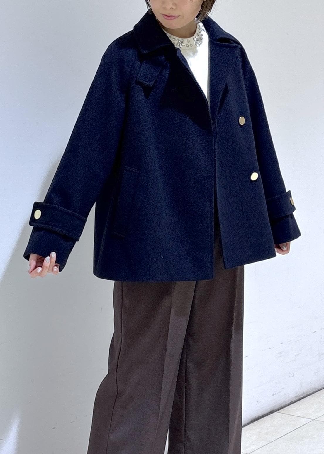 ROPÉ PICNICジャージーメルトンシリーズ 金ボタンミドル丈コート/リンクコーデネイビー / F¥10,989レビュー身幅にゆとりがあり身体のラインを拾わず着用できます。