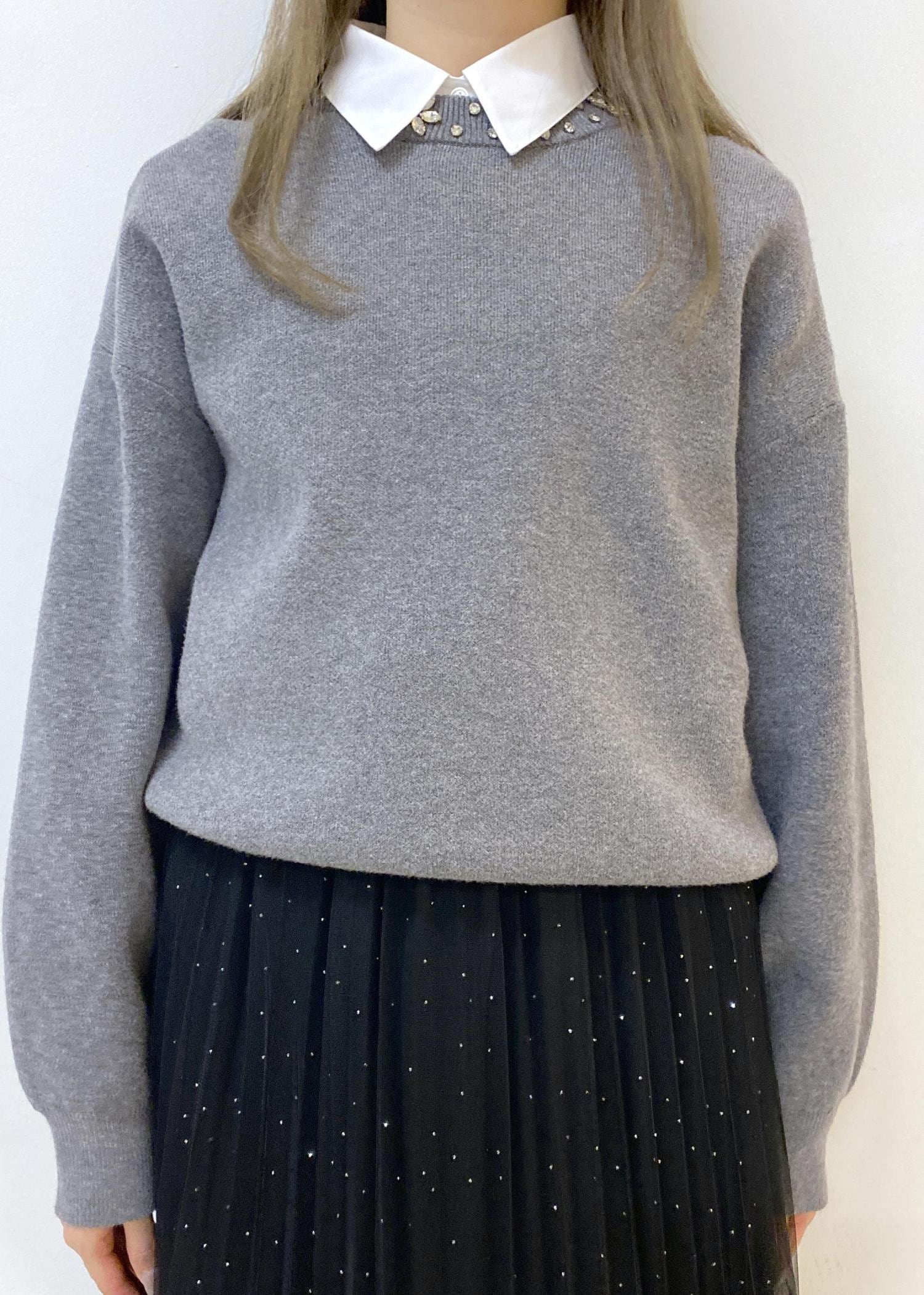 ROPÉ PICNICビジューニットプルオーバーグレー / F¥5,489レビュー首周りのビジューが華やかで品のある印象に。
