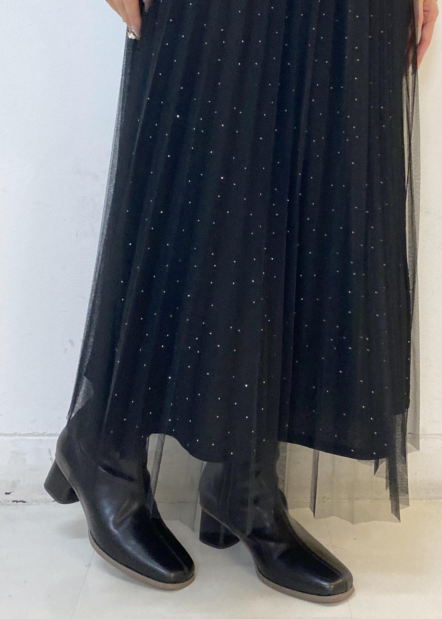 ROPÉ PICNICキラキラチュールプリーツスカート/着丈が選べるブラック / MT¥6,490レビュー店頭でも大人気のアイテム!