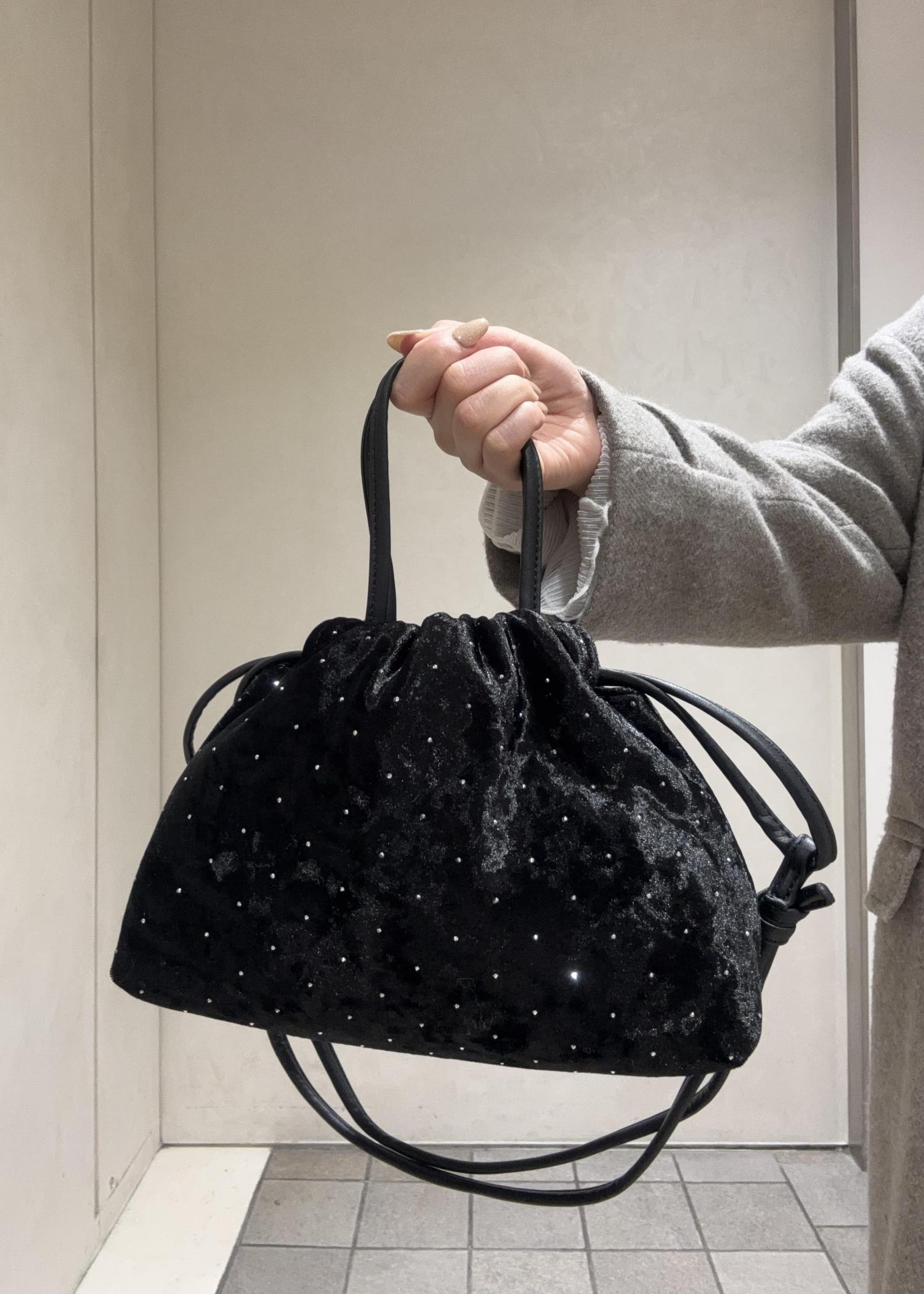 ROPÉ PICNIC PASSAGE2WAYハンドル シャイニーベロアパースバッグブラック / F¥4,389レビュー光沢のあるベロア素材とスタッズで華やかな印象になります!