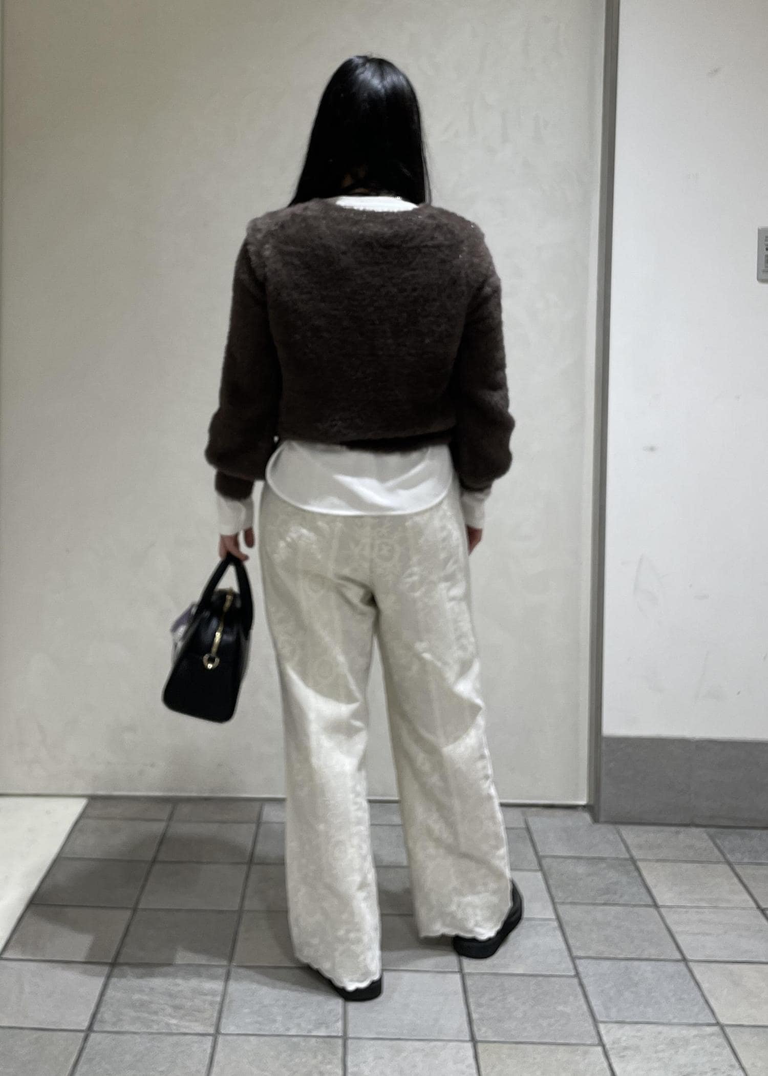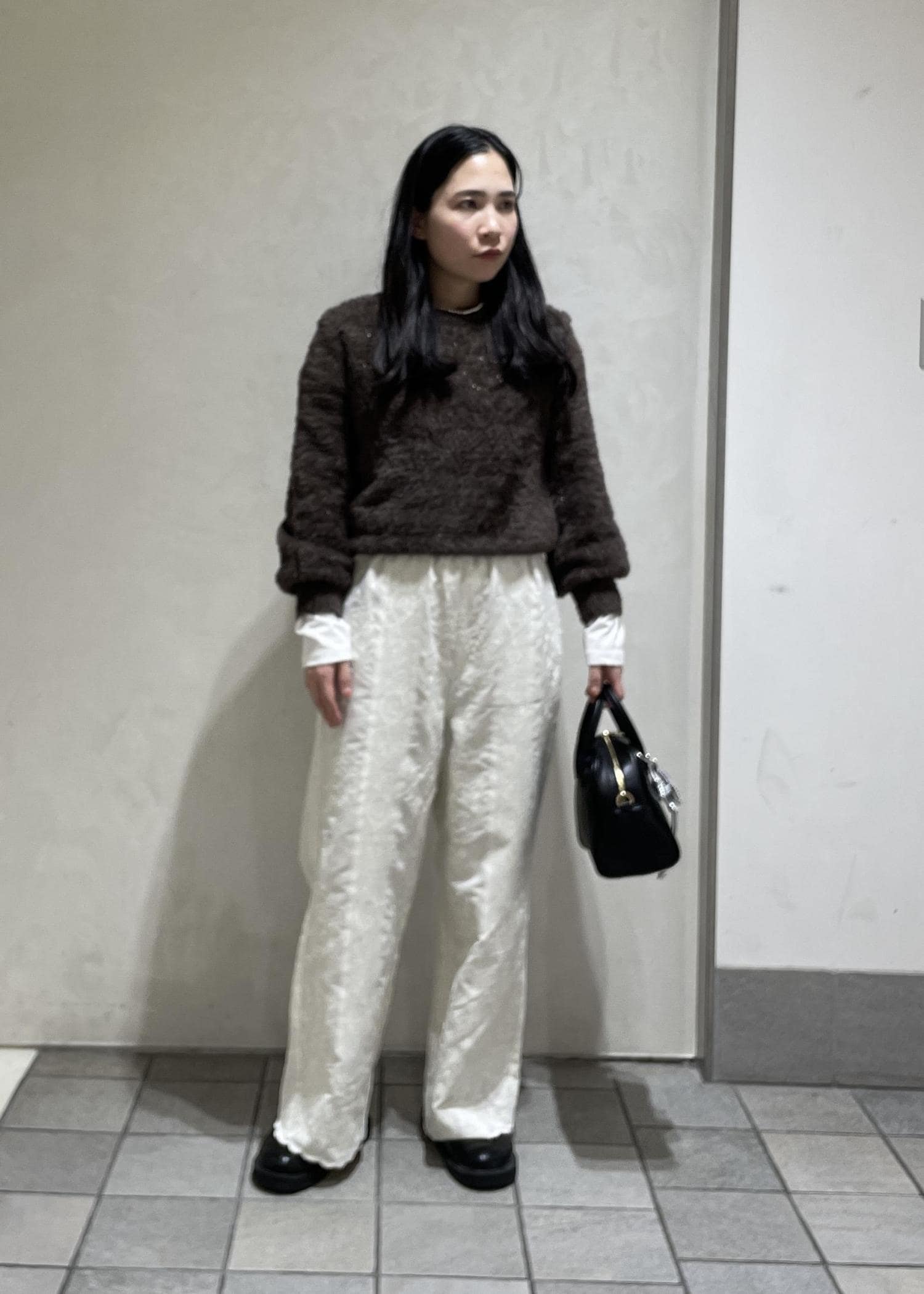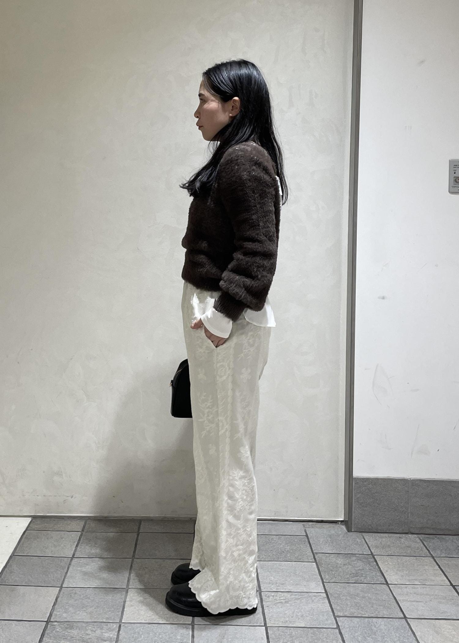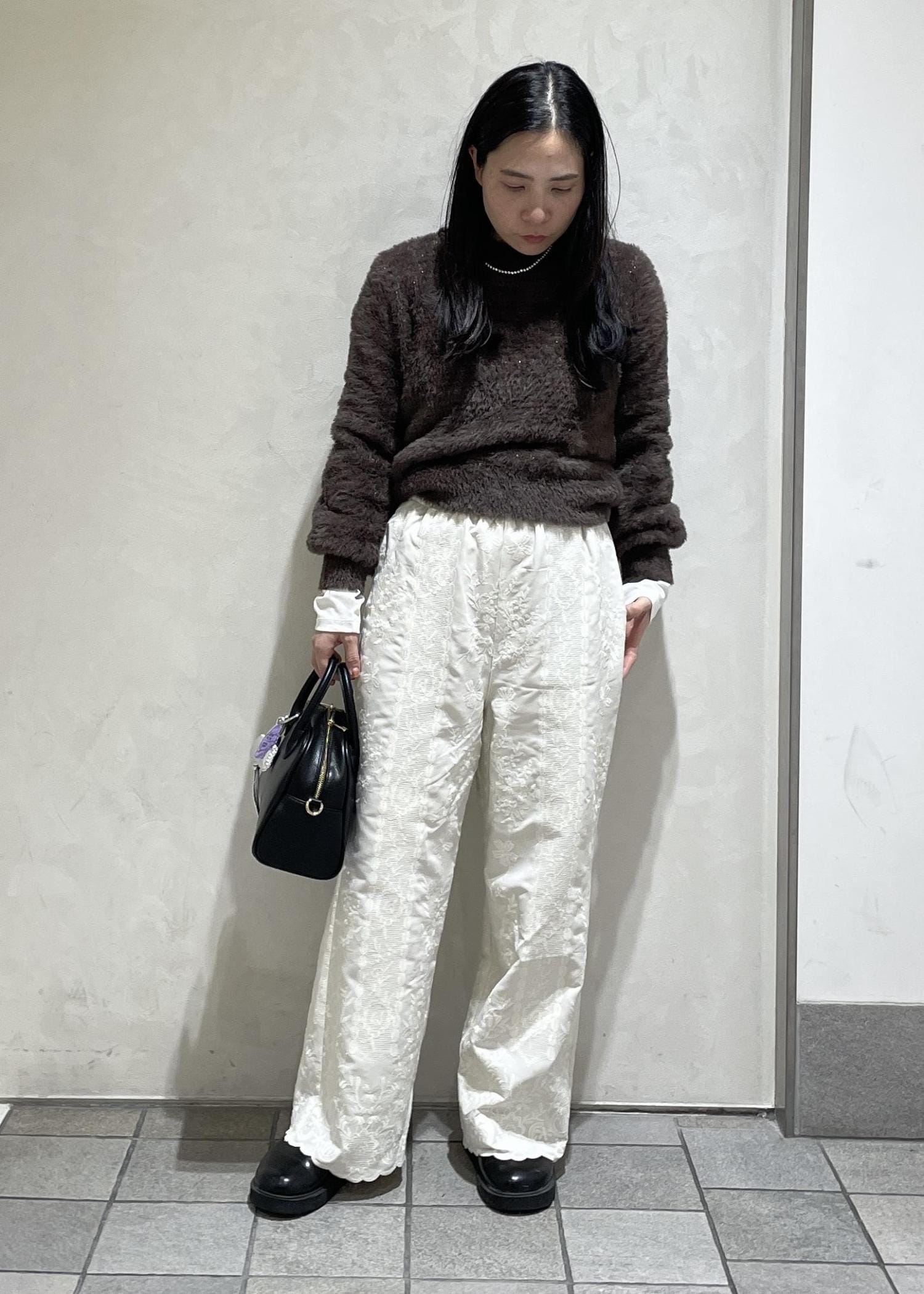 ショートニットと刺繍パンツがかわいいスタイリングにしました!