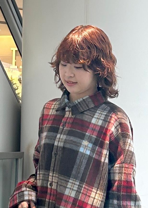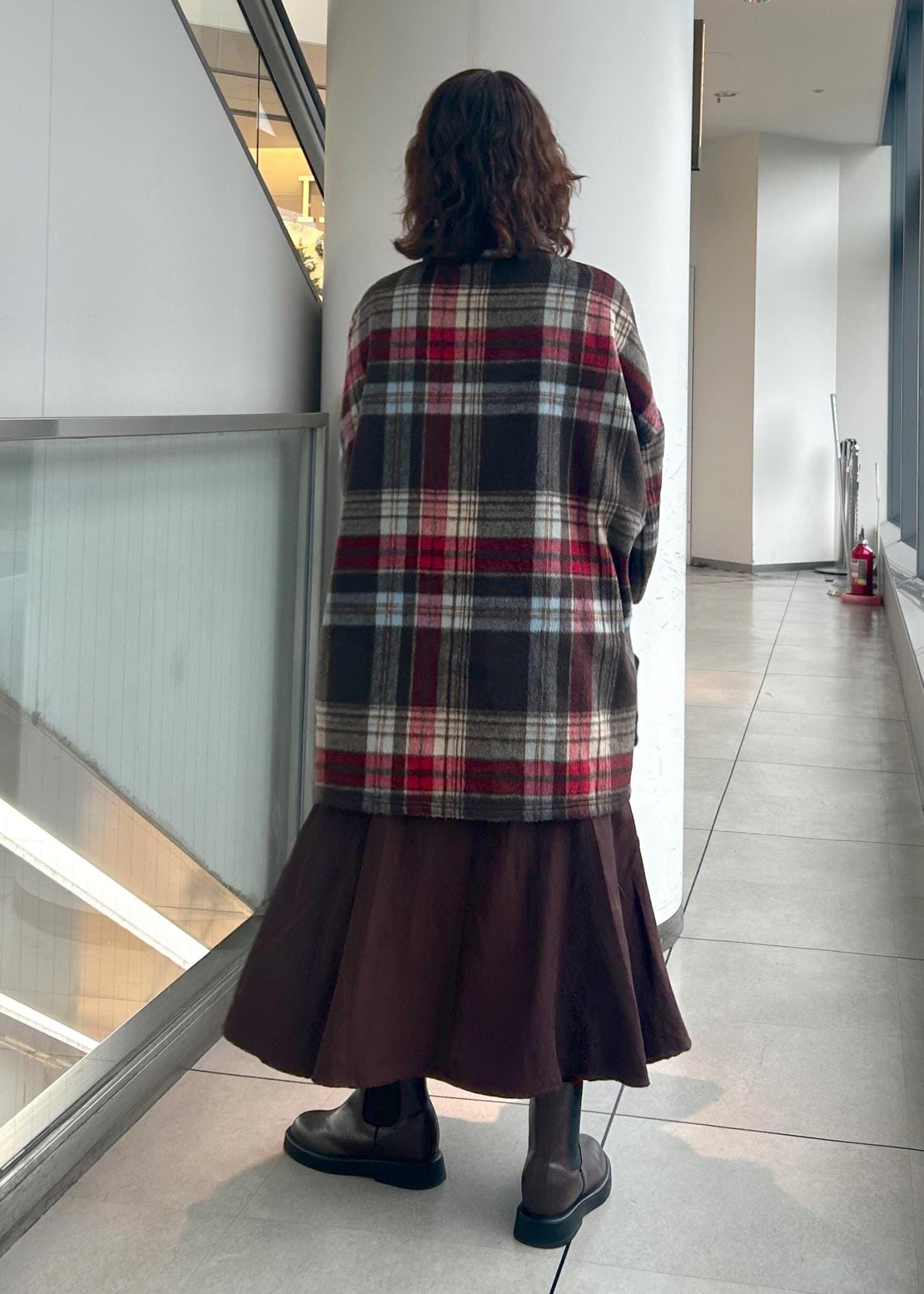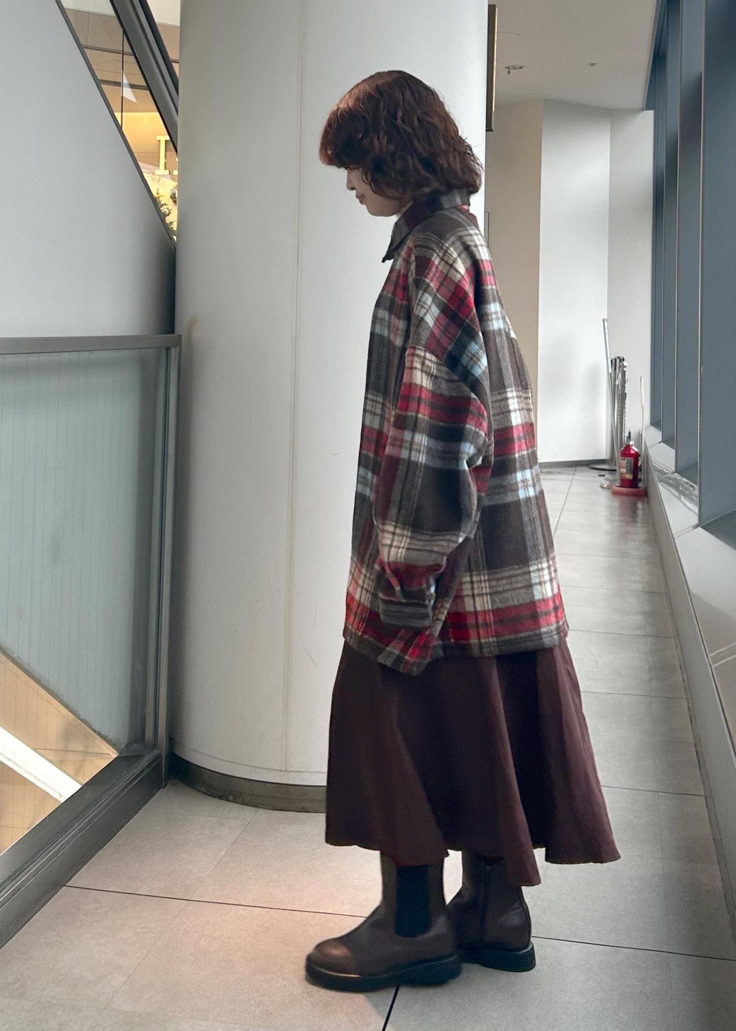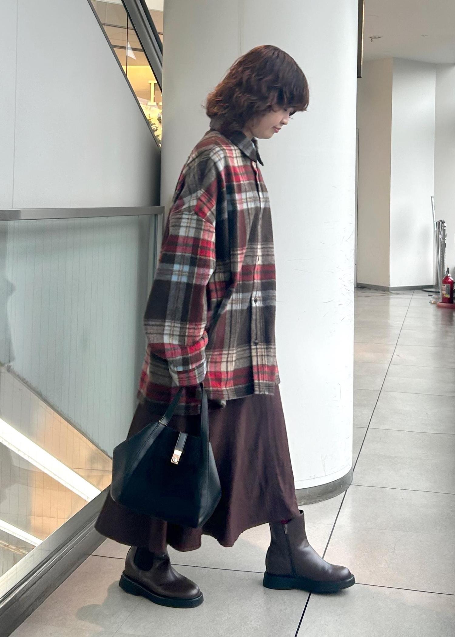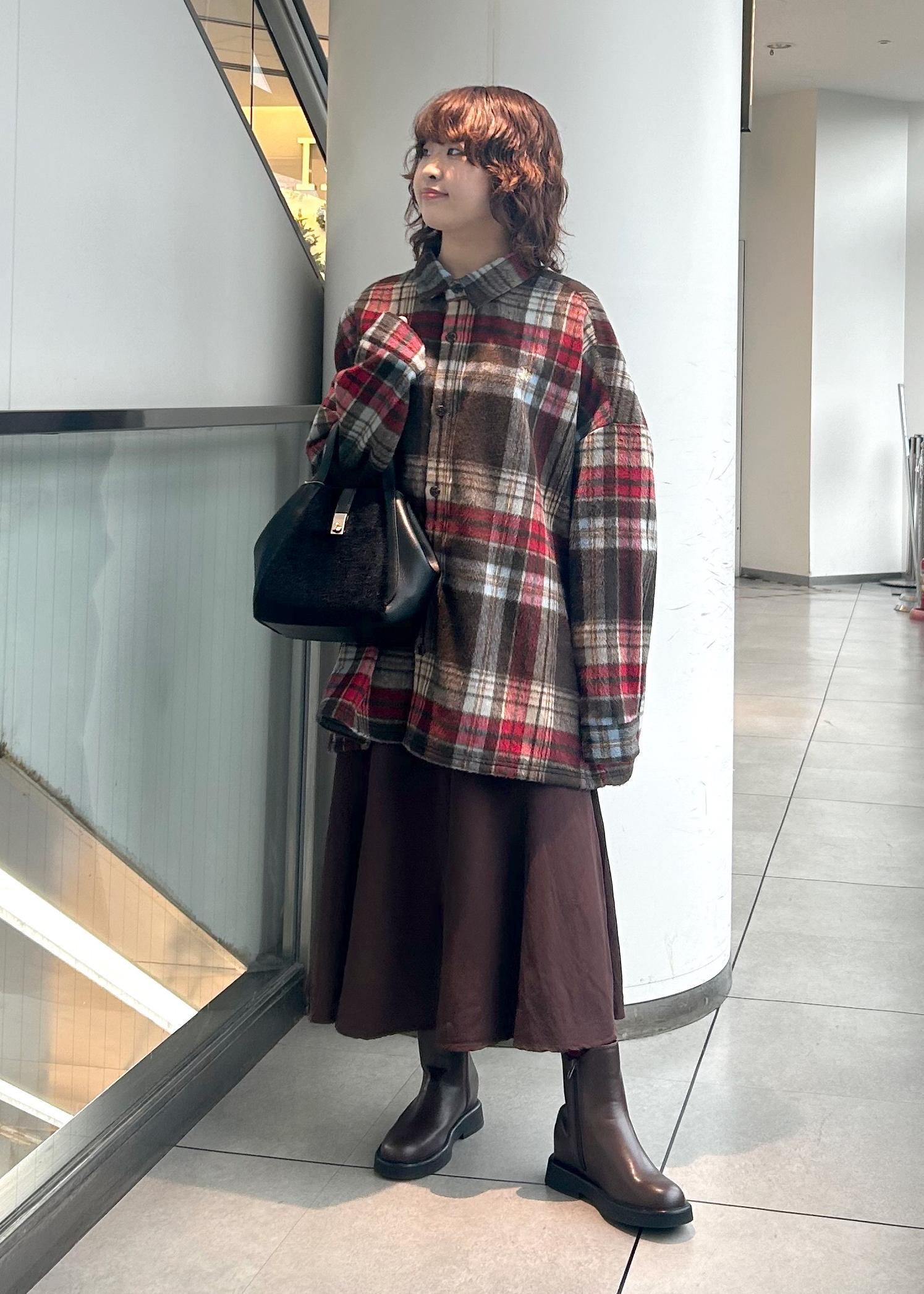 チェックのトップスは丈が長めなので、重くなりすぎないよう素材が軽く見えるスカートを合わせました!