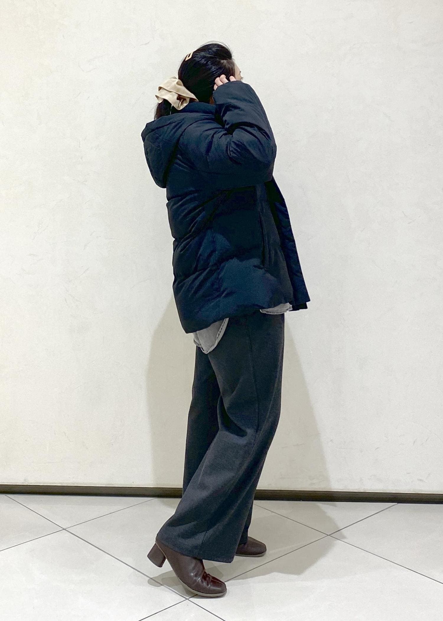 短丈ニットに緩めのシャツをレイヤードして、体型カバーコーデにしました。服が緩めなので、ブーツはヒールで高さを出してスタイルアップ⤴️また、ダウンを合わせて真冬まで使えるお出かけコーデにしました!ダウンは軽いので、移動も楽ちんです。