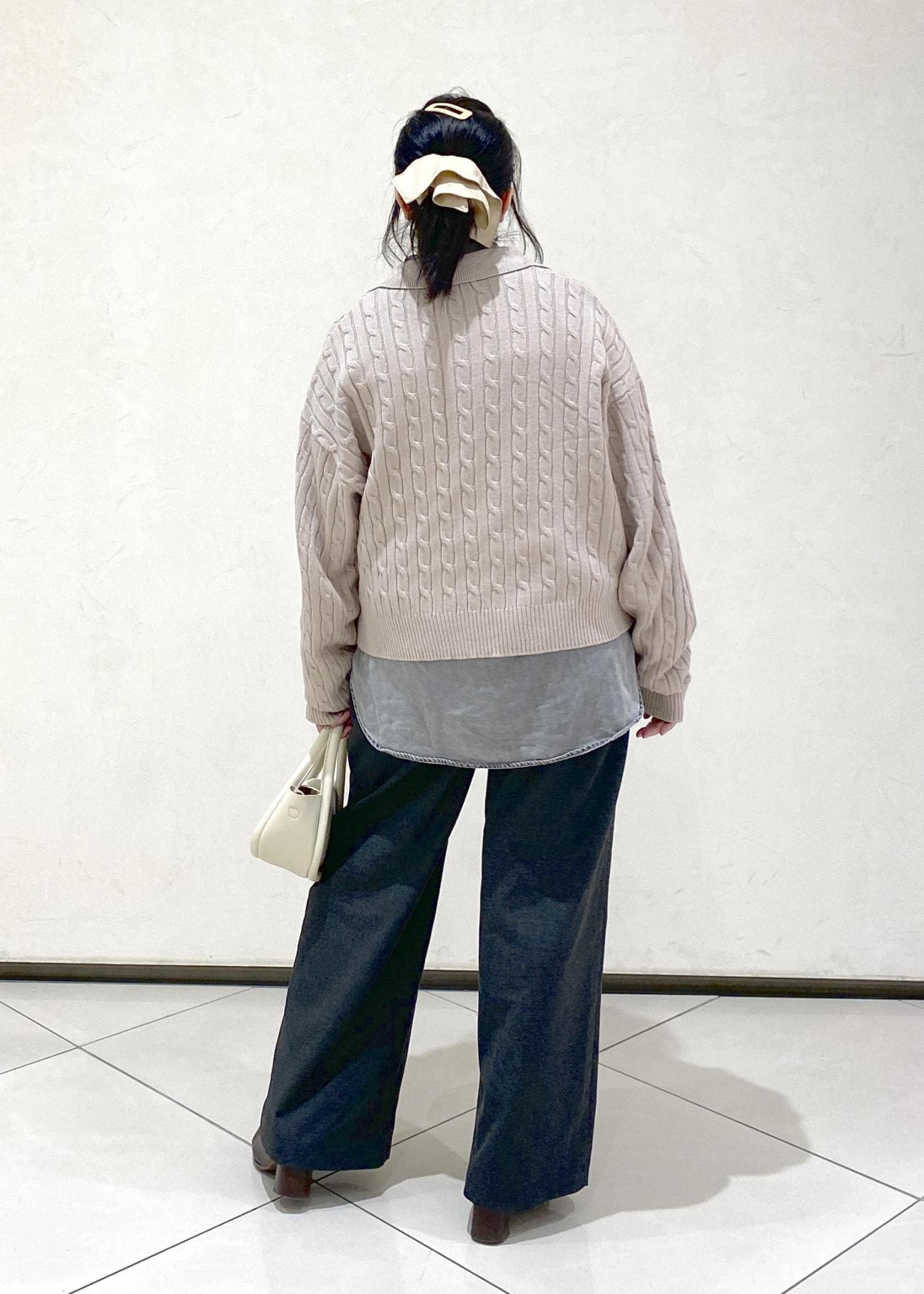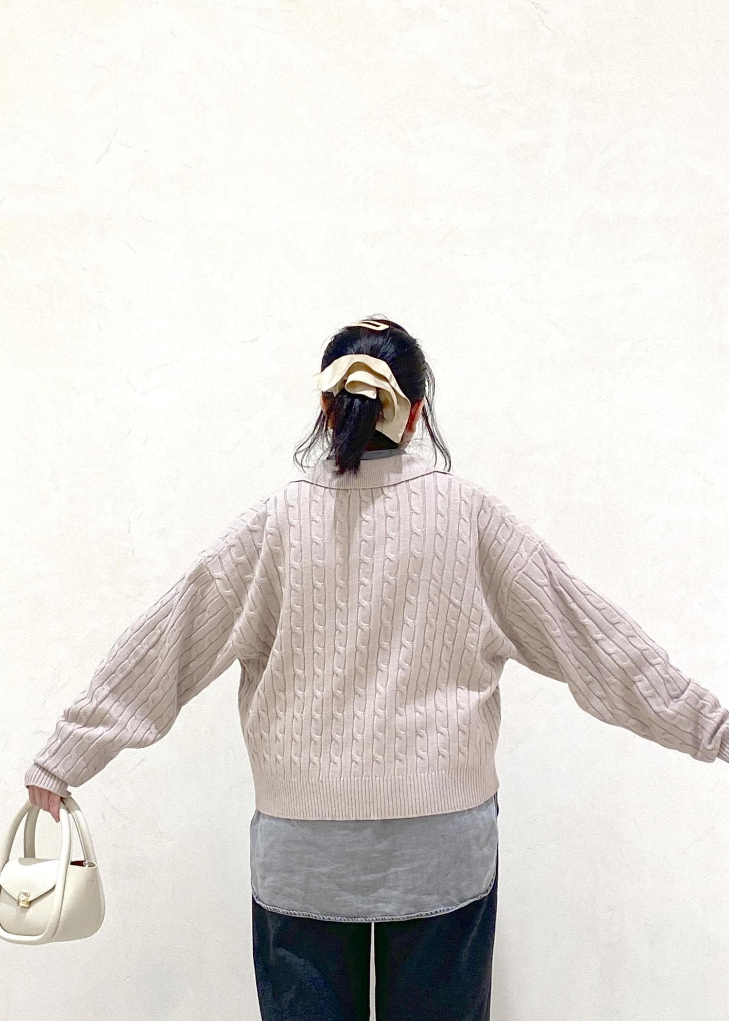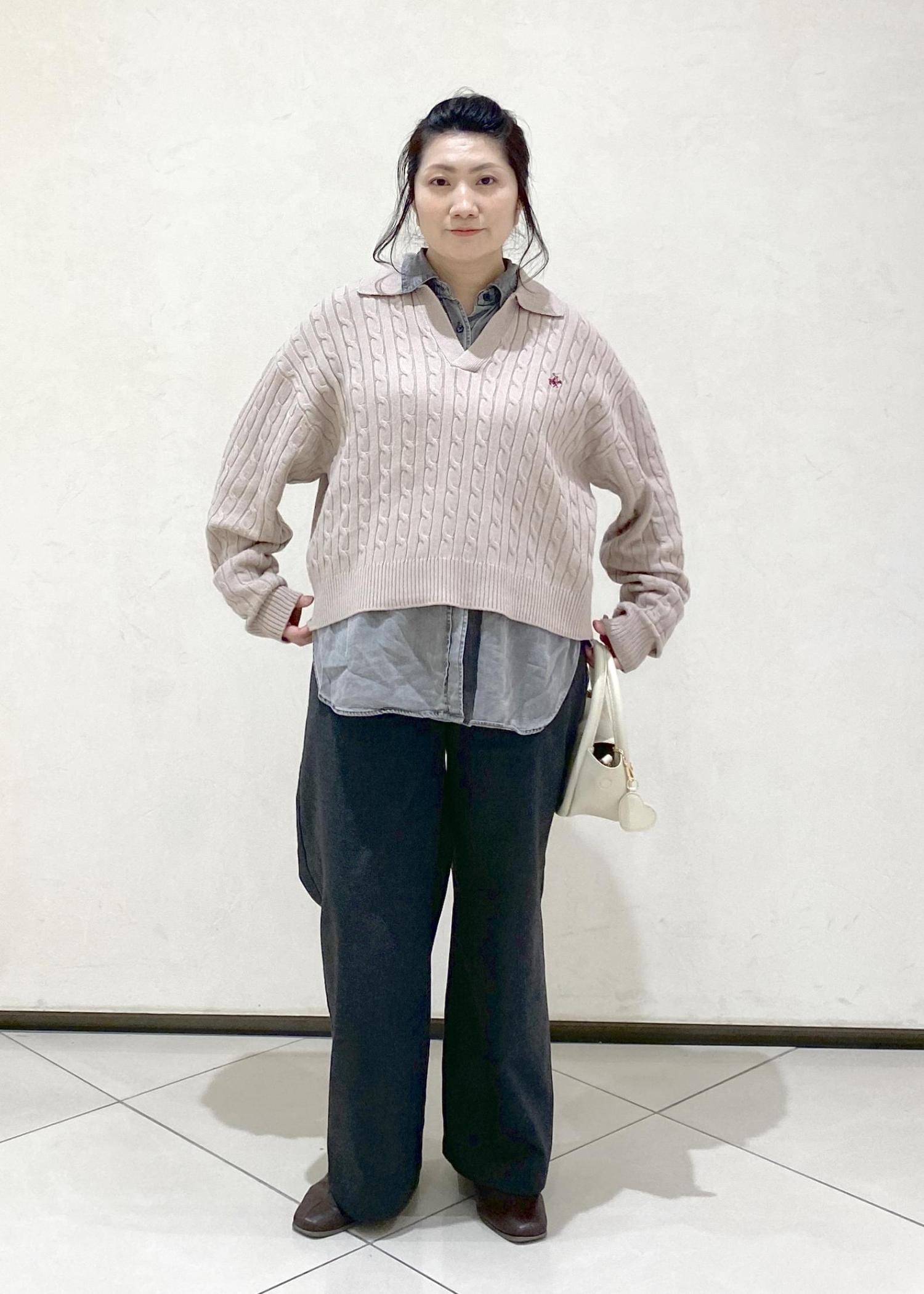 ROPÉ PICNIC【BEVERLYHILLS POLO CLUB・新色追加】ケーブル編みクロップドスキッパーニットベージュ / F¥5,995レビュー首元は開きすぎないので、1枚でも着られますが、シャツやタートル重ねが温かく着られてオシャレ感もUPします。丈感はやや短めですが、ピッタリしすぎないので、体型カバーとしてもおススメです。生地感も柔らかく着心地抜群です。