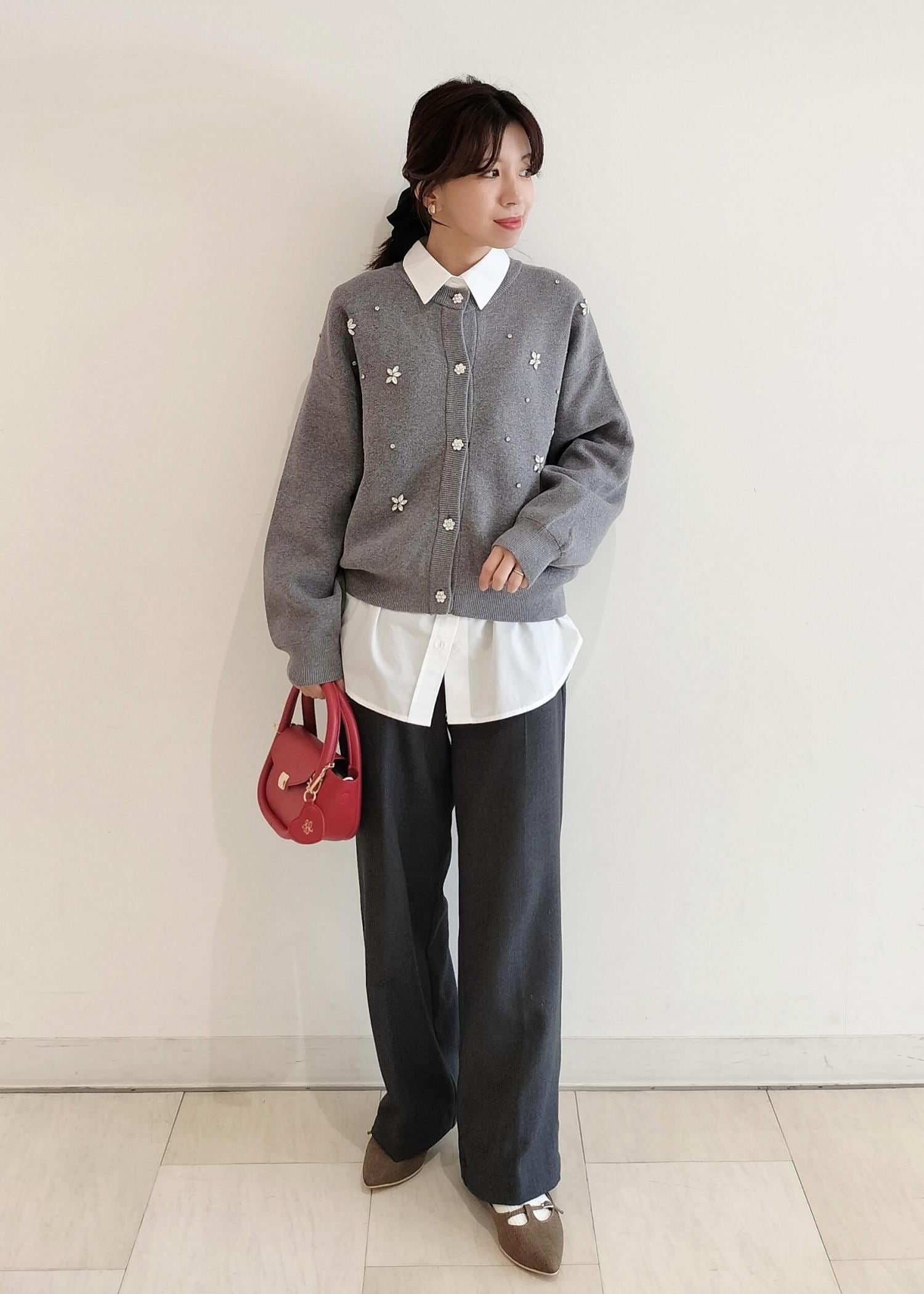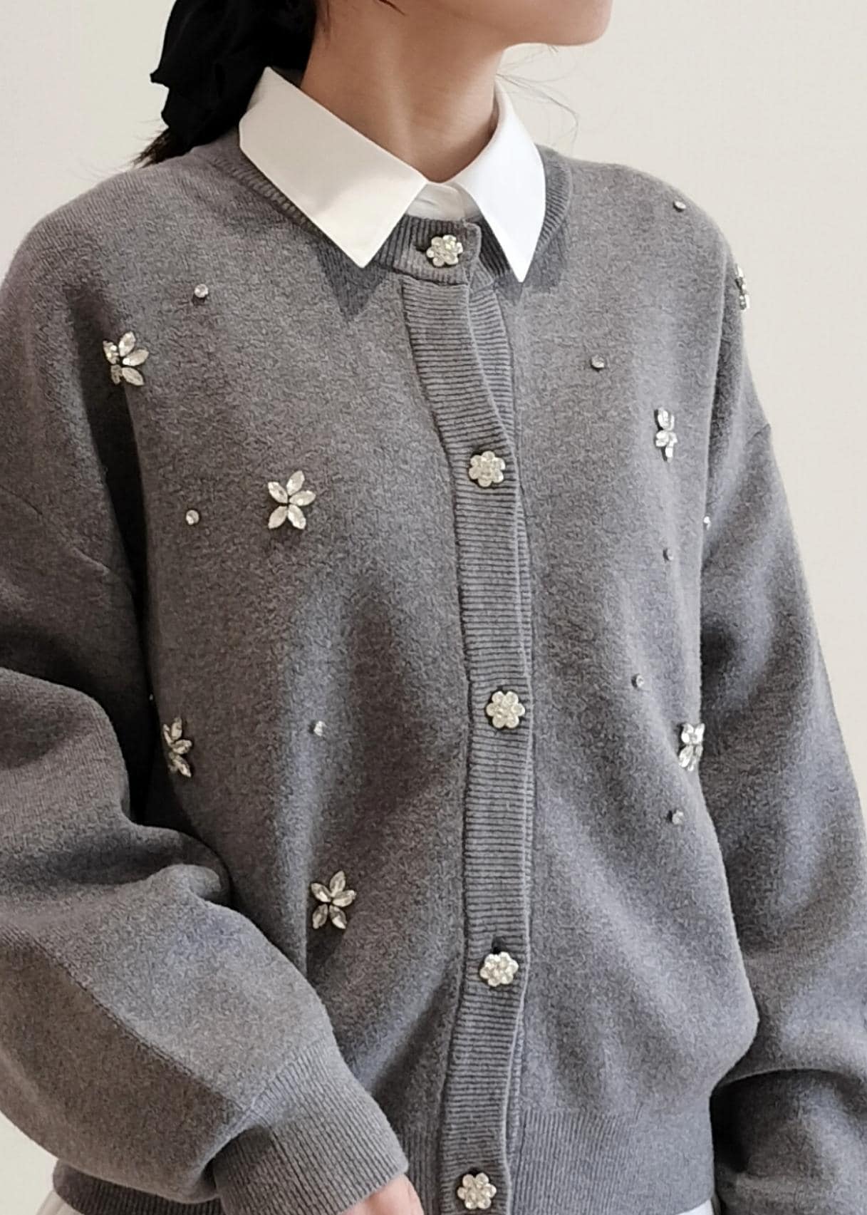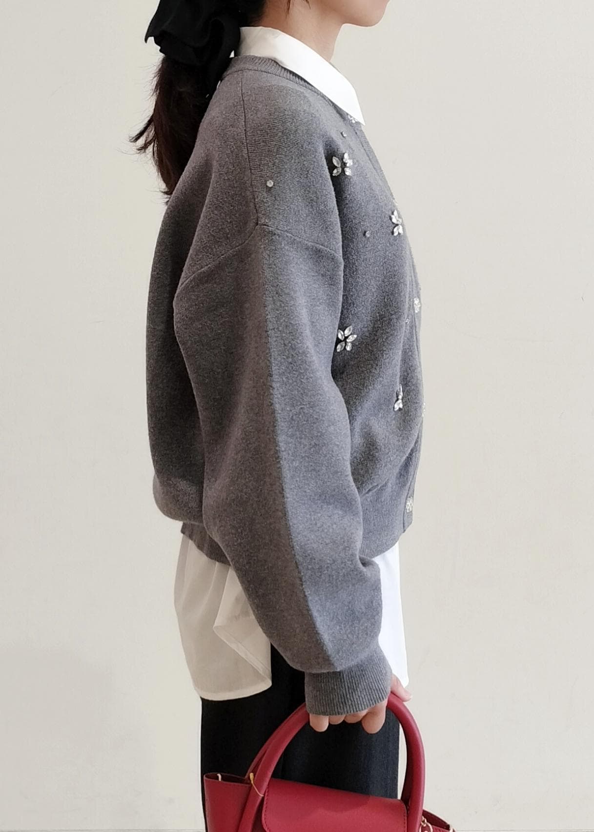 ビジューが華やかなカーディガンはぜひ年末年始に着てほしいアイテムです。