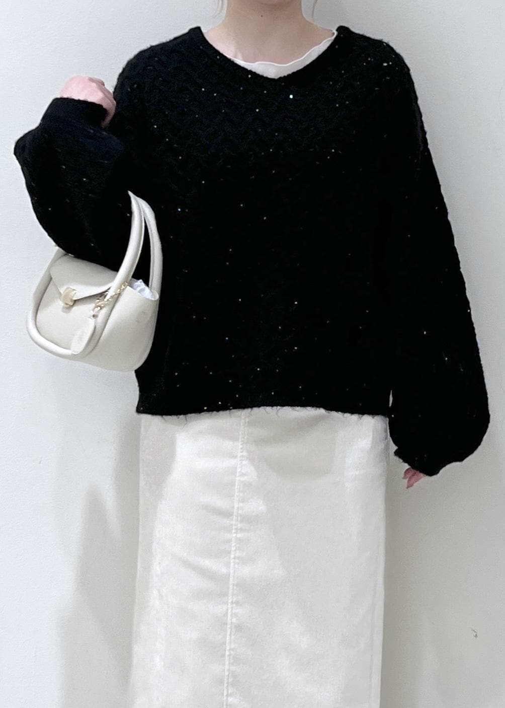 キラキラと輝くスパンコールが可愛いニットなので着ているだけで見た目も華やかになります!