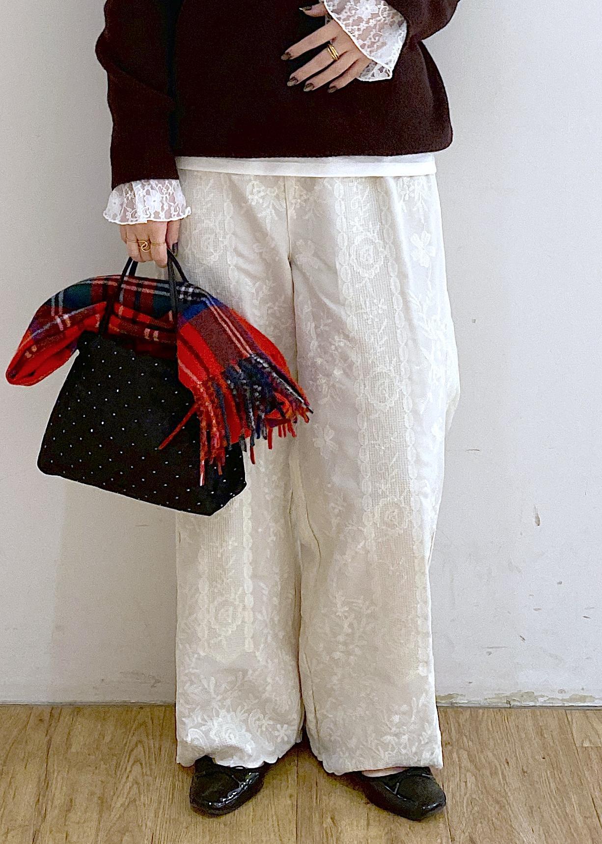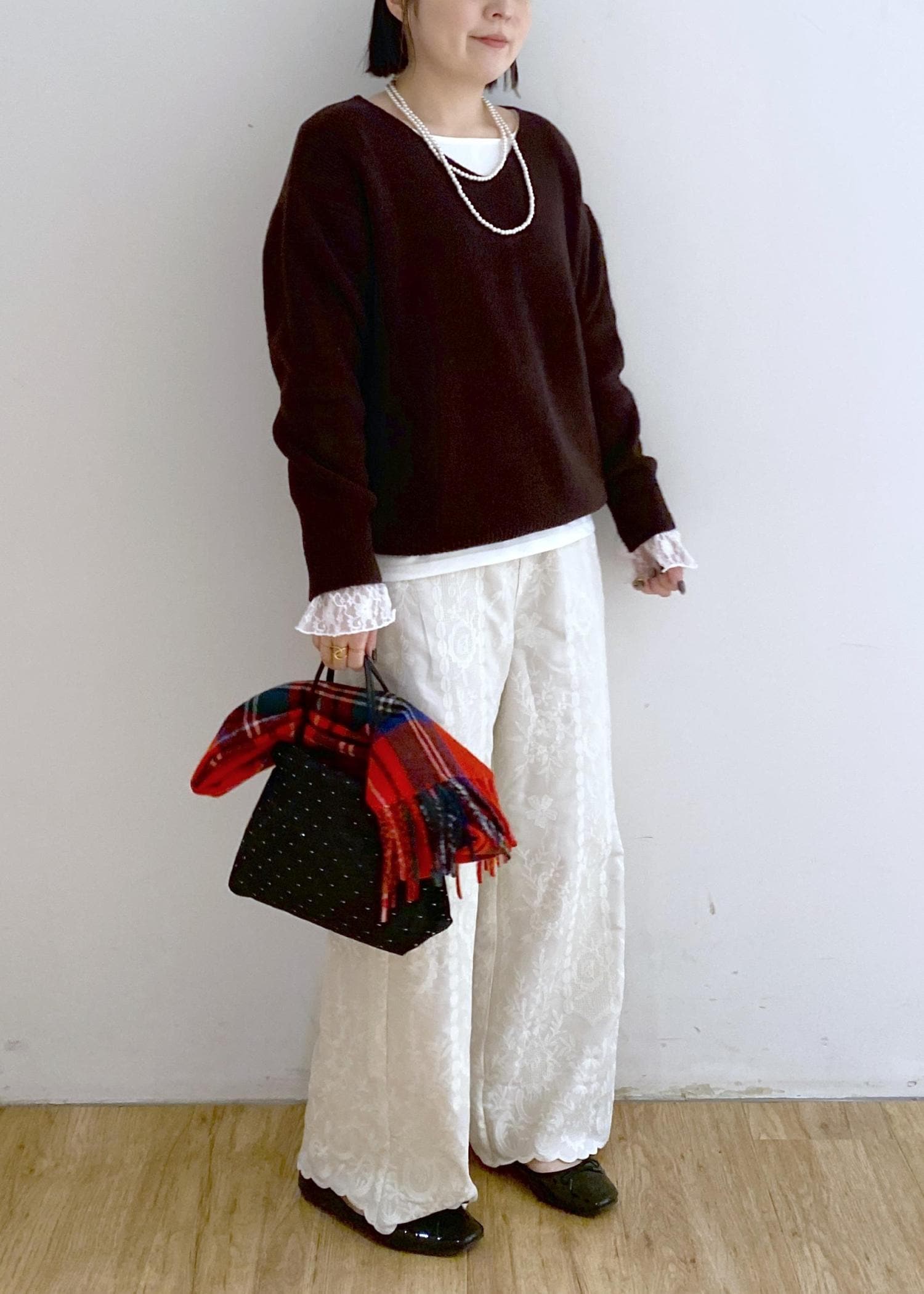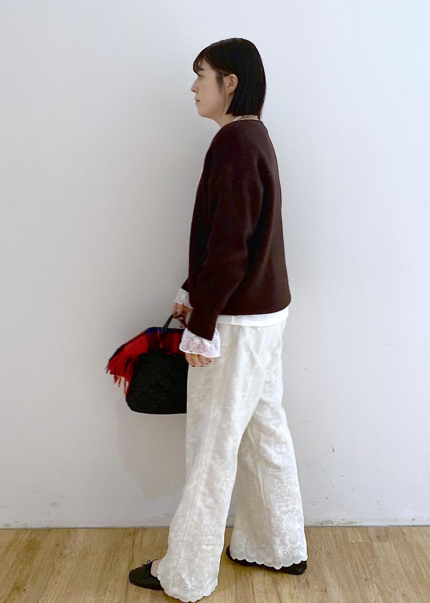ROPÉ PICNICウィンターイージー刺繍パンツキナリ / S¥7,997レビューこちらリアルバイアイテム☺︎156cmでいつもMサイズ着用ですが、今回は着丈が長めなのでSサイズを着用しています◎膝まで裏地があるので透け感はゼロ◎ウエストもゴム仕様でかなり履きやすいです☺︎