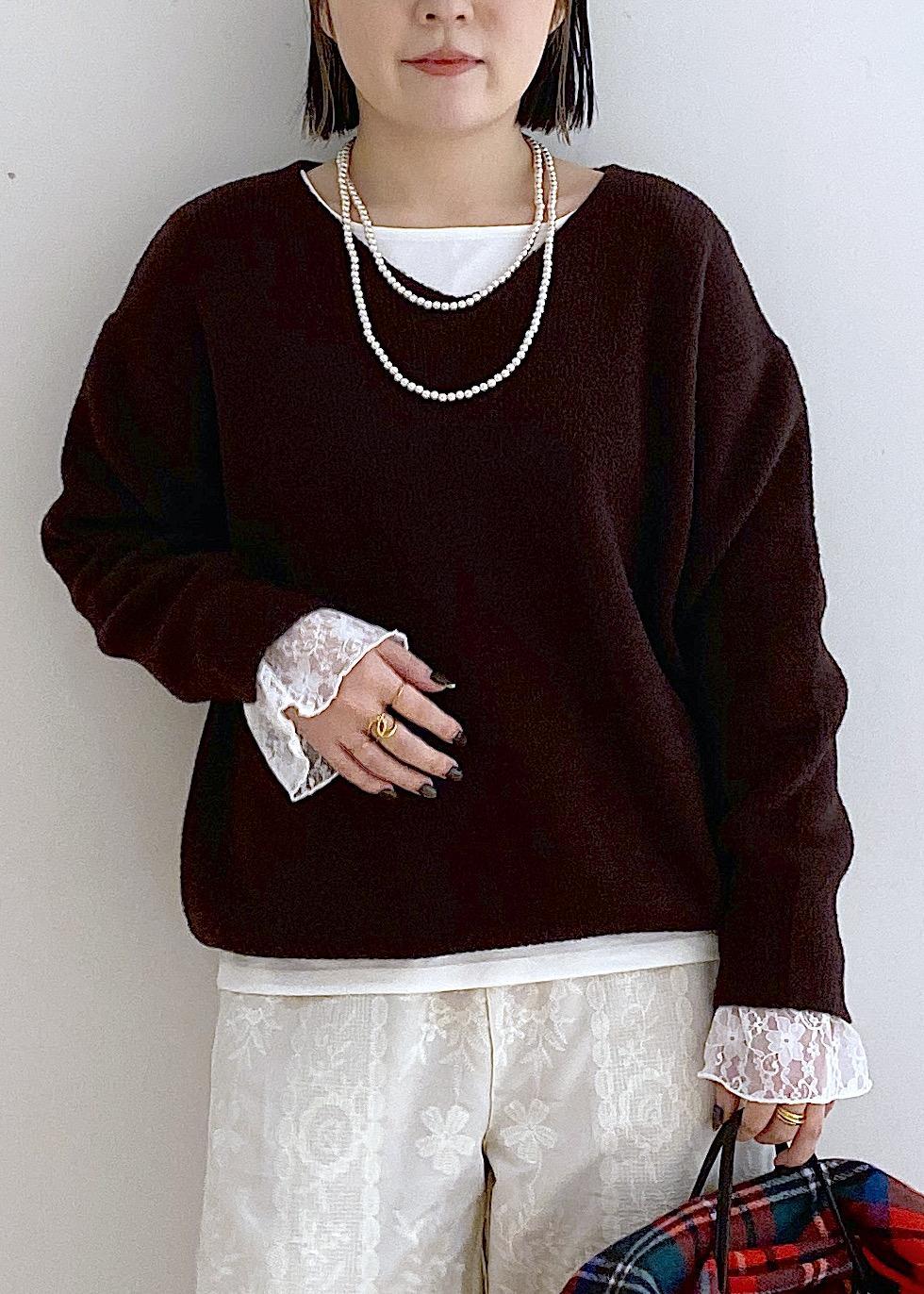 予約ROPÉ PICNIC【新色追加】スフレニットシリーズ Vネックニットプルオーバー/イージーケア・リンクコーデダークブラウン / F¥3,993レビュー骨ストさんが得意なVネックデザイン◎もちもちとした生地ですがボリューム感はないので、着膨れする事なく着用できました◎