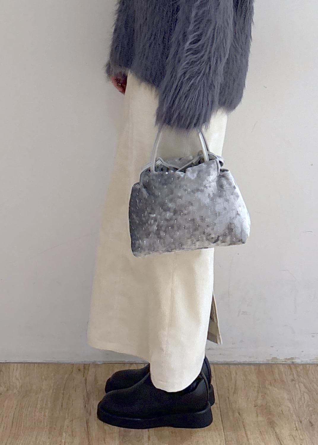 ROPÉ PICNIC PASSAGE2WAYハンドル シャイニーベロアパースバッグシルバー / F¥4,389レビューベロア素材の巾着バッグです!