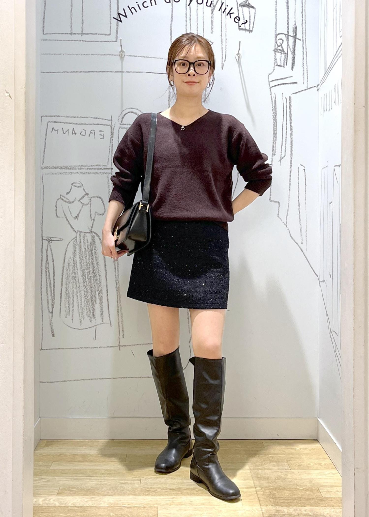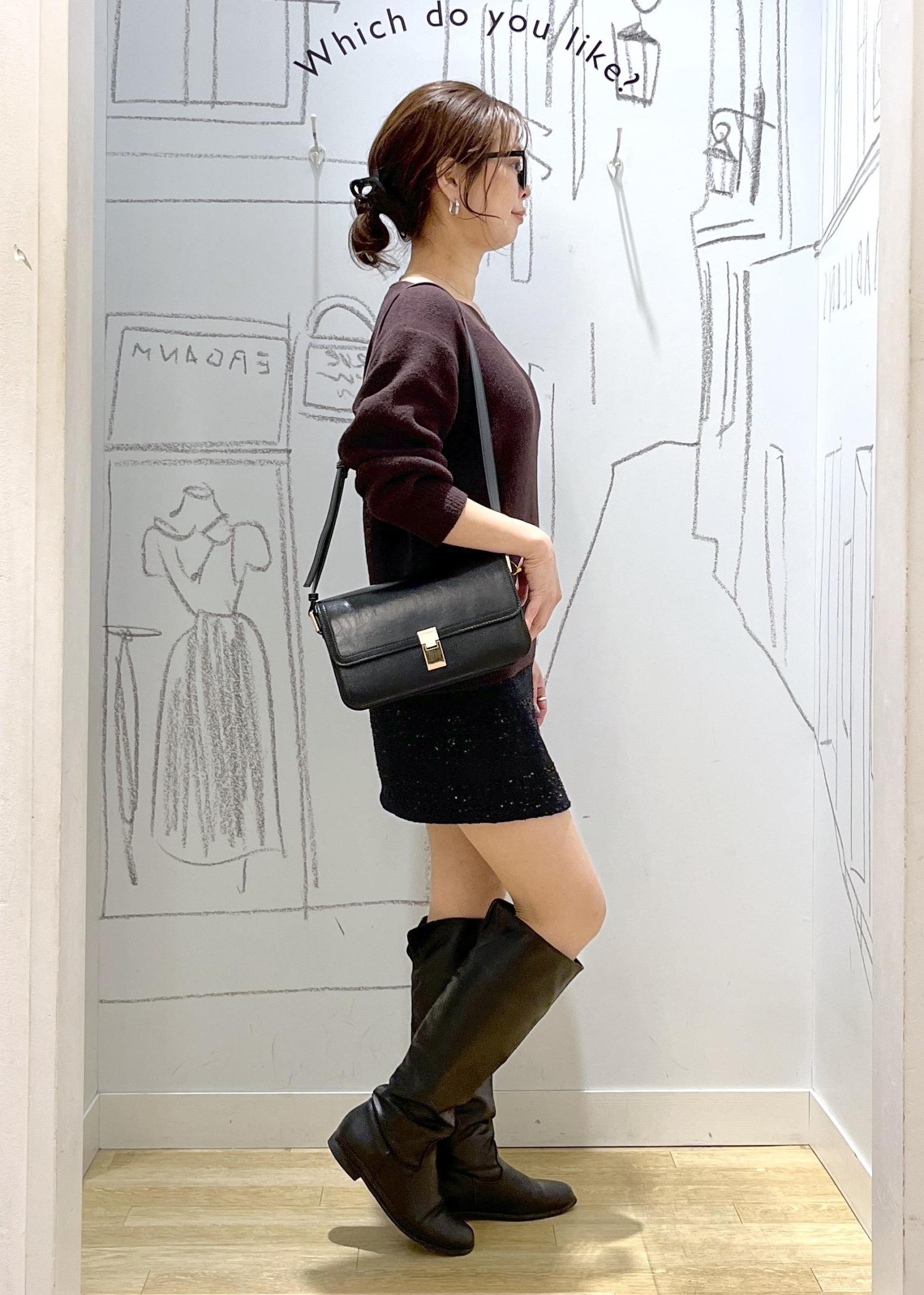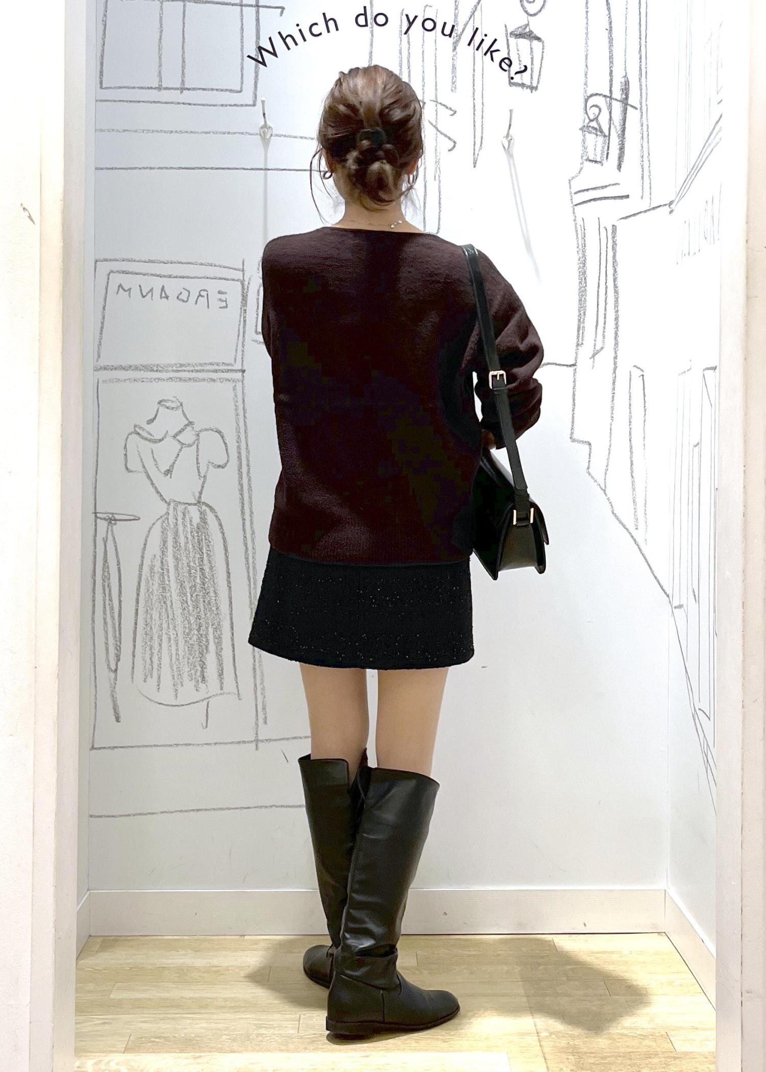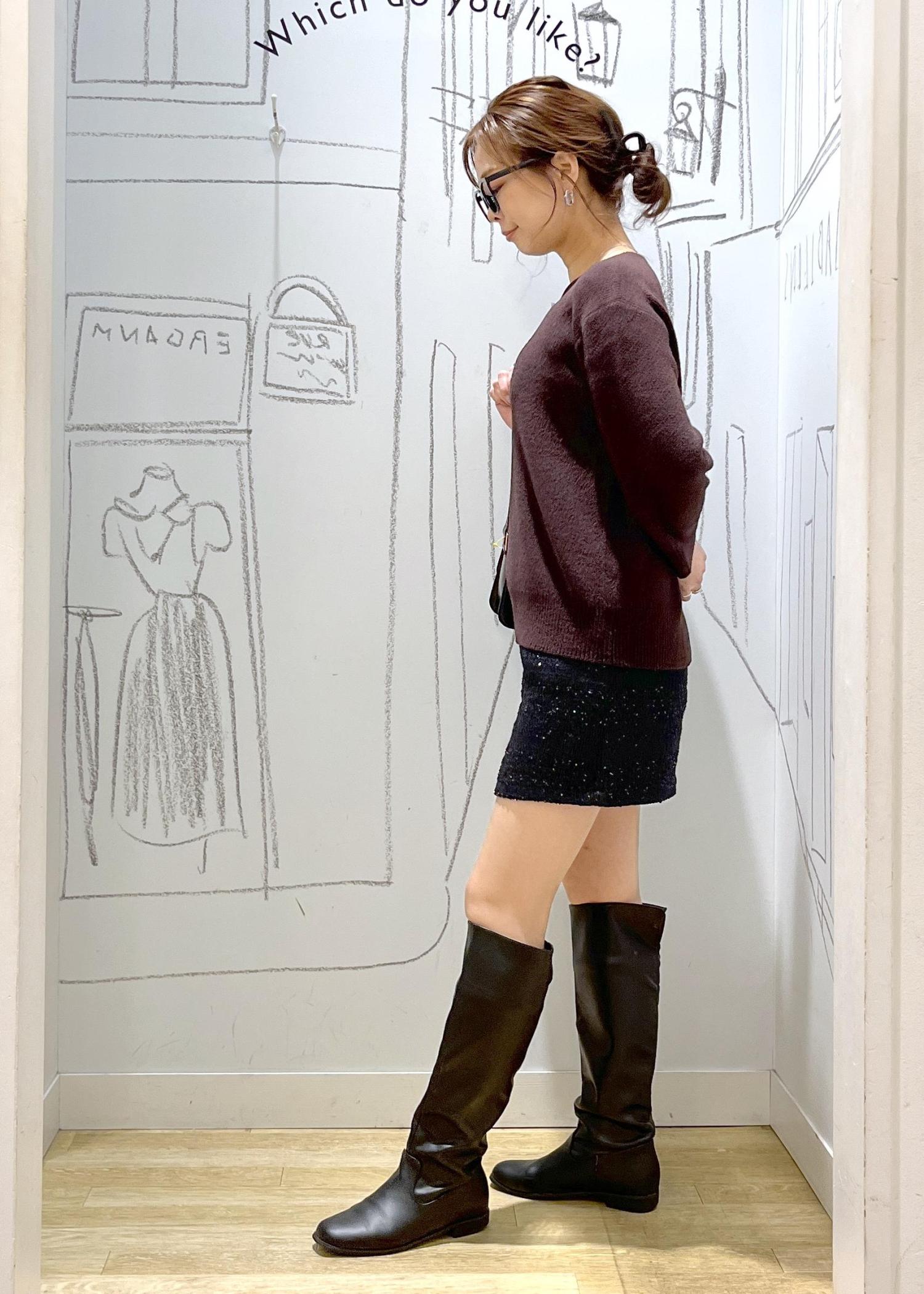 ロングブーツを合わせて、足元はすっきり縦ラインを意識しました。