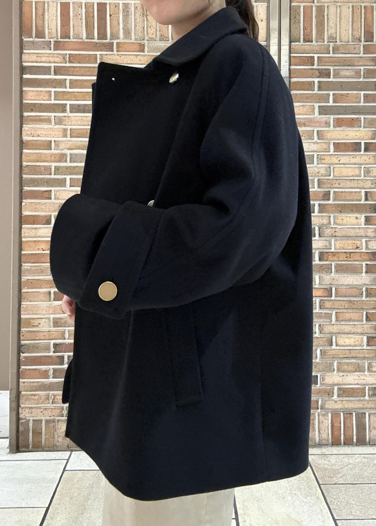 腰にかかる長さのショート丈なので、フレアシルエットのスカートが綺麗に履けます。