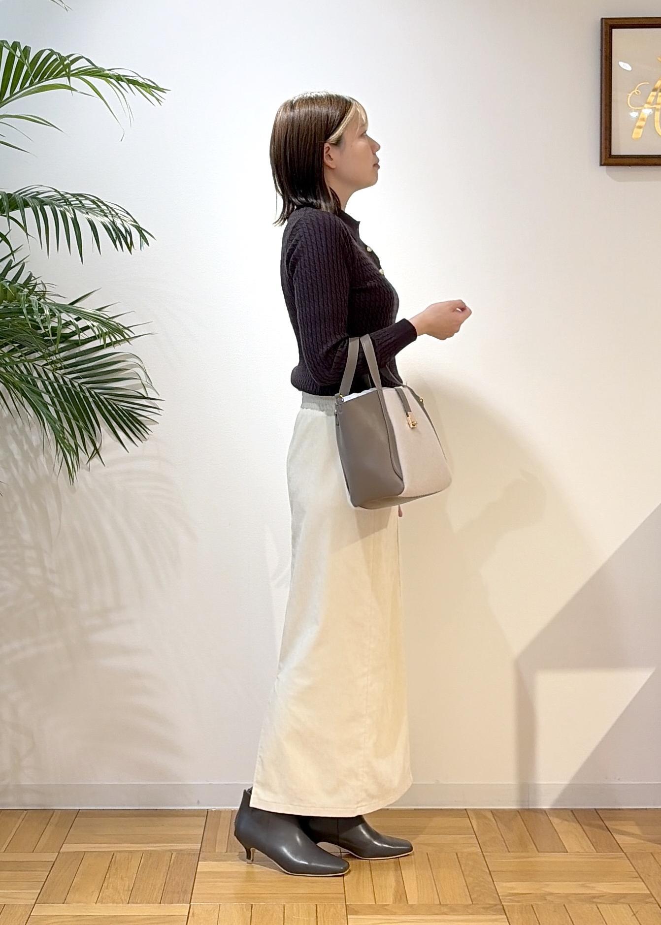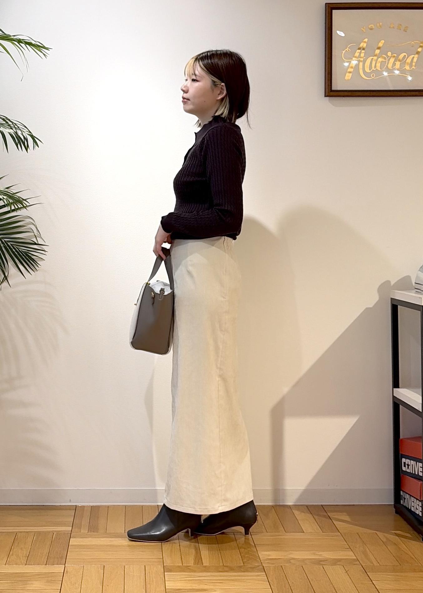 トップスをスカートにインしてスッキリ感が出るので、ボリュームのあるアウターを羽織っていただいても、メリハリがついてオススメです¨̮⃝