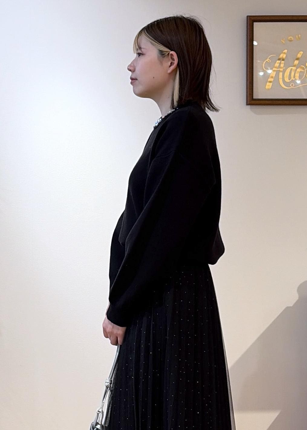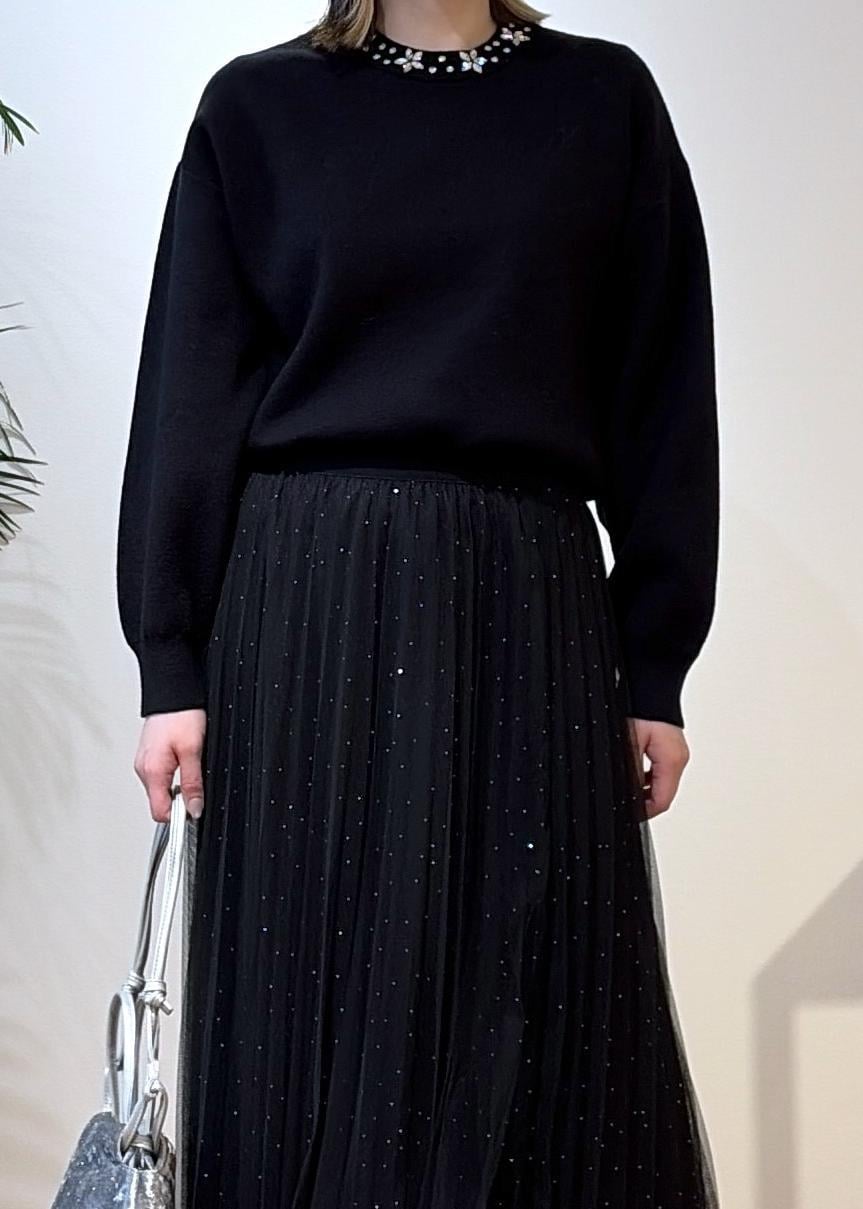 ROPÉ PICNICビジューニットプルオーバーブラック / F¥5,489レビュービジューのデザインが首元にあり、華やかなトップスです♩