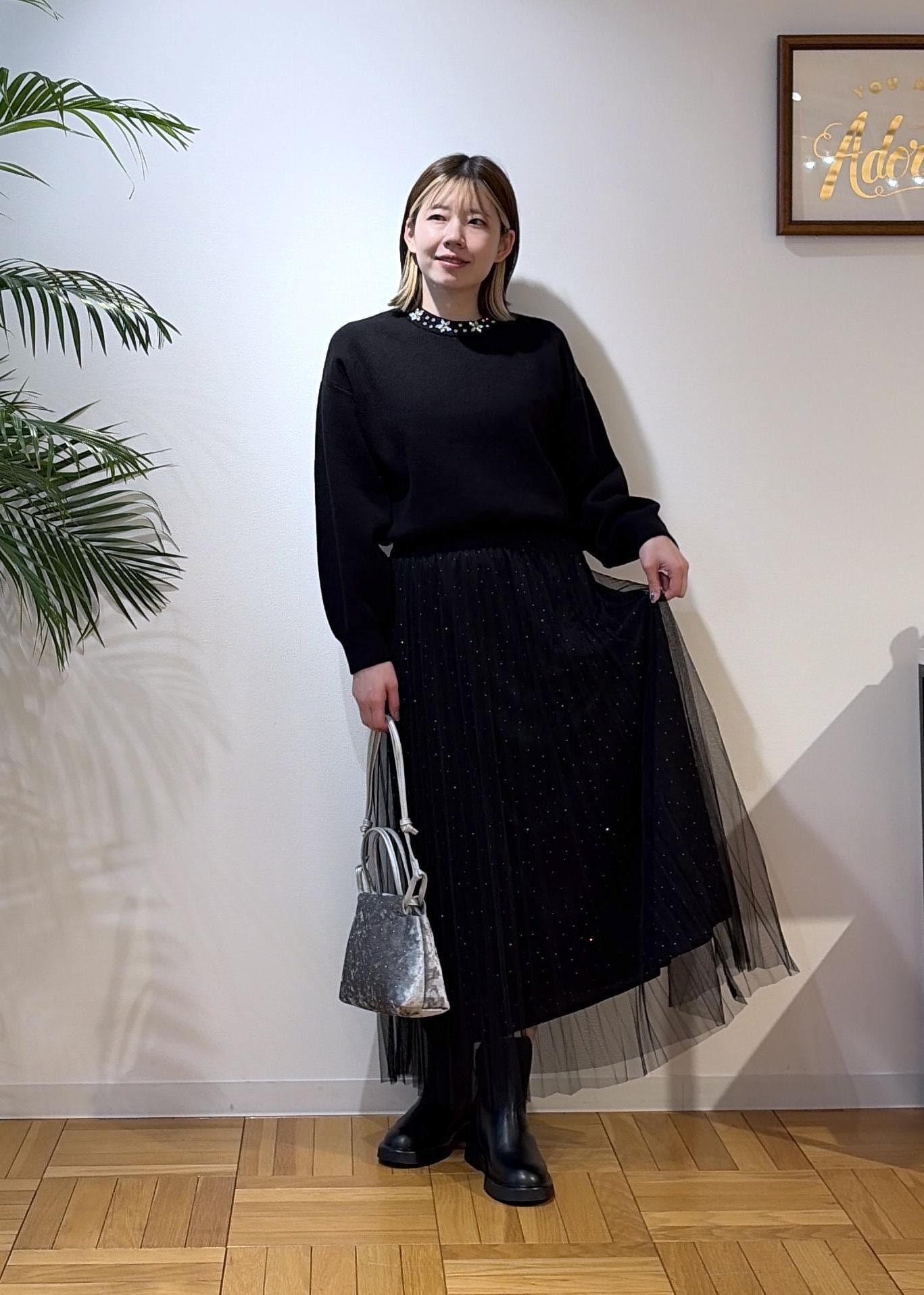 ROPÉ PICNICキラキラチュールプリーツスカート/着丈が選べるブラック / MT¥6,490レビュービジューがアクセントの長さを選べるスカートです♩
