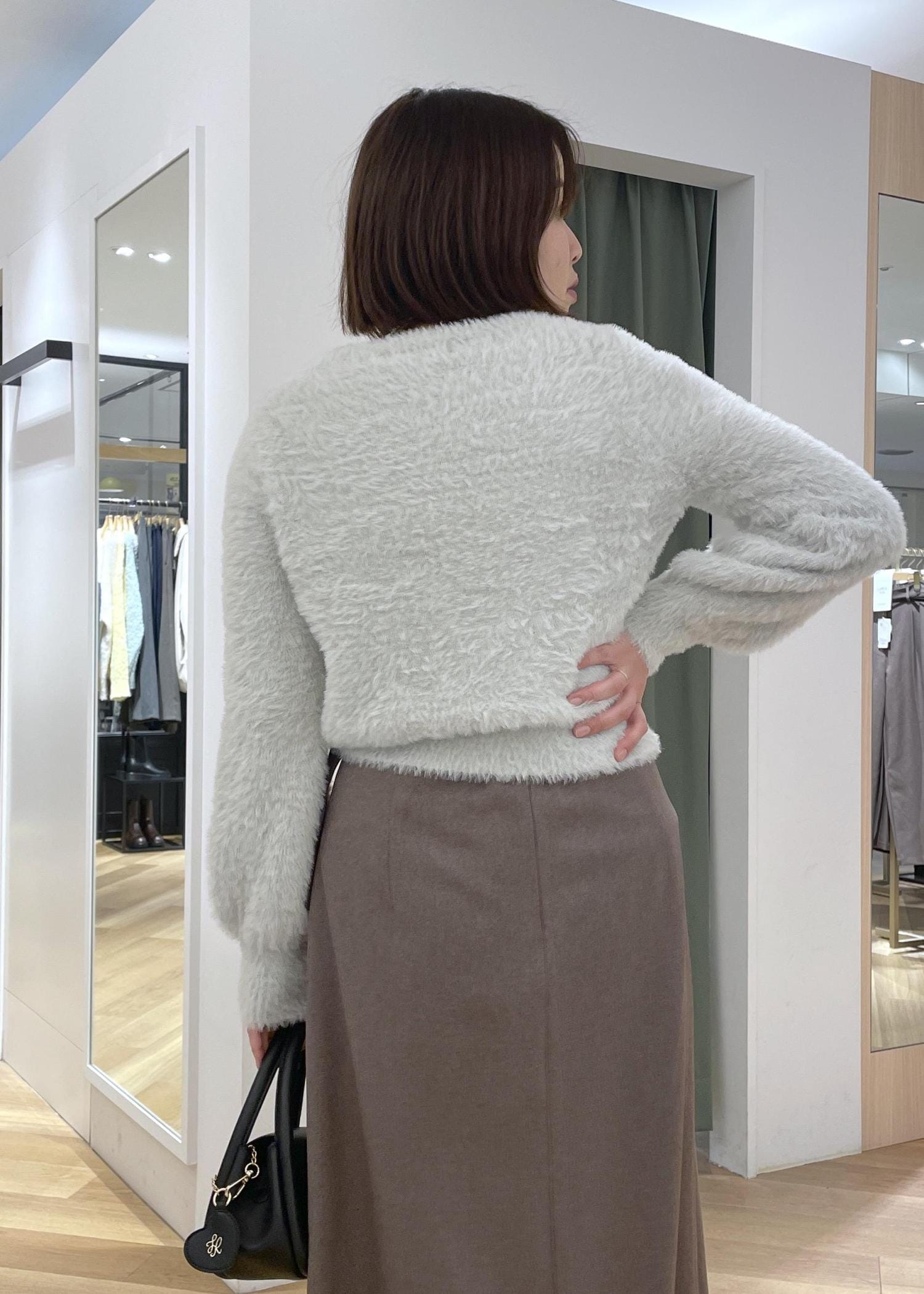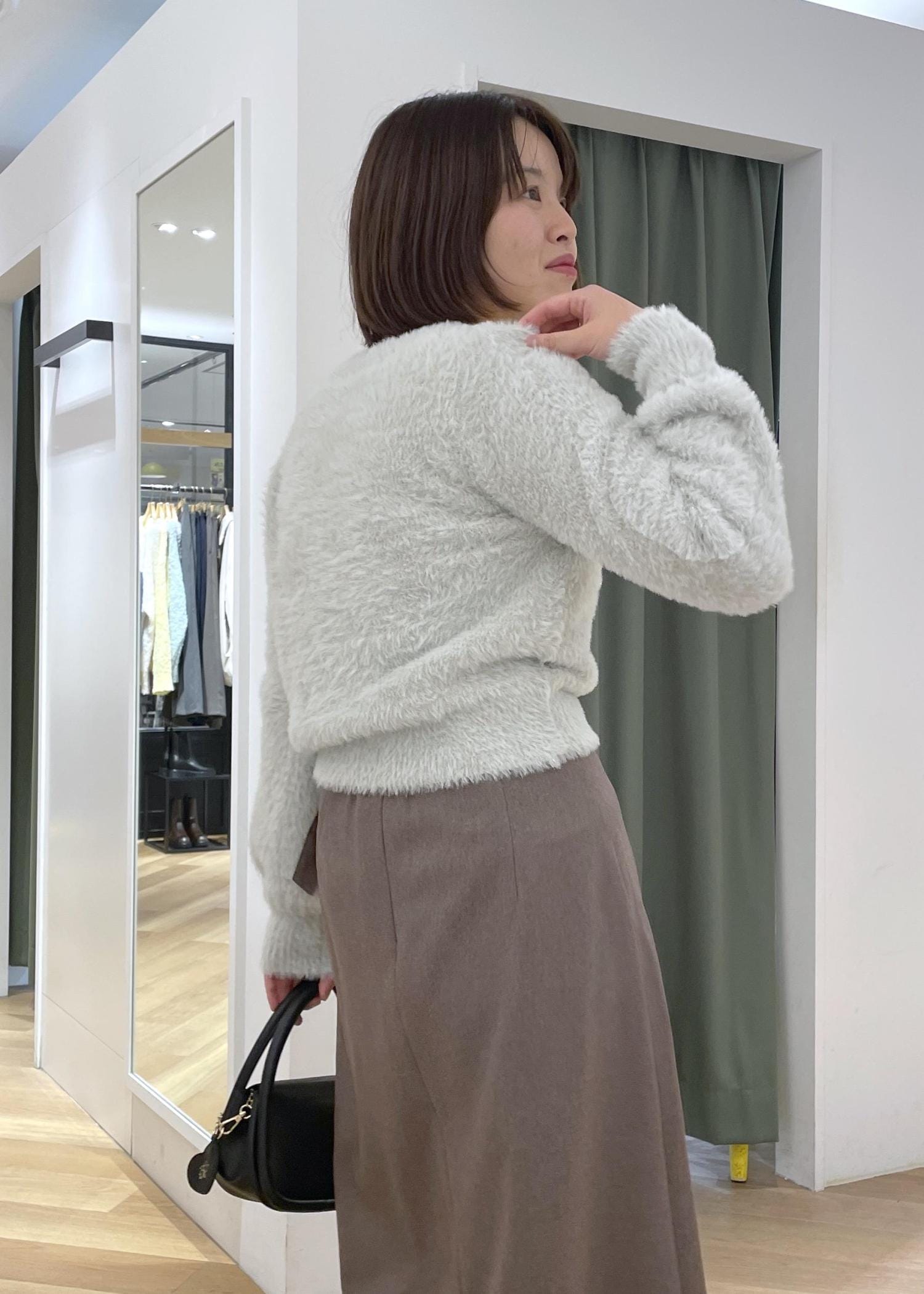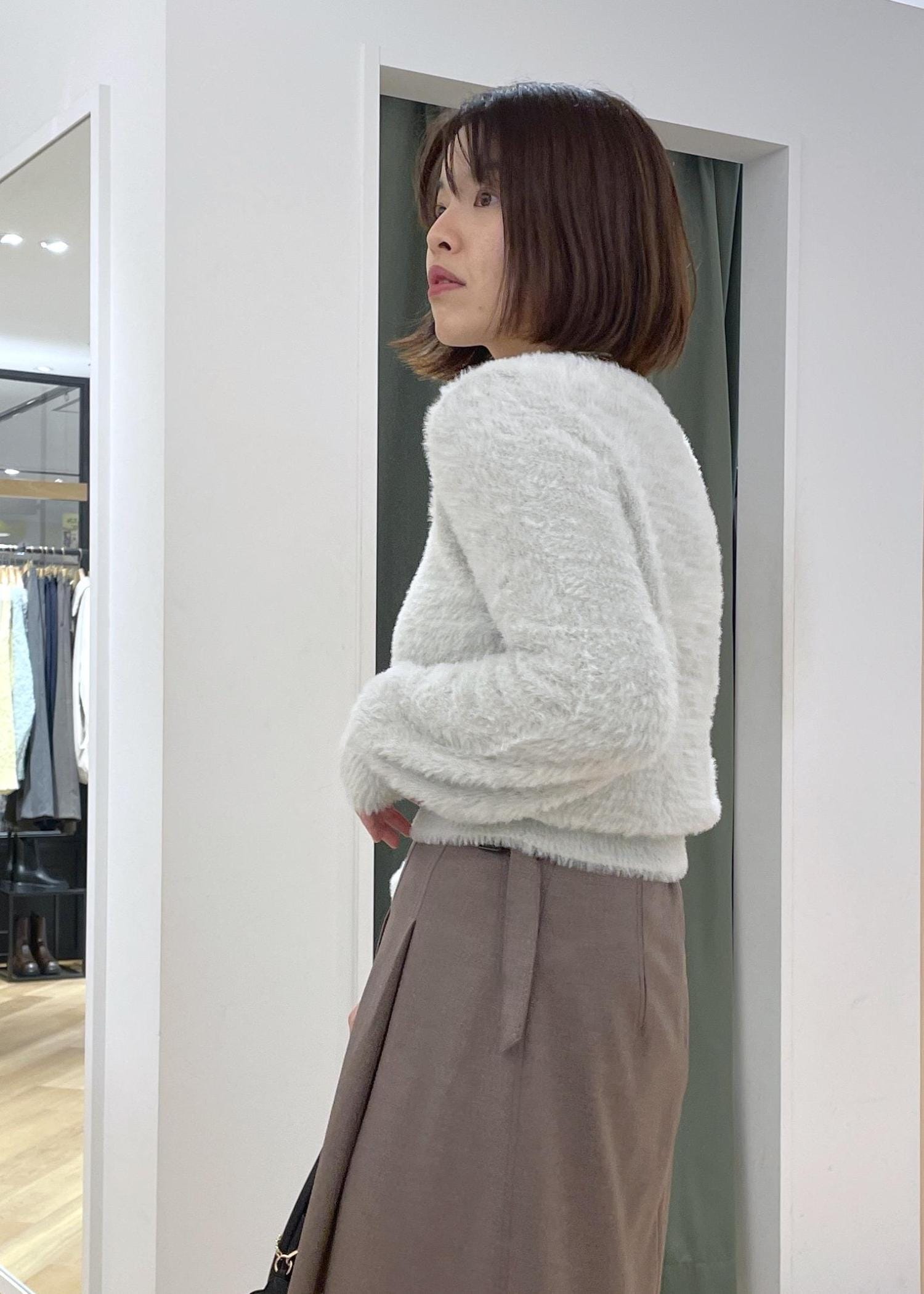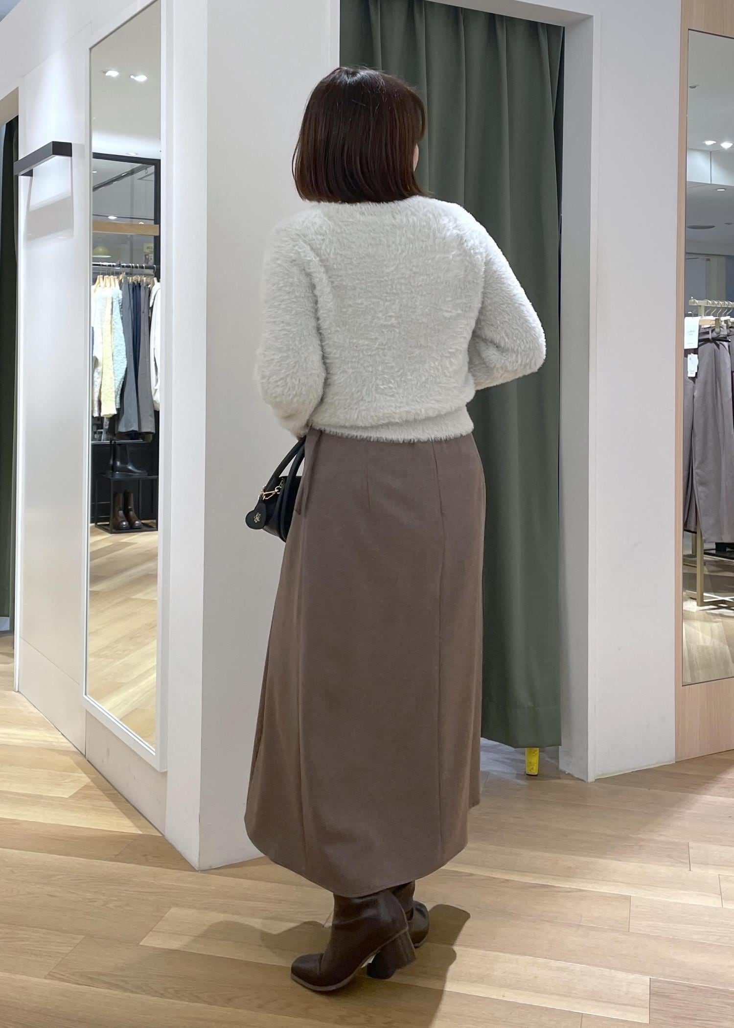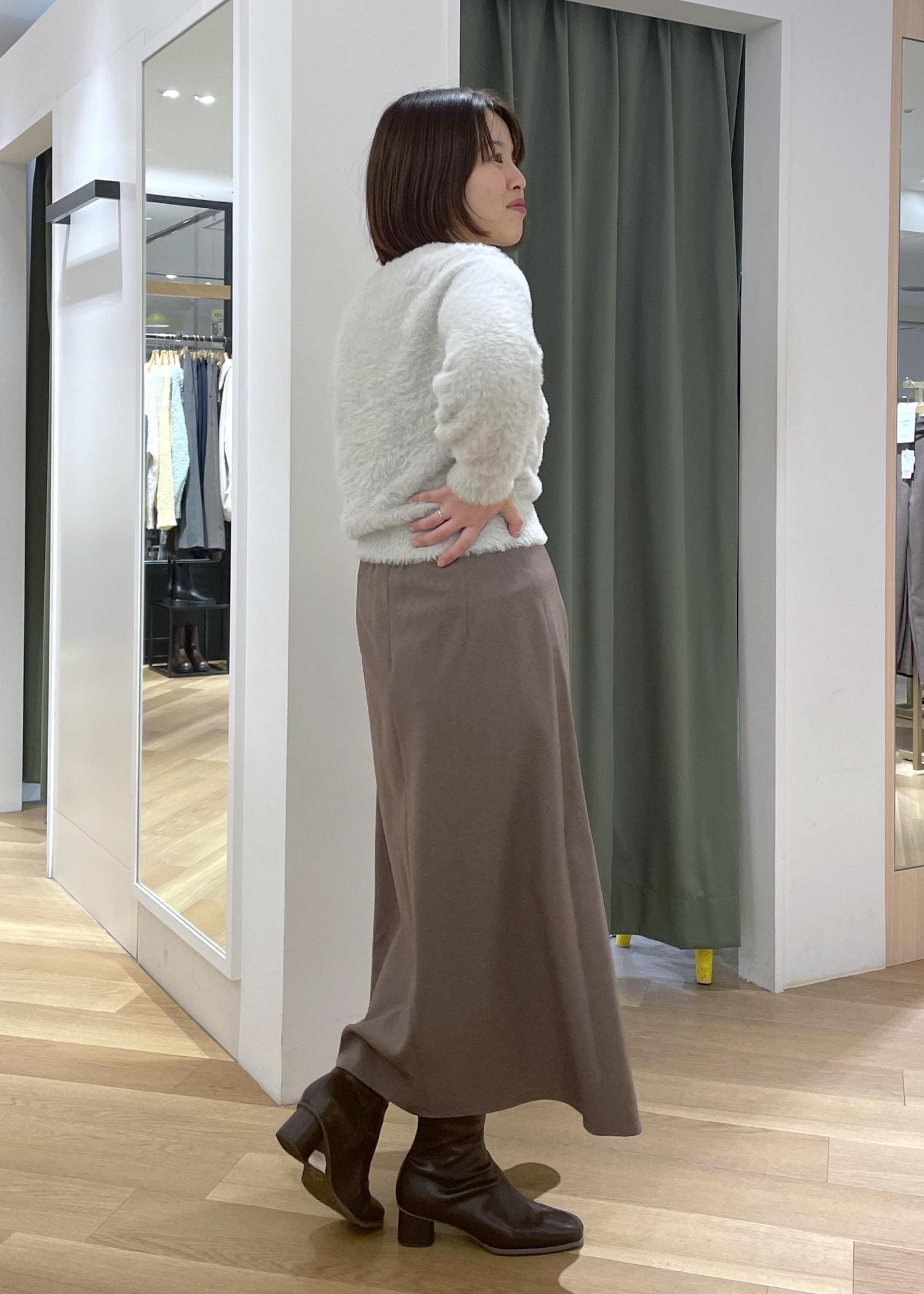 ふんわりとしたフェザーニットにロングスカートを合わせた、品良く決まるキレイめコーデです!