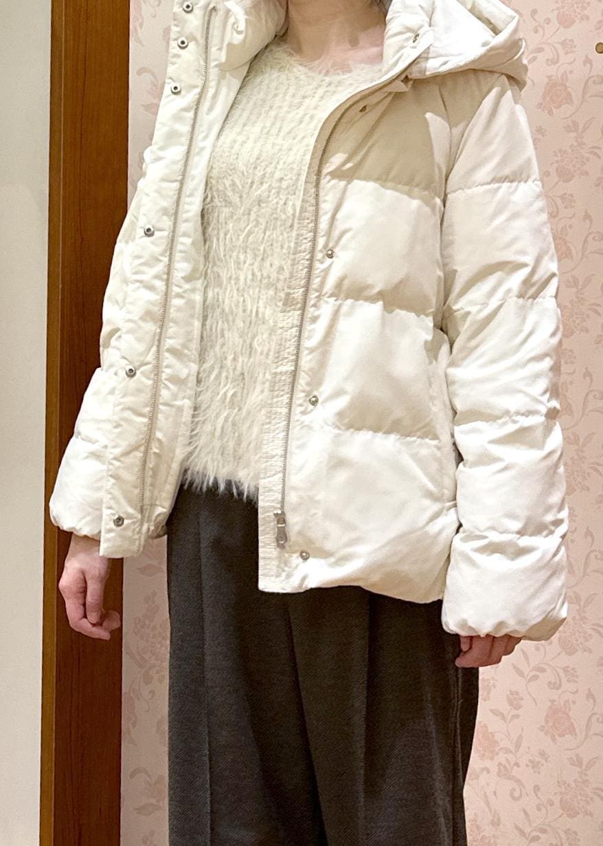 ROPÉ PICNIC【GREEN DOWN/グリーンダウン】ショートダウン/リンクコーデオフホワイト / L¥14,850レビューとても軽くて、着た瞬間から包み込まれるような着心地です。フードも大きめなので、髪の毛を縛ったり長めの方も安心です◎