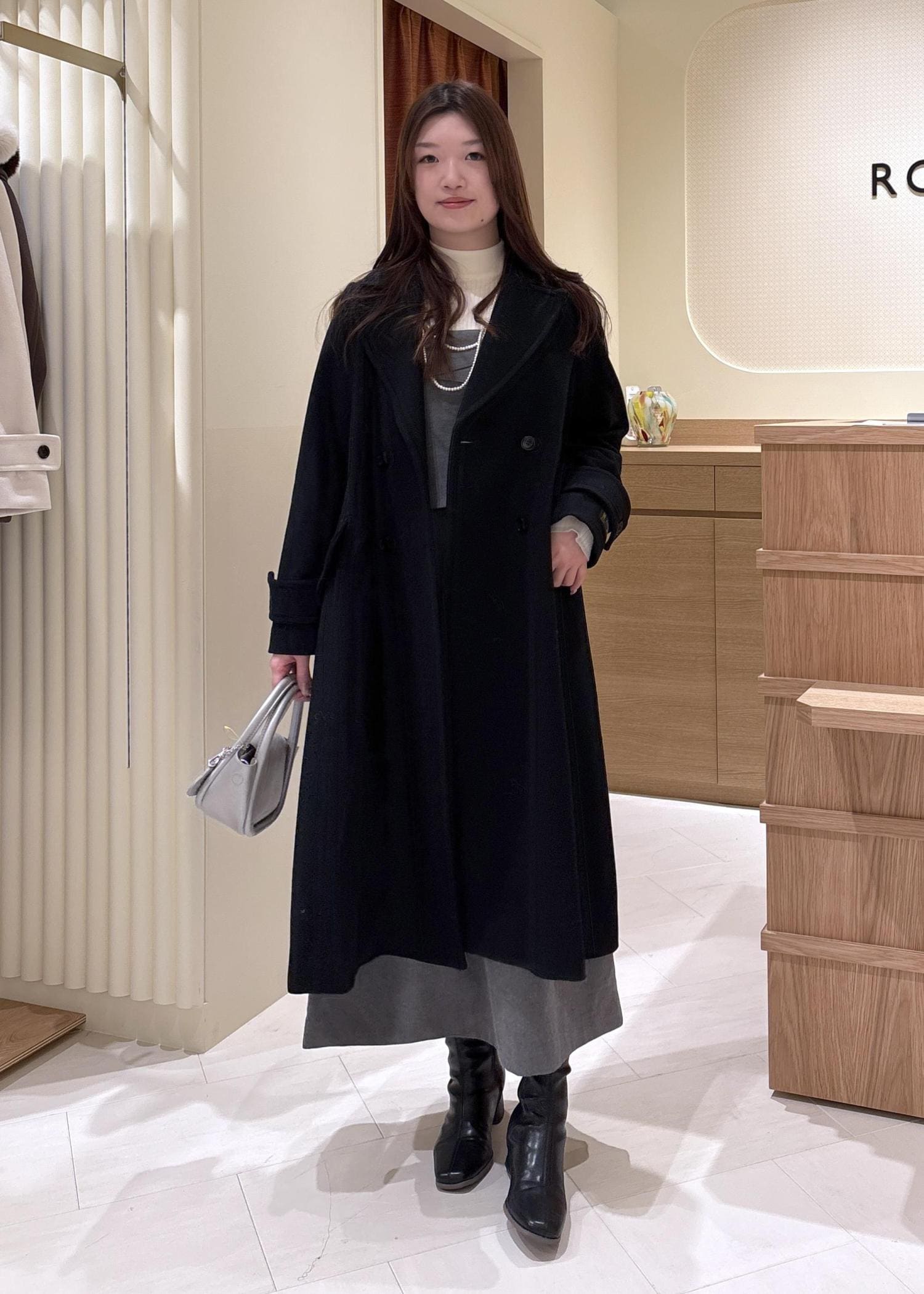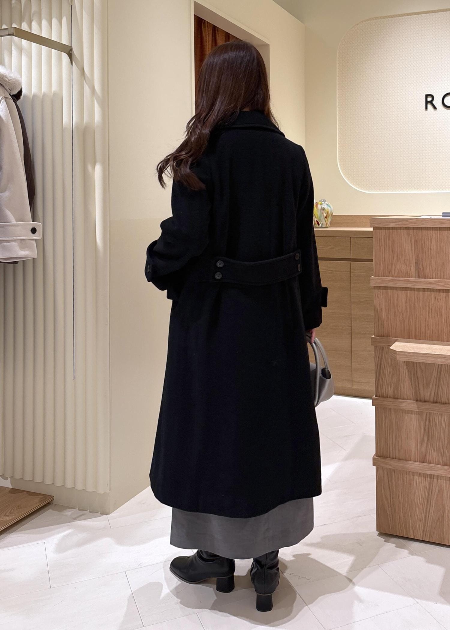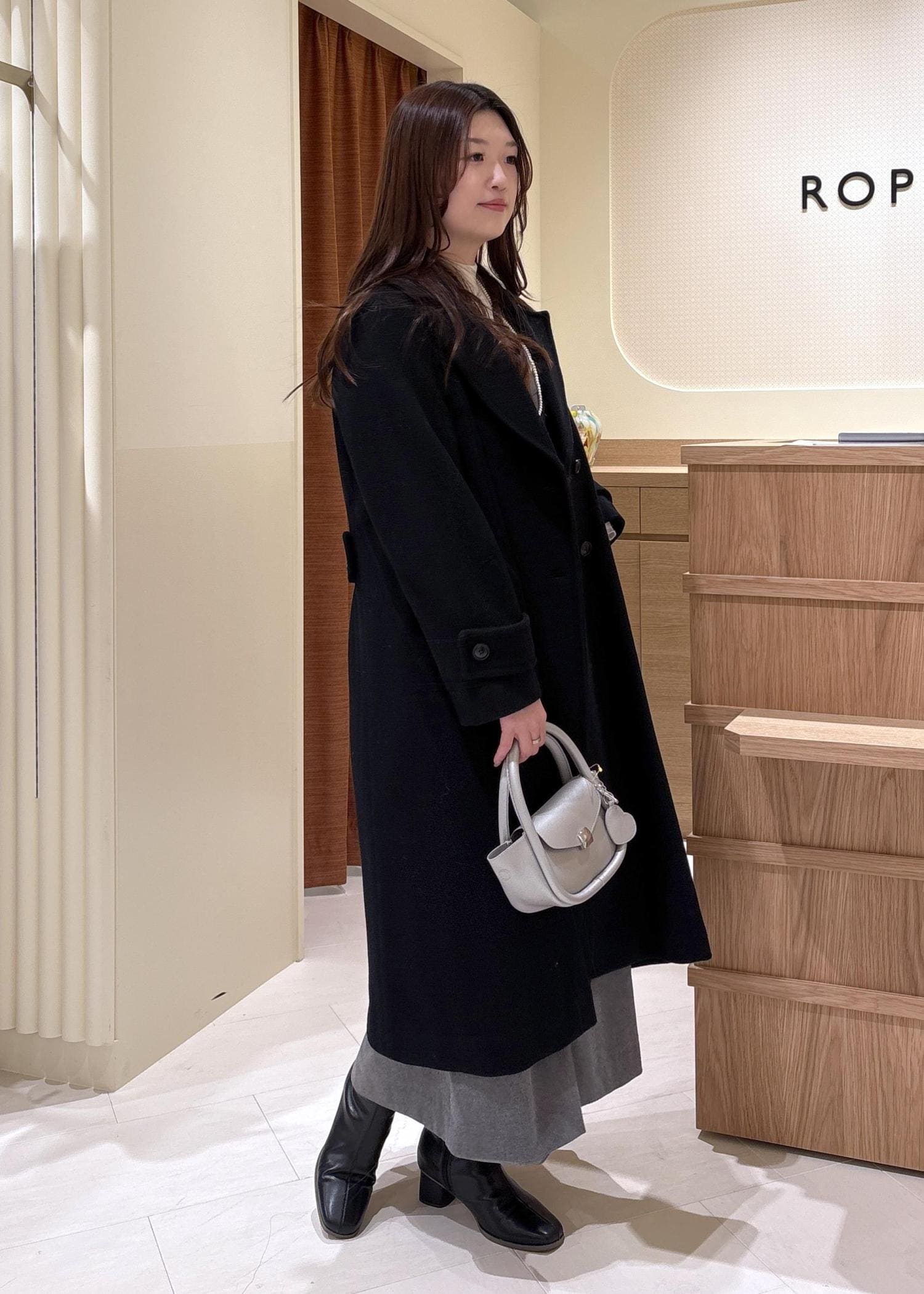 ROPÉ PICNICJAPAN FABRIC ダブルチェスターコート/一部WEB限定カラーブラック / F¥19,800レビュー緩やかなフレアの形が綺麗なロングコートです。