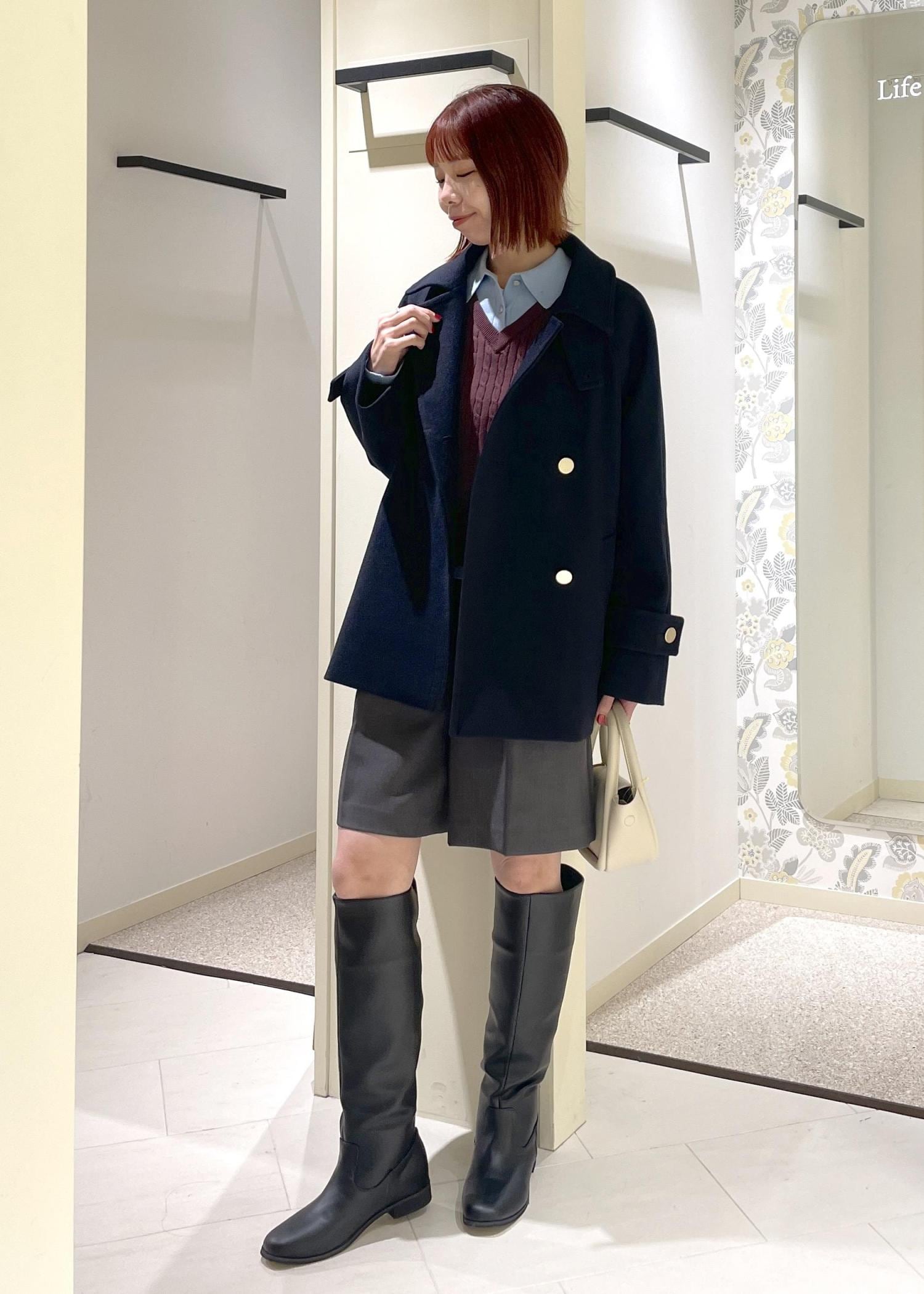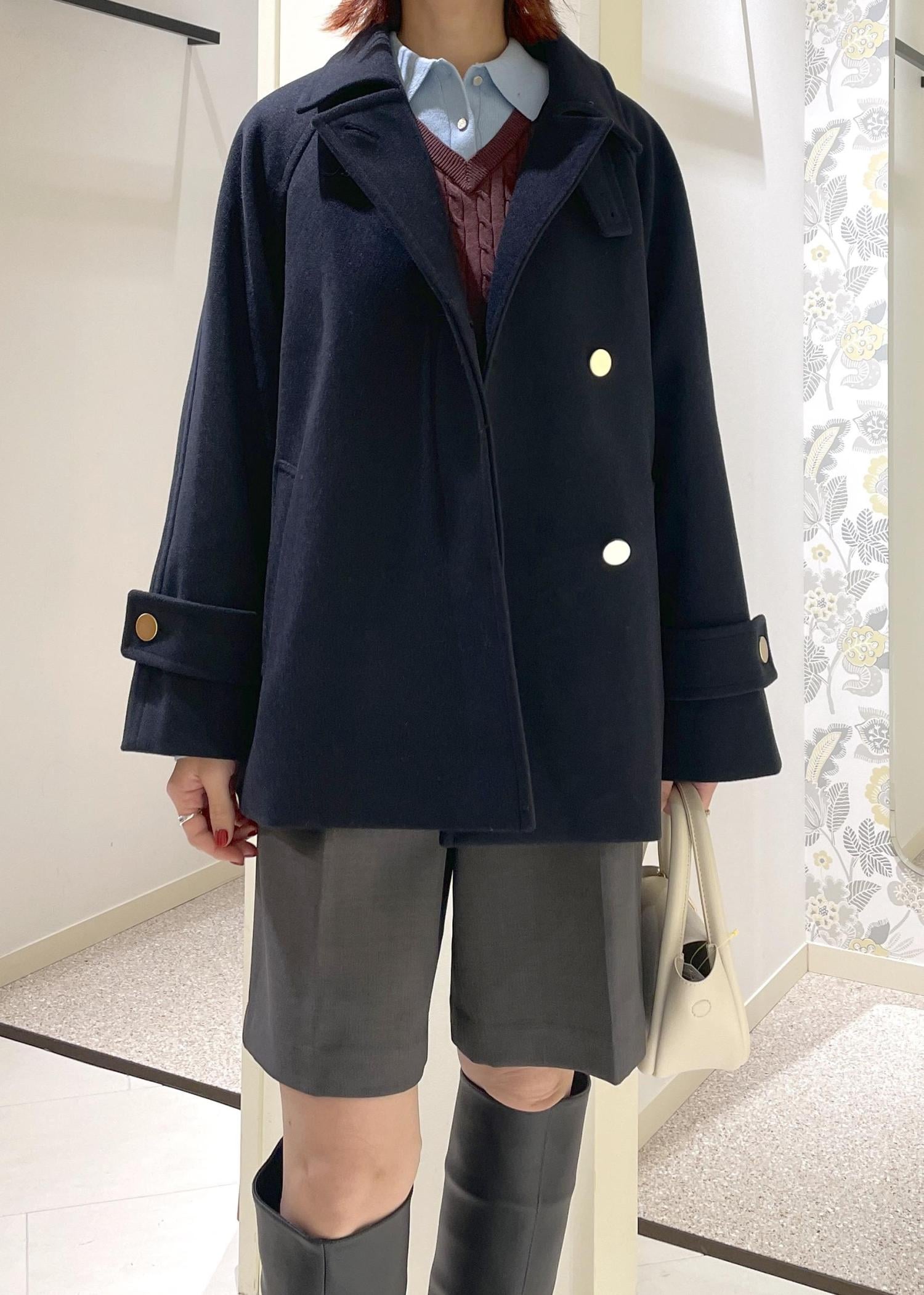 ふっくらと柔らかで暖かさも兼ね備えた金ボタンコートを合わせてデイリーにオススメのカジュアルスタイルです◎