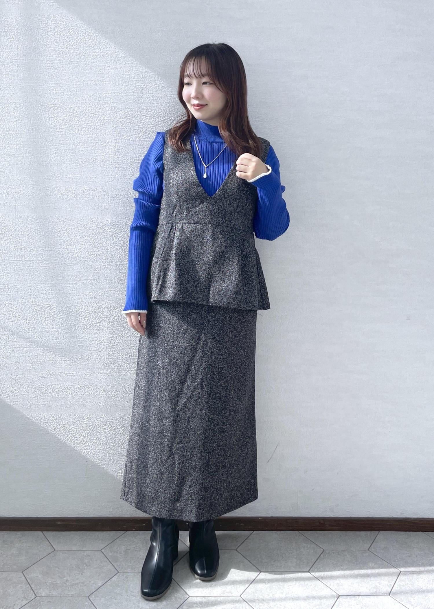 デートや女子会に着ていただいたり、ニットのカラーを変えたりブラウスにすると違った雰囲気になります!