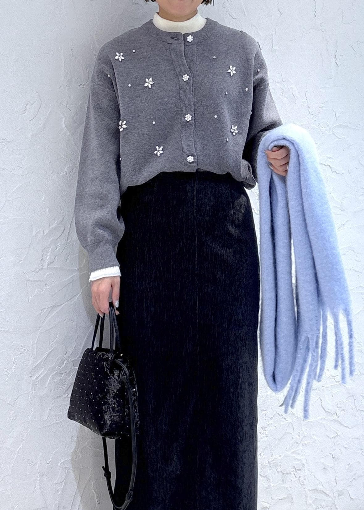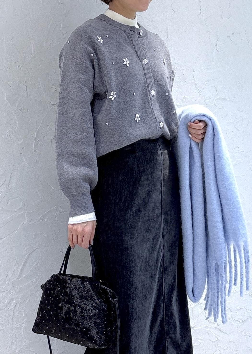 ビジューがコーディネートの主役になってくれるカーディガンです♪ -