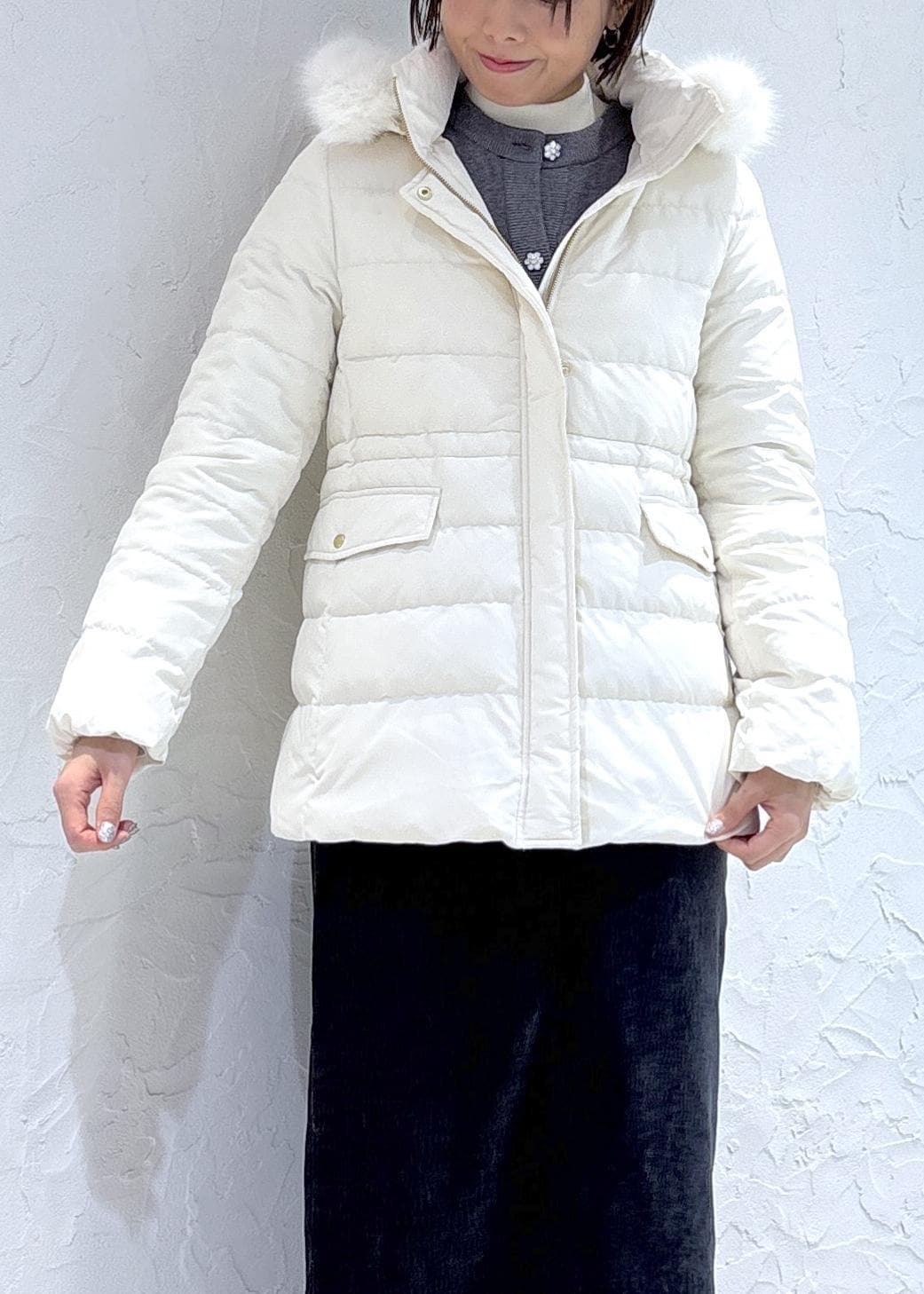 ROPÉ PICNIC【GREEN DOWN/グリーンダウン】ファー付きダウンミドル丈コート/リンクコーデオフホワイト / M¥18,700レビューダウン80%でとても暖かく軽い着心地でした。