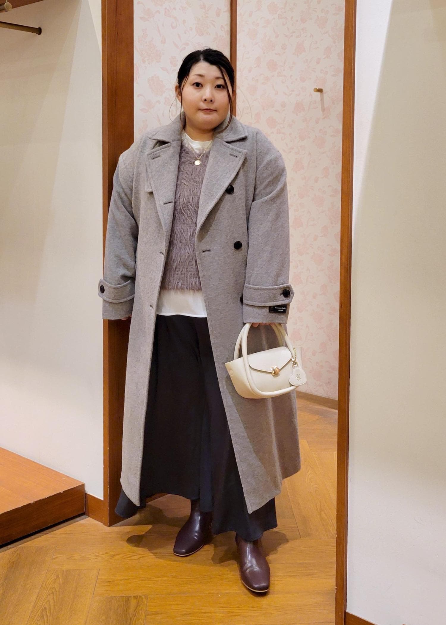 ROPÉ PICNICJAPAN FABRIC スタンドカラーロングコート/一部WEB限定カラーベージュ系 / F¥19,800レビュー全体的にゆったりシルエットです。低身長150cmでも膝が隠れる着丈です。ウール70%入ってるのであたたかいです。