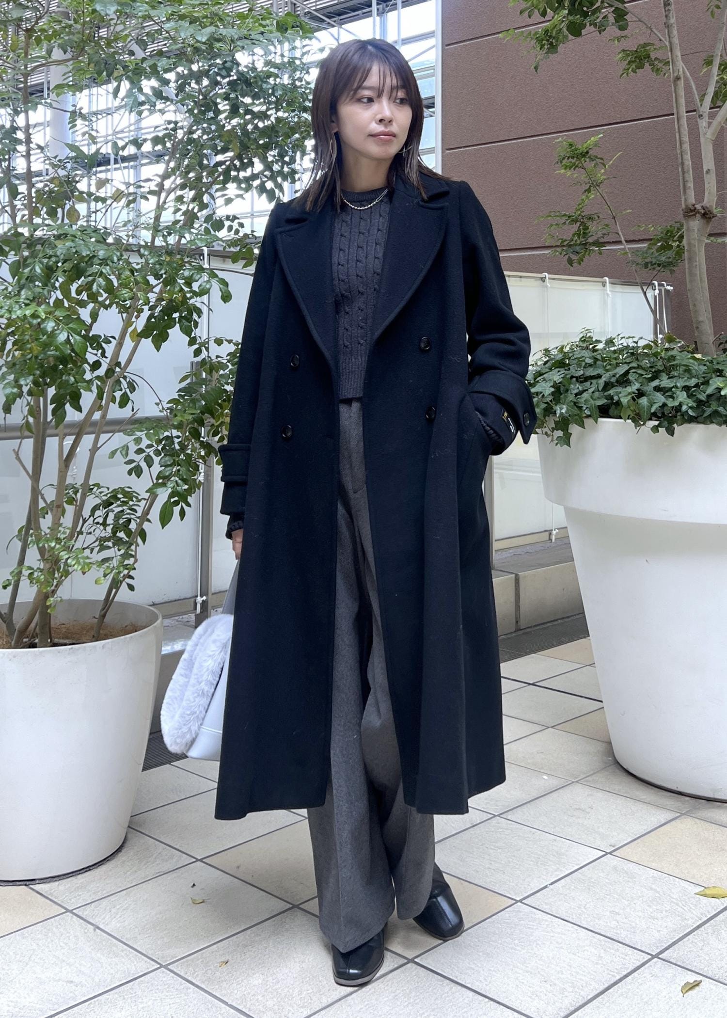 ROPÉ PICNICJAPAN FABRIC ダブルチェスターコート/一部WEB限定カラーブラック / F¥19,800レビュー柔らかく軽いヴァージンウールを使用した上質な素材感で、ロング丈でも軽く暖かい着心地。