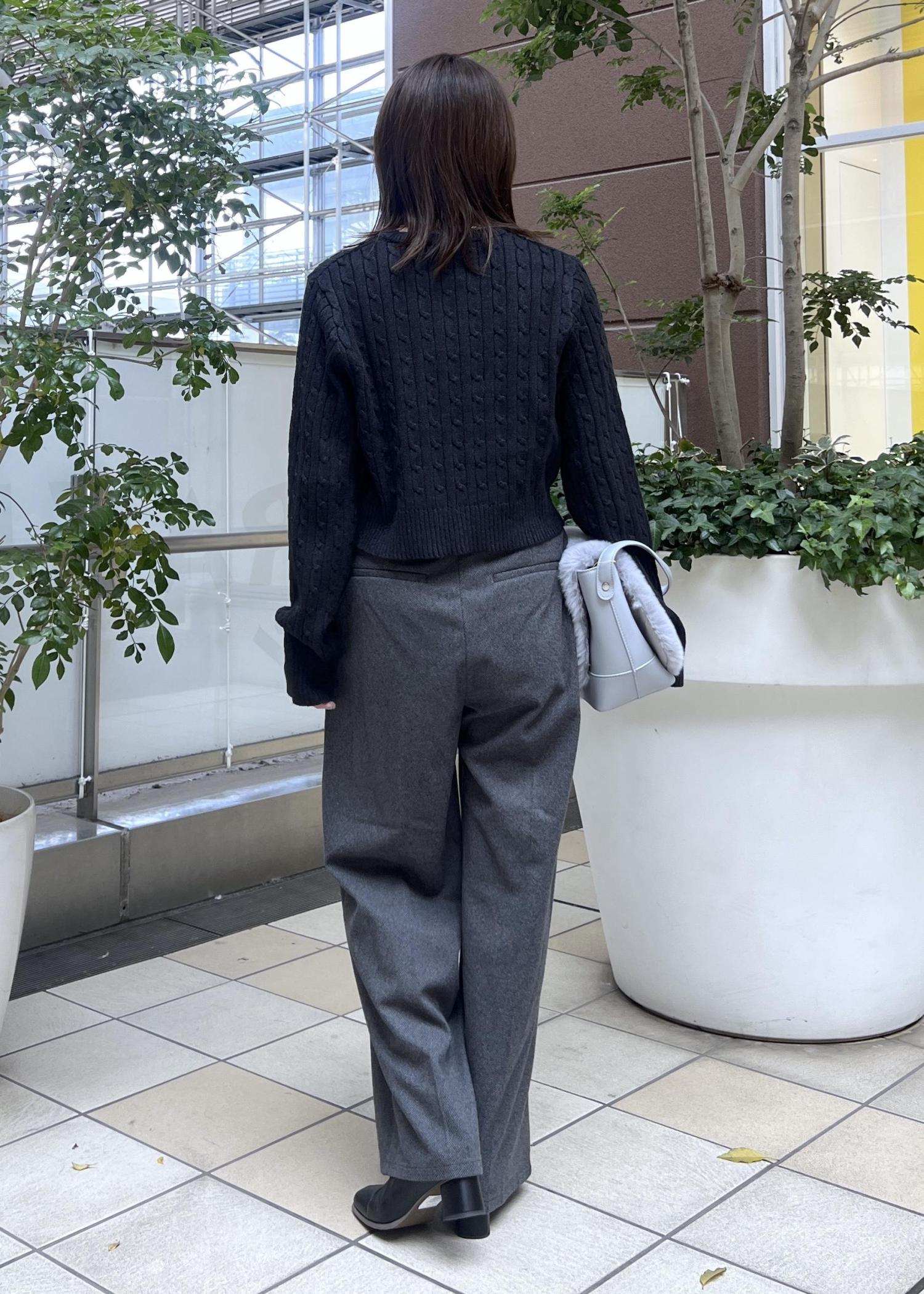 ジャストの着丈でやや短めなので、ボトムを選ばず合わせやすいです。 -