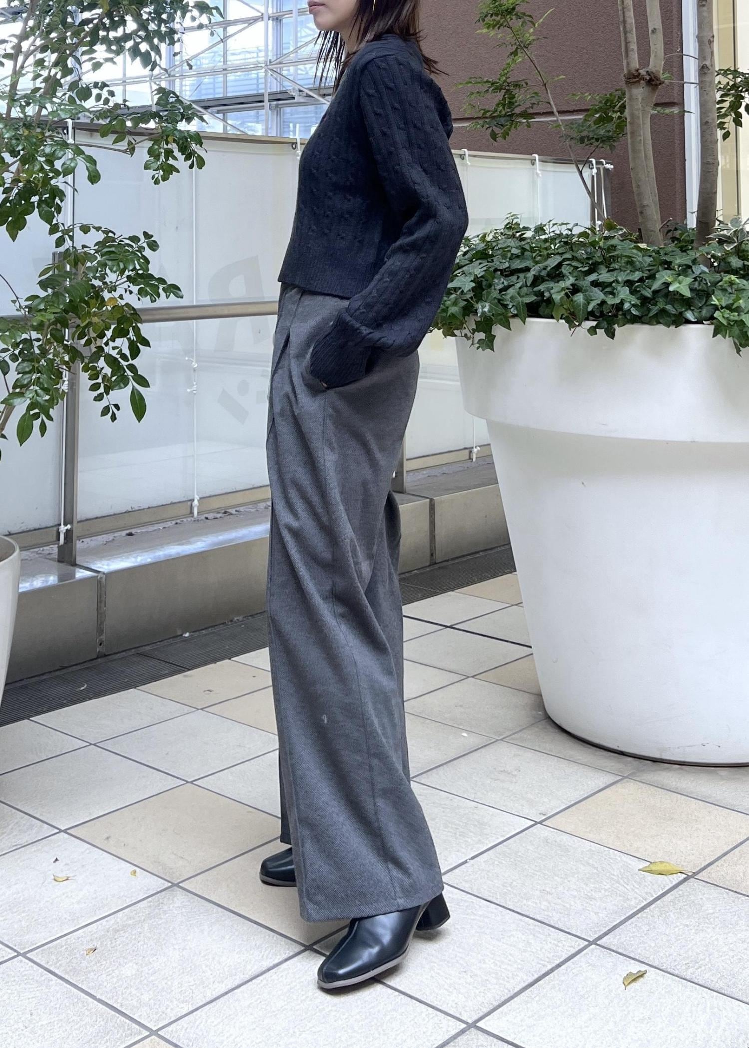 筒幅にゆとりがあるので脚のラインを拾わず履きやすいシルエット。 -