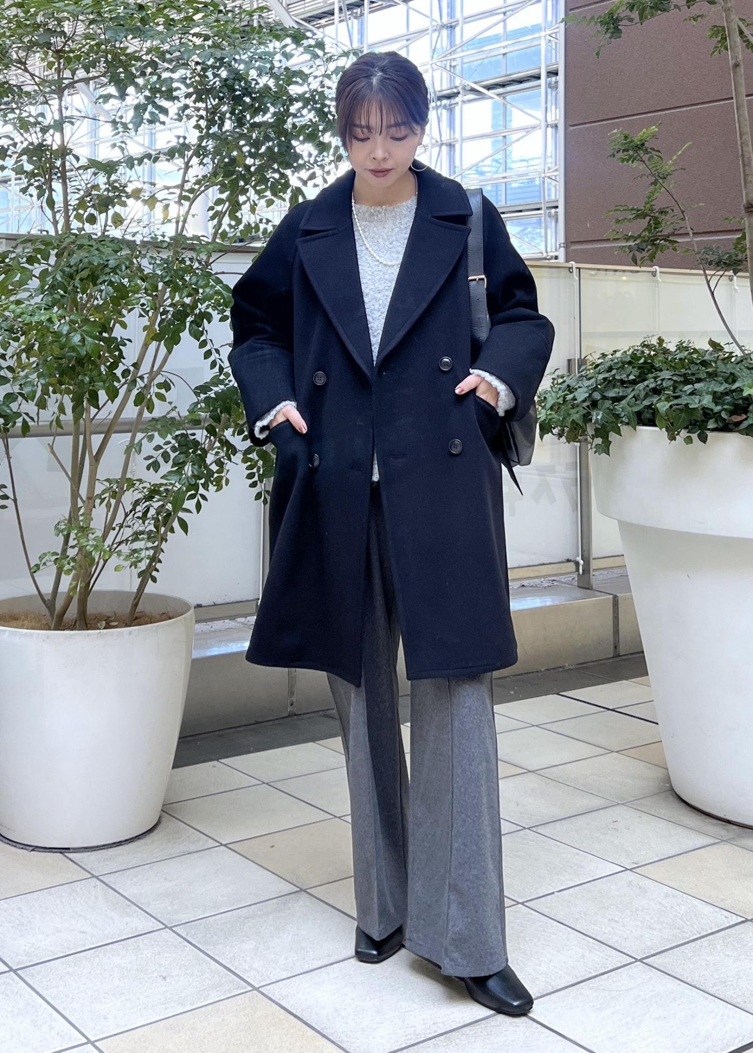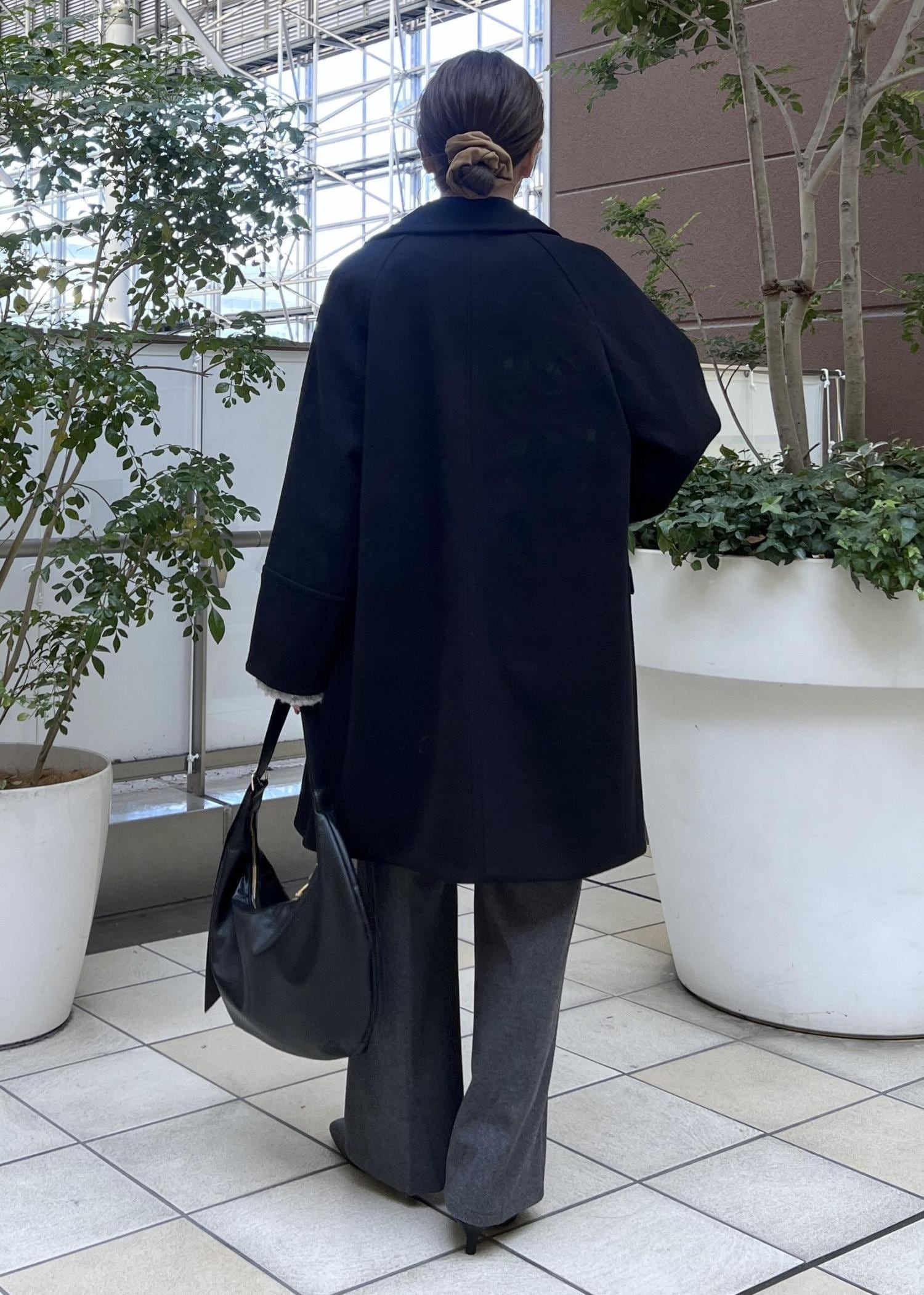 柔らかく軽いジャージメルトン素材のアウターは、モノトーンでまとめて大人っぽく。