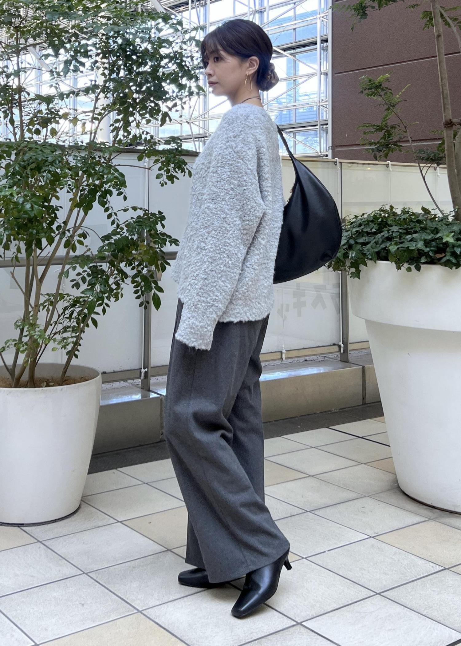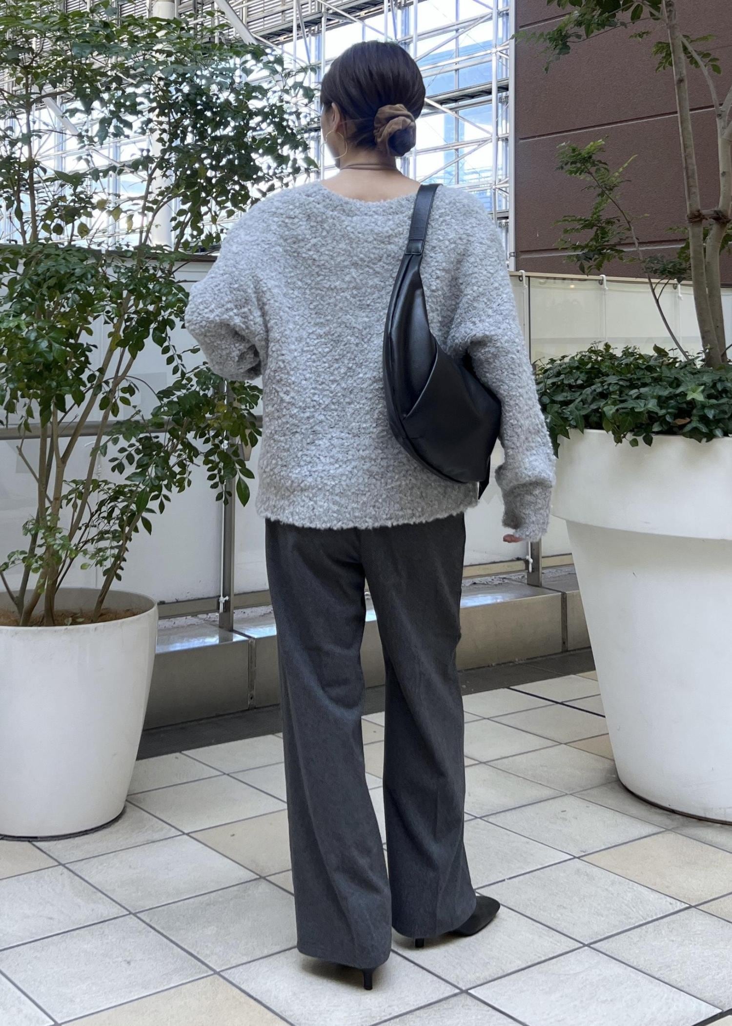 デミルーン型のショルダーバッグで、冬のお出かけコーデの完成です。