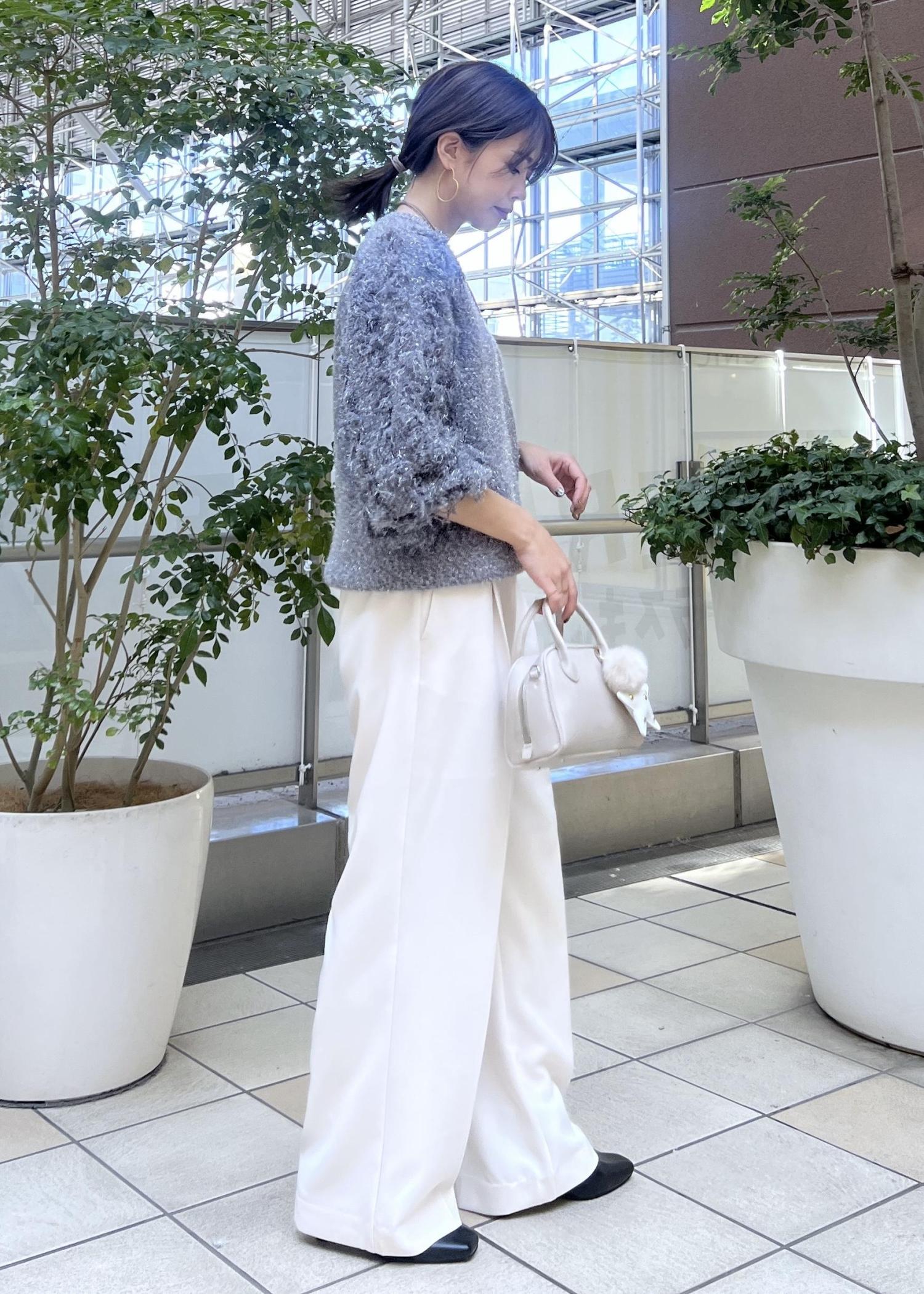 白パンツを合わせて大人の綺麗めカジュアルコーデにしました。