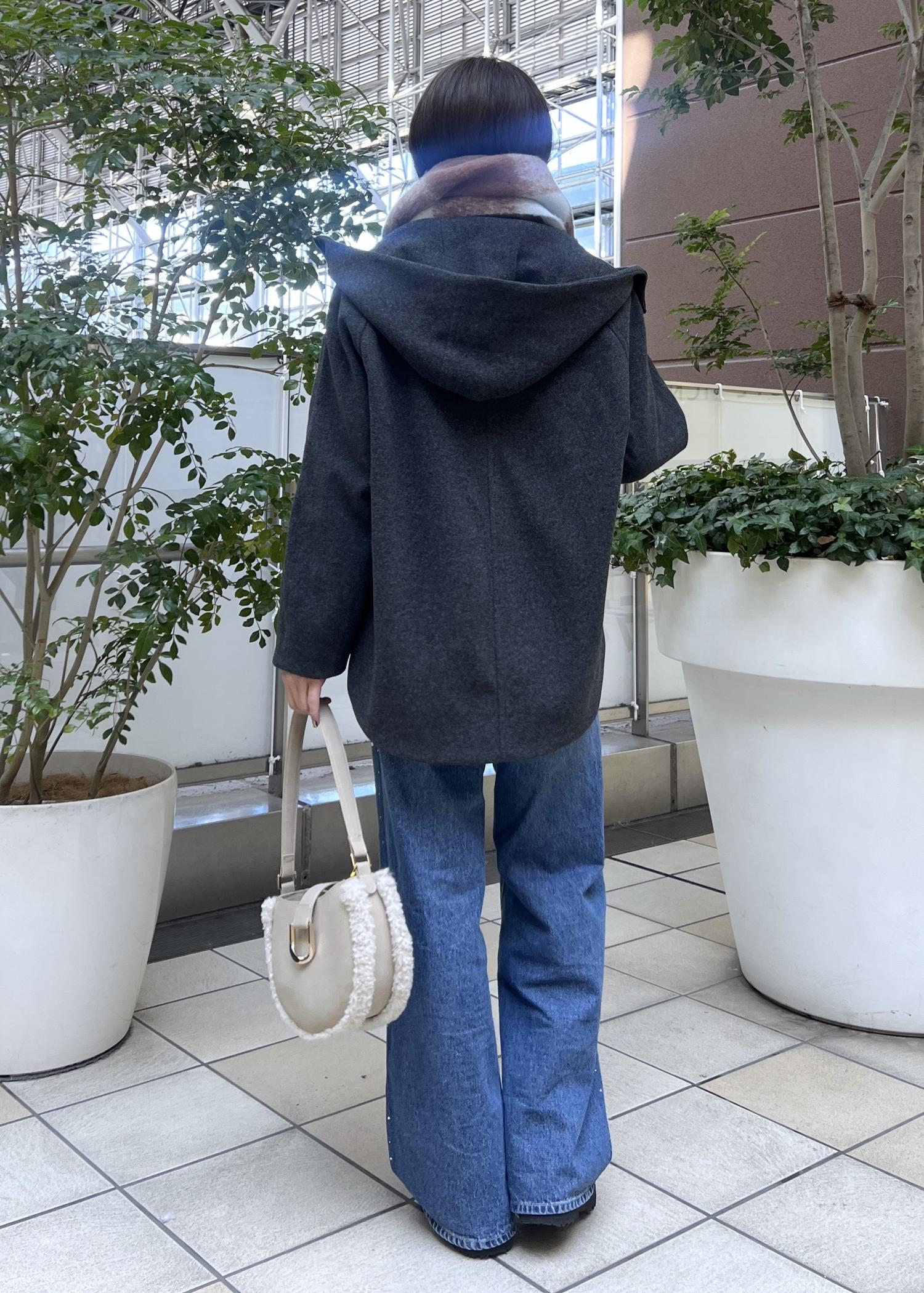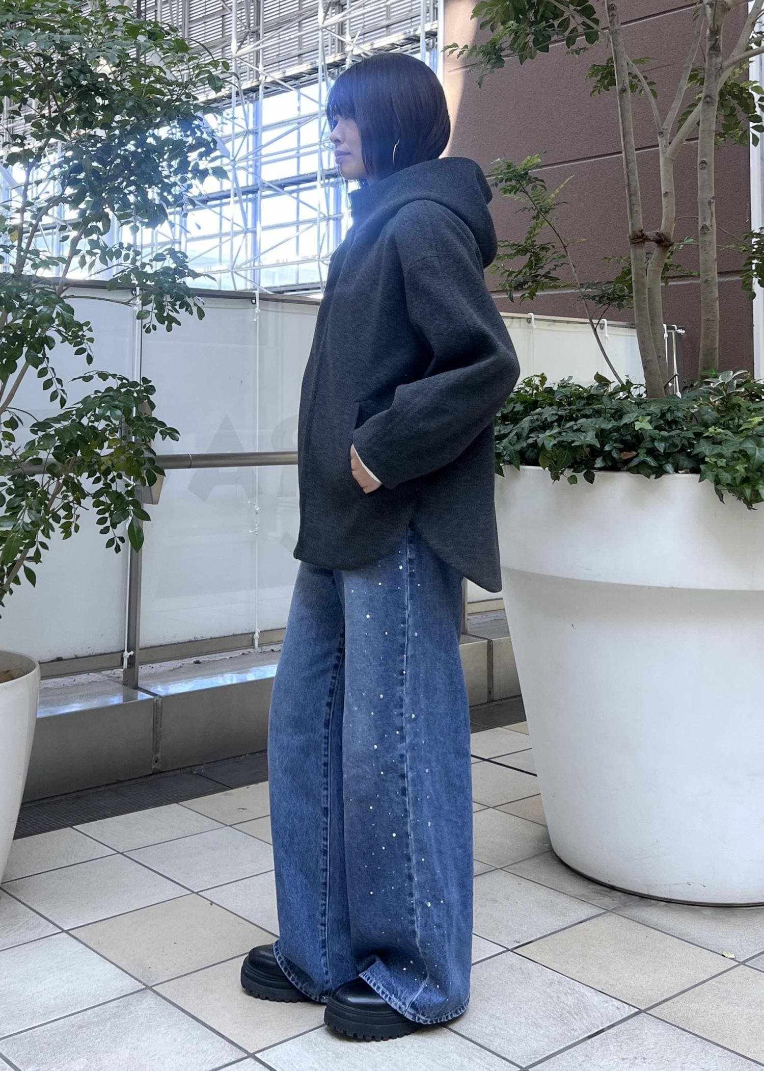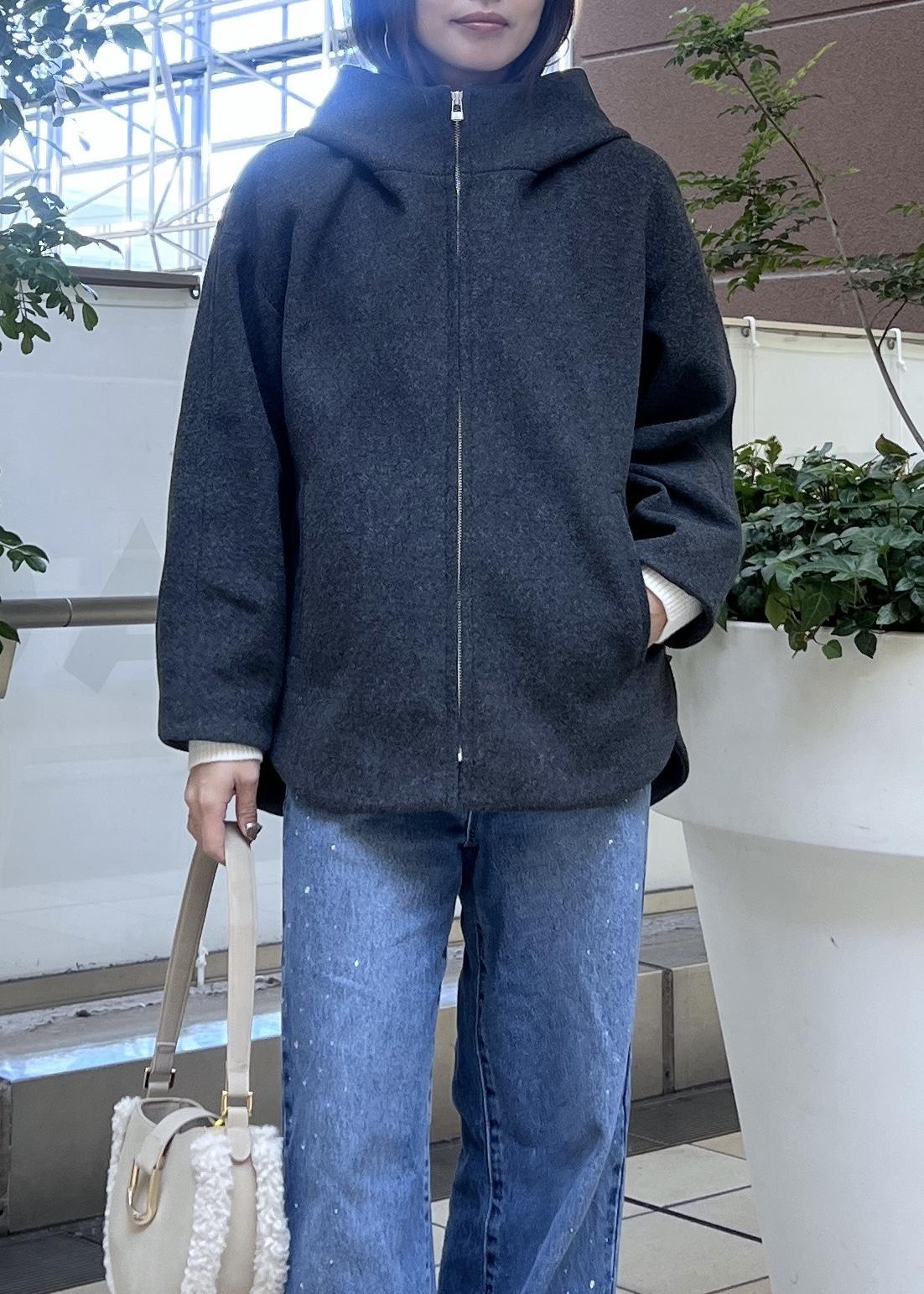 フーディーデザインのアウターは、軽く羽織りやすいジャージメルトン素材。