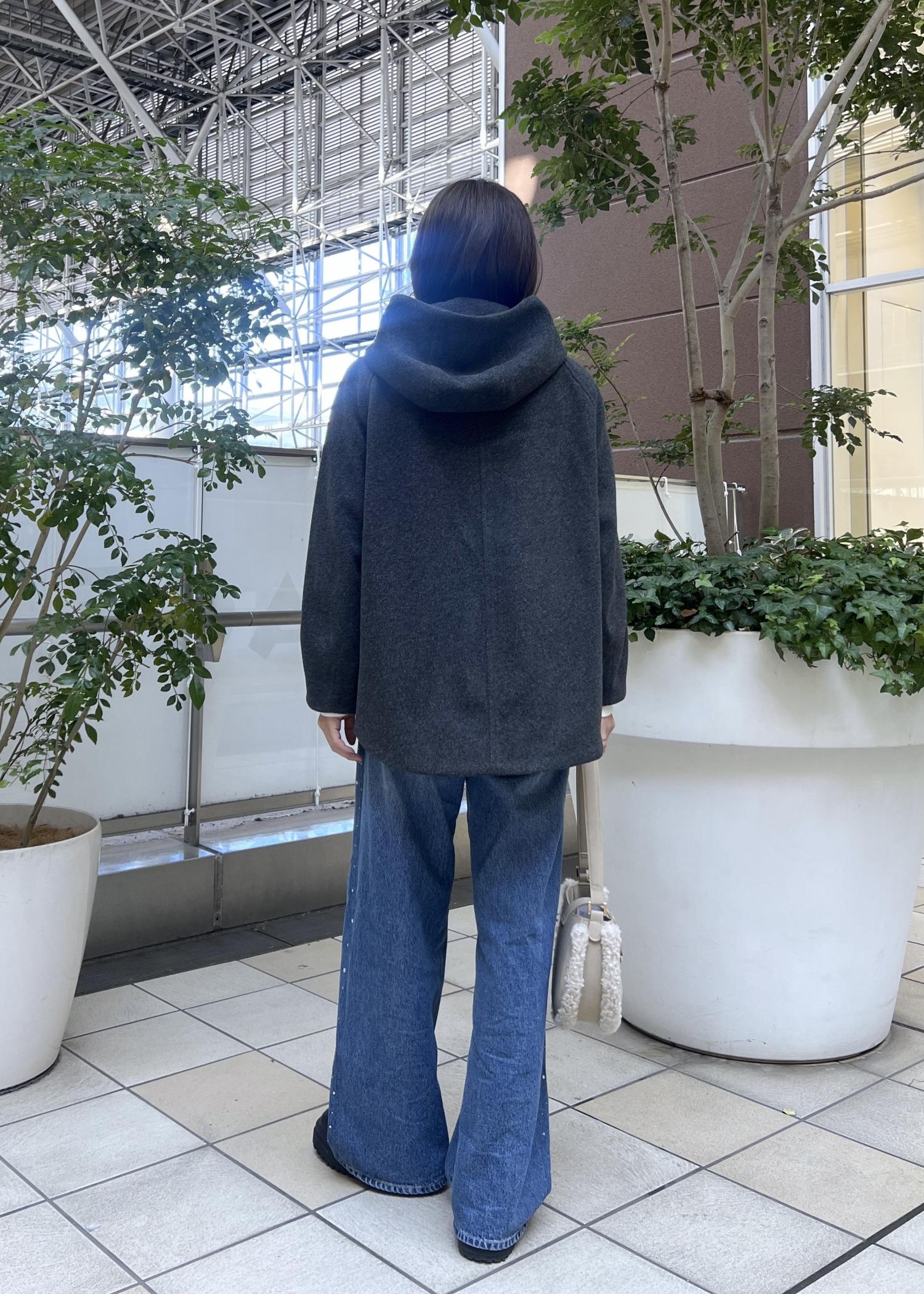 身幅はゆったりしているのでニットの上からでも羽織りやすいサイズ感。