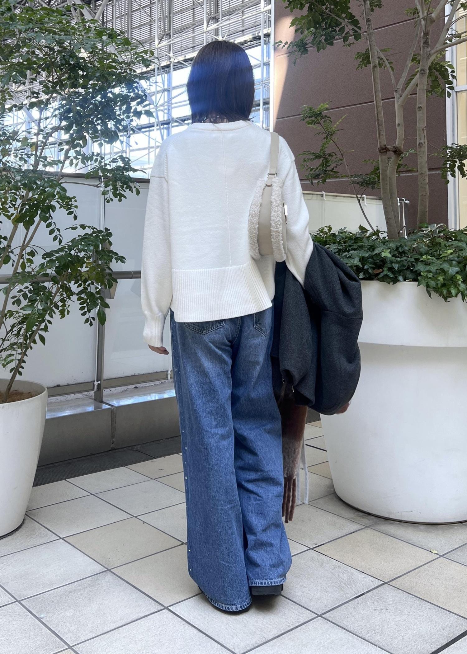 身幅はゆとりがあるので、シャツやブラウスをインしても着やすいサイズ感。