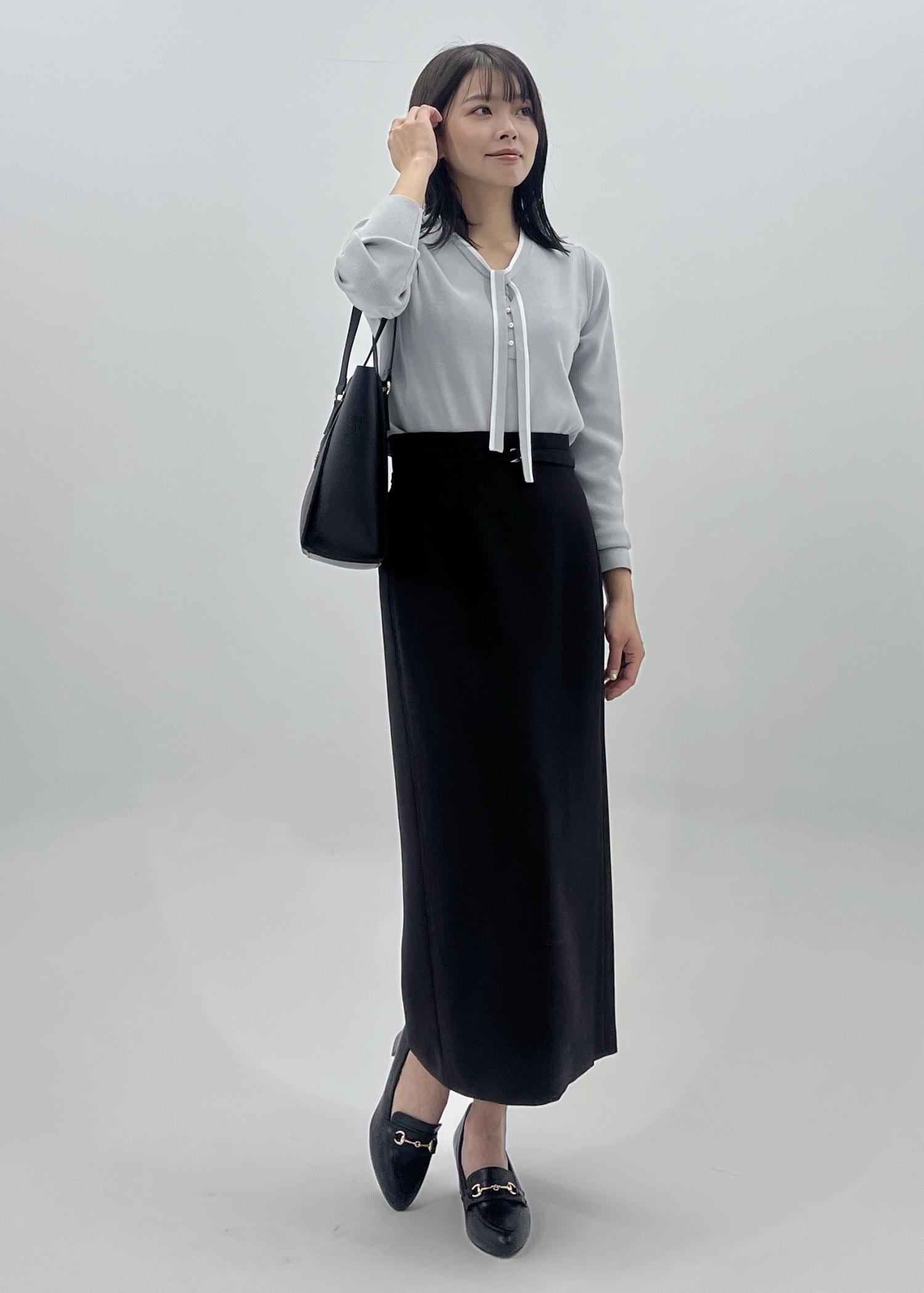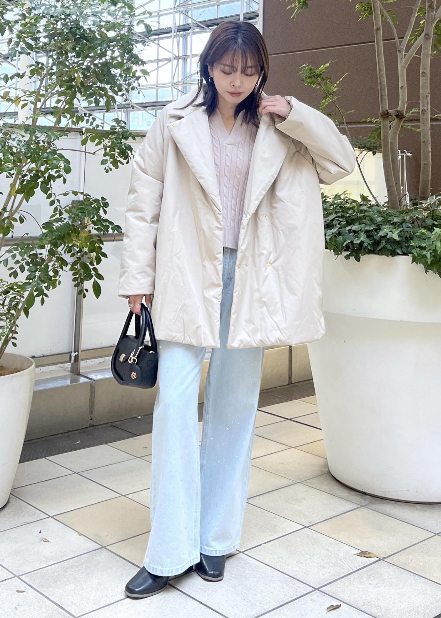 ジャストの着丈なのでボトムを選ばず合わせやすいです。 -