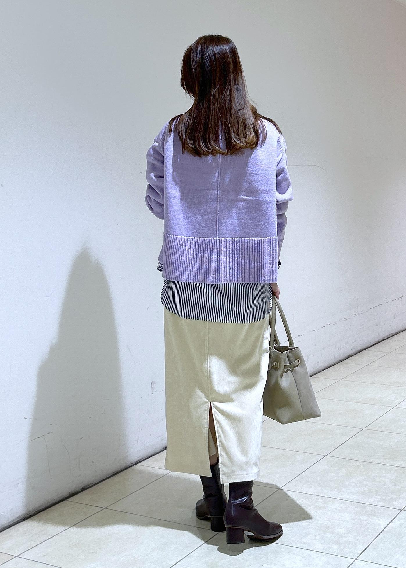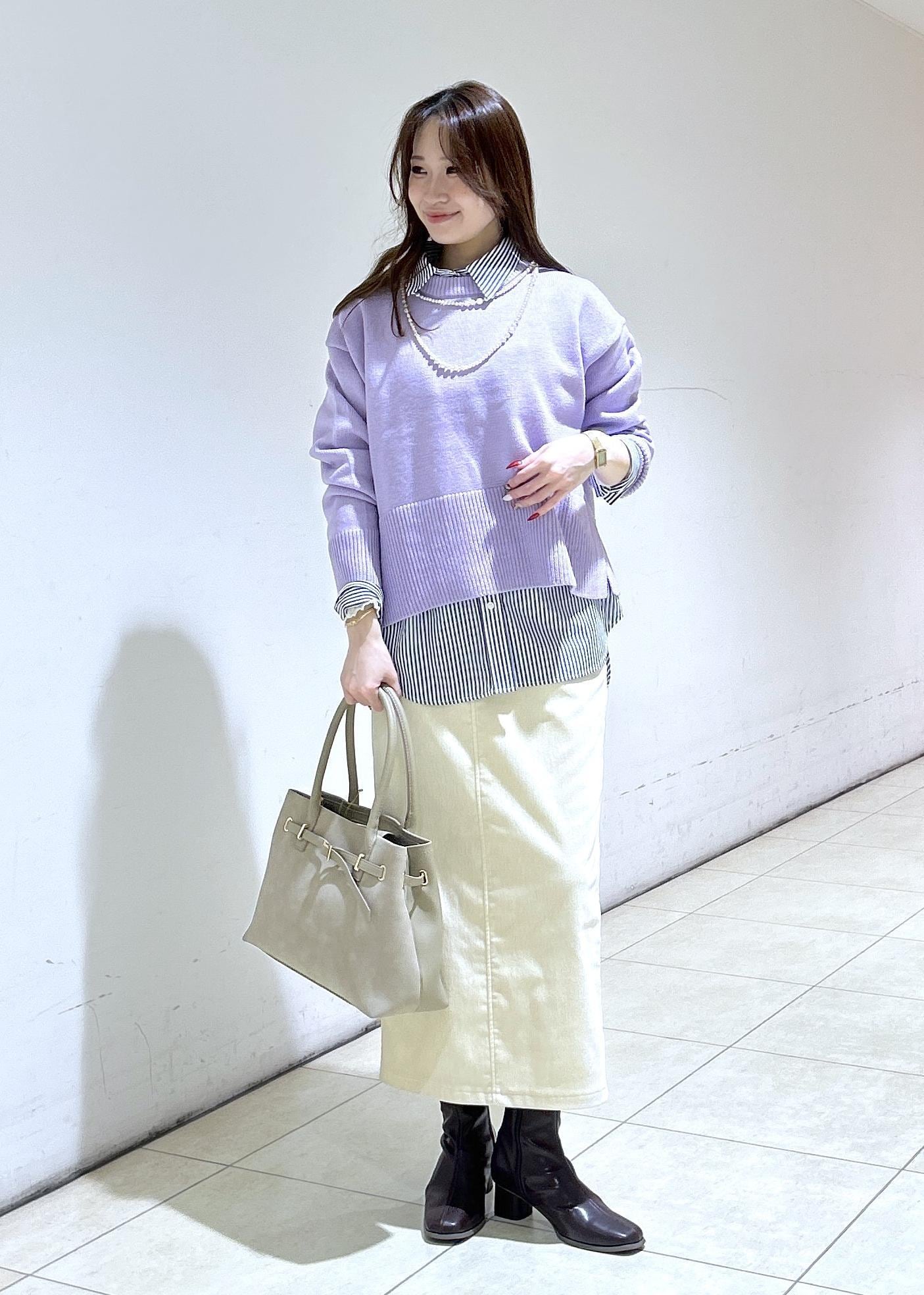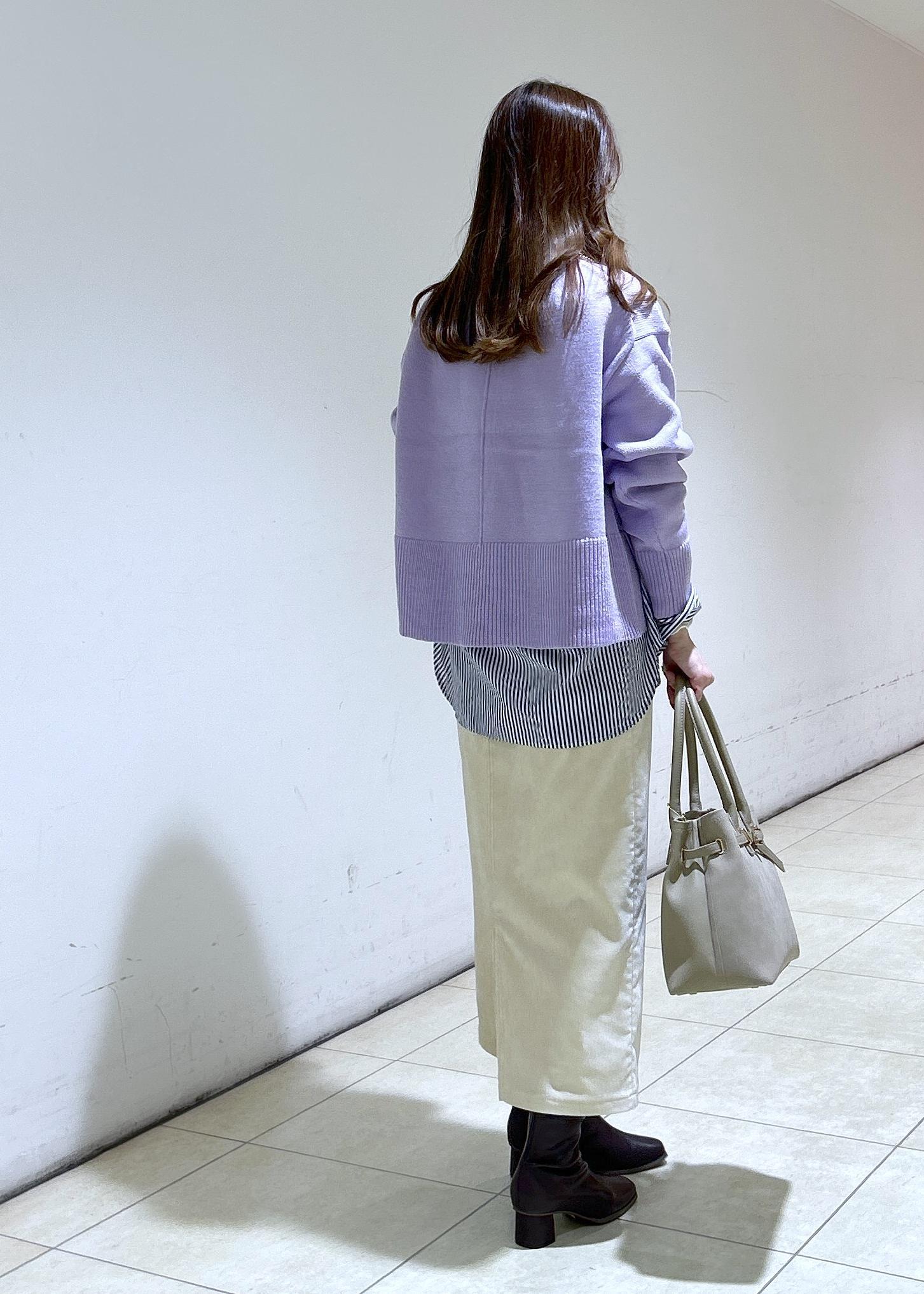 シンプルなデザインなのでパンツでもスカートでも合わせやすいです。 -