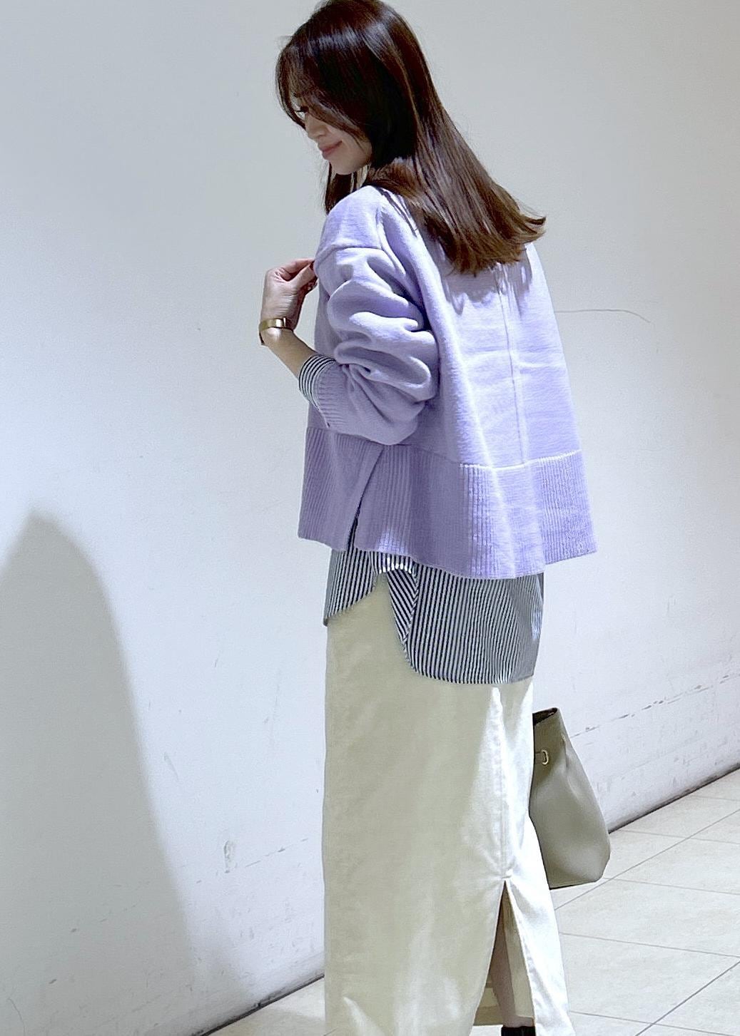 ROPÉ PICNIC【新色追加】着丈が選べるクルーネックサイドスリットニットプルオーバー/イージーケアラベンダー / M¥3,993レビュー身長157センチで短め着用。